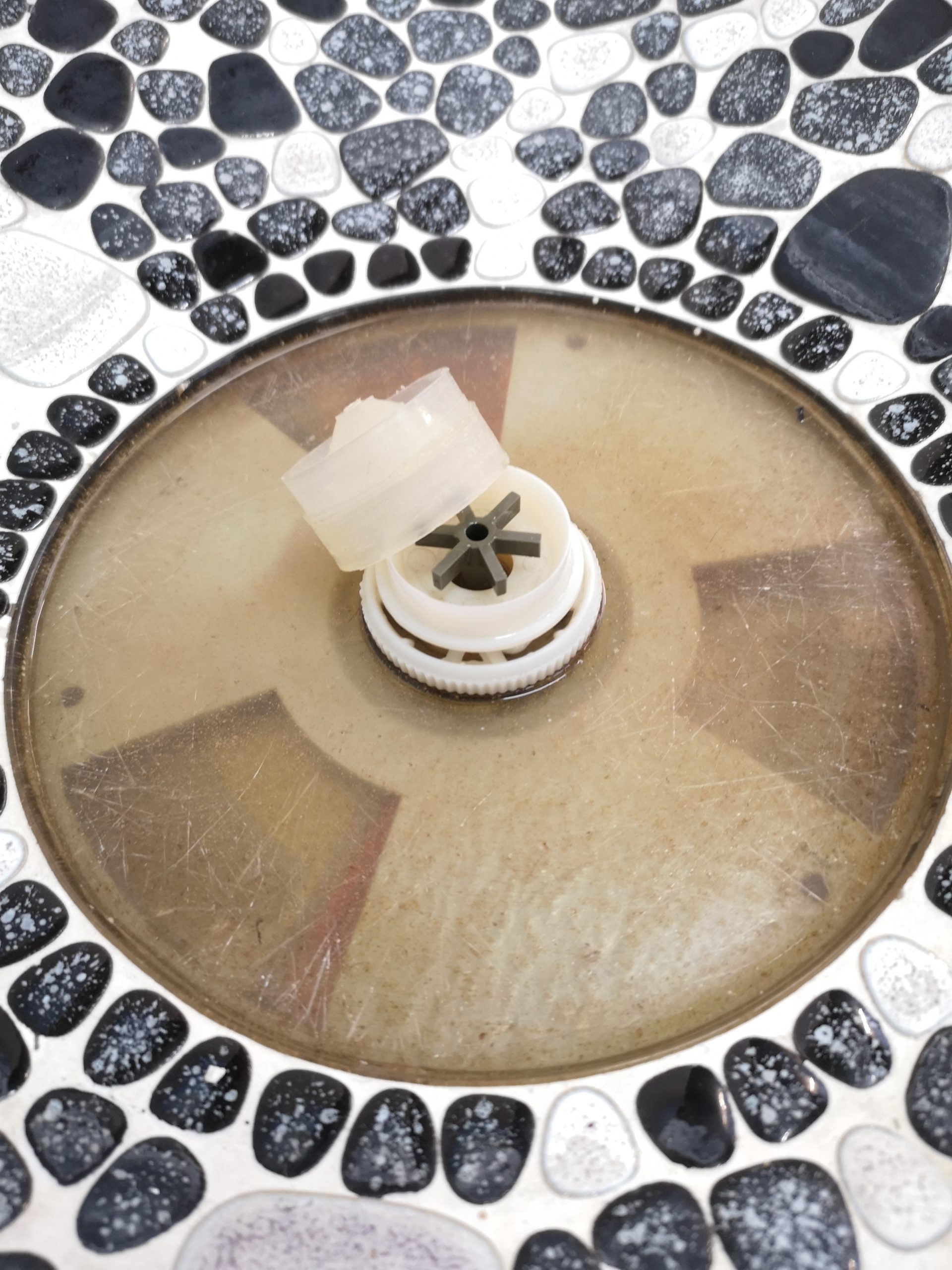 La fontaine fonctionne grâce à un moteur situé sous le porte-plantes :