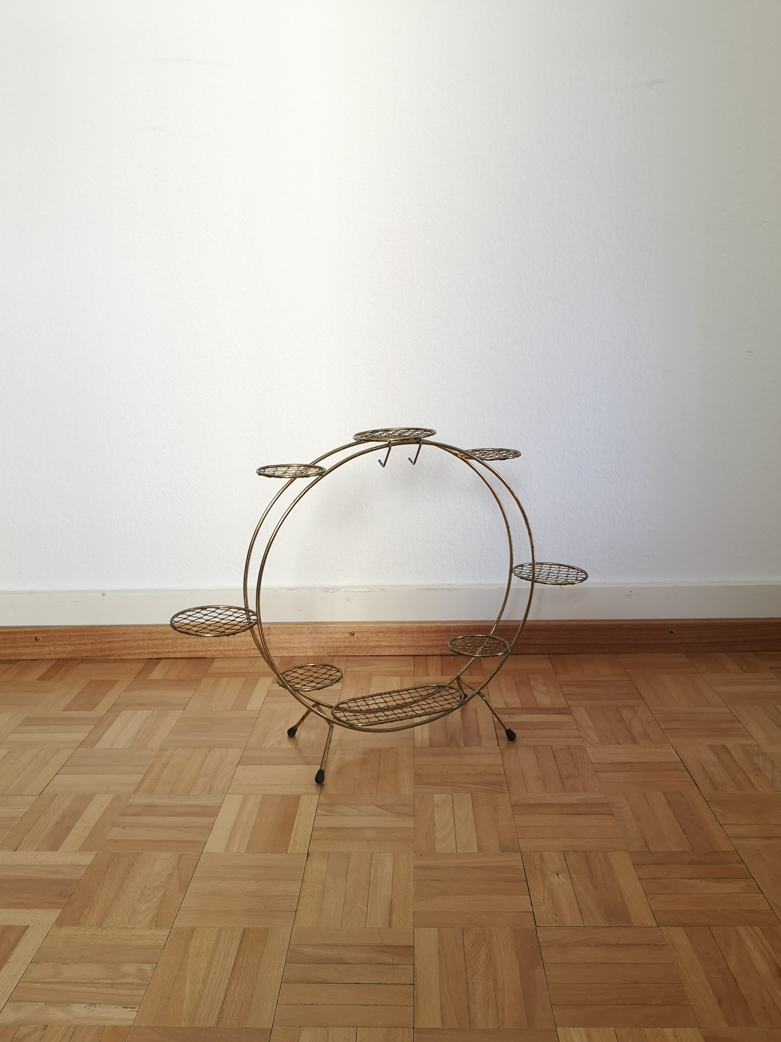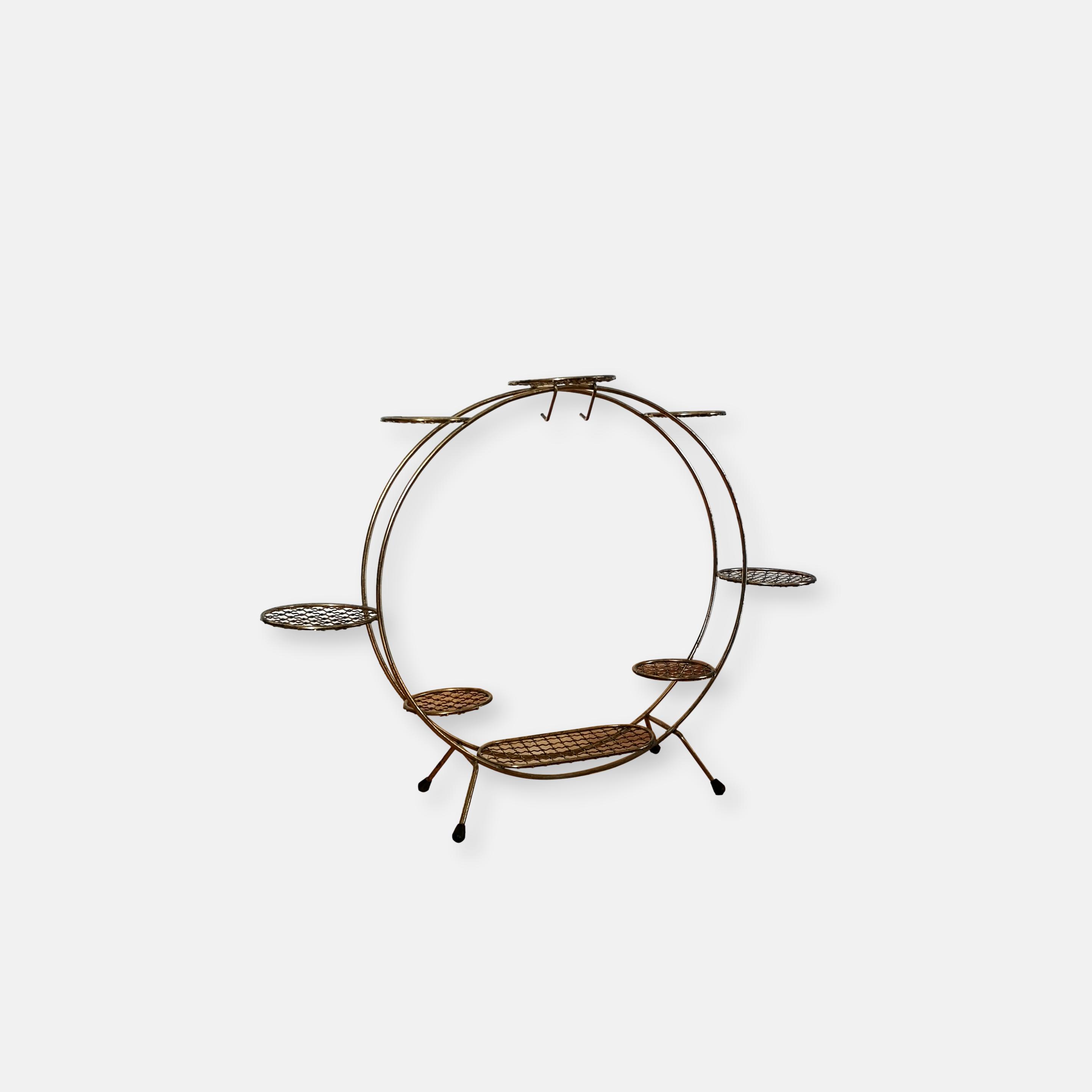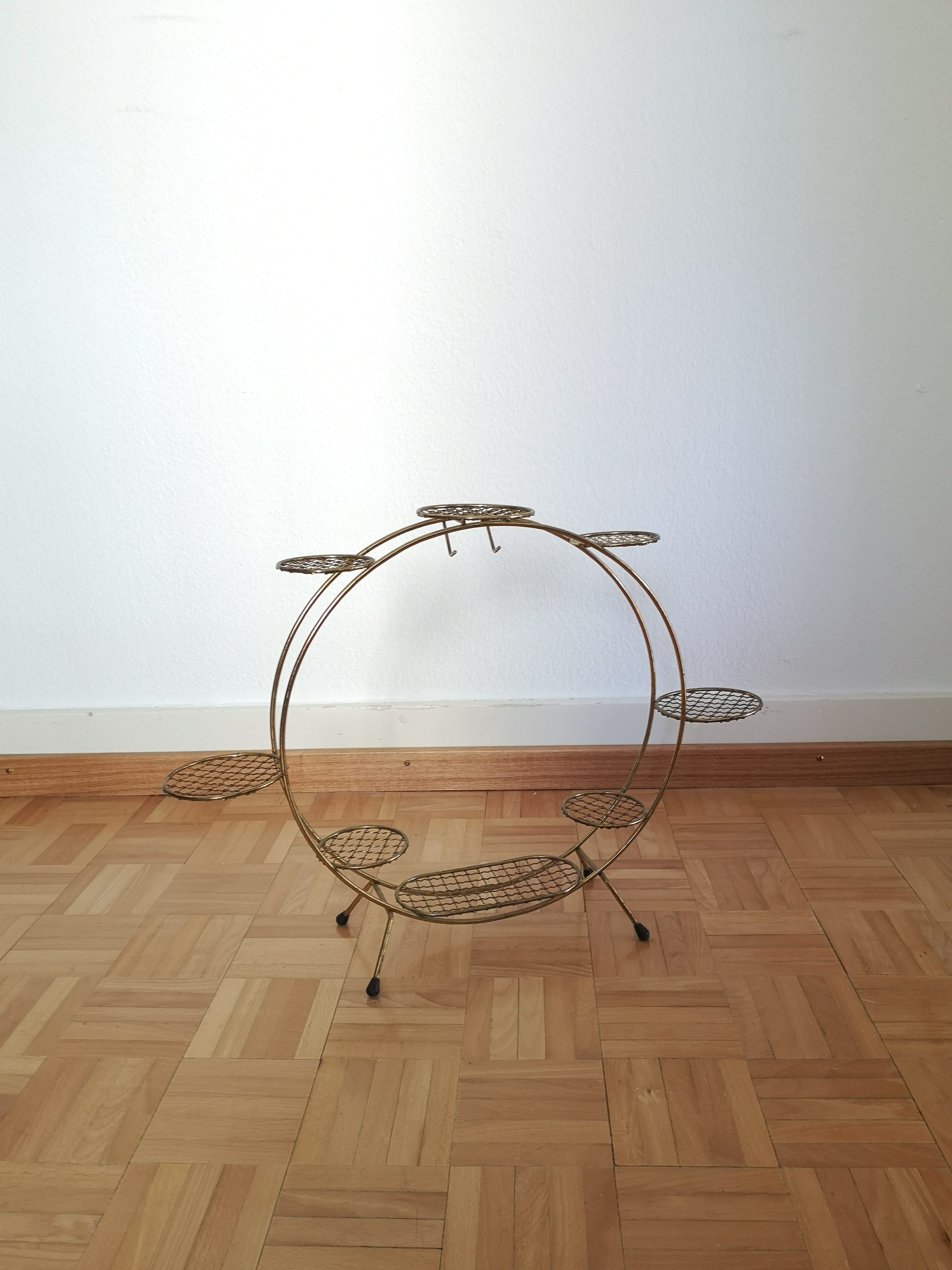 Produit venduCe joli porte-plantes rond en métal laitonné est doté de 8 emplacements pour les plantes dont 3 de 10.5 cm de diamètre, 4 de 8.5 cm et 1 plus large en bas.