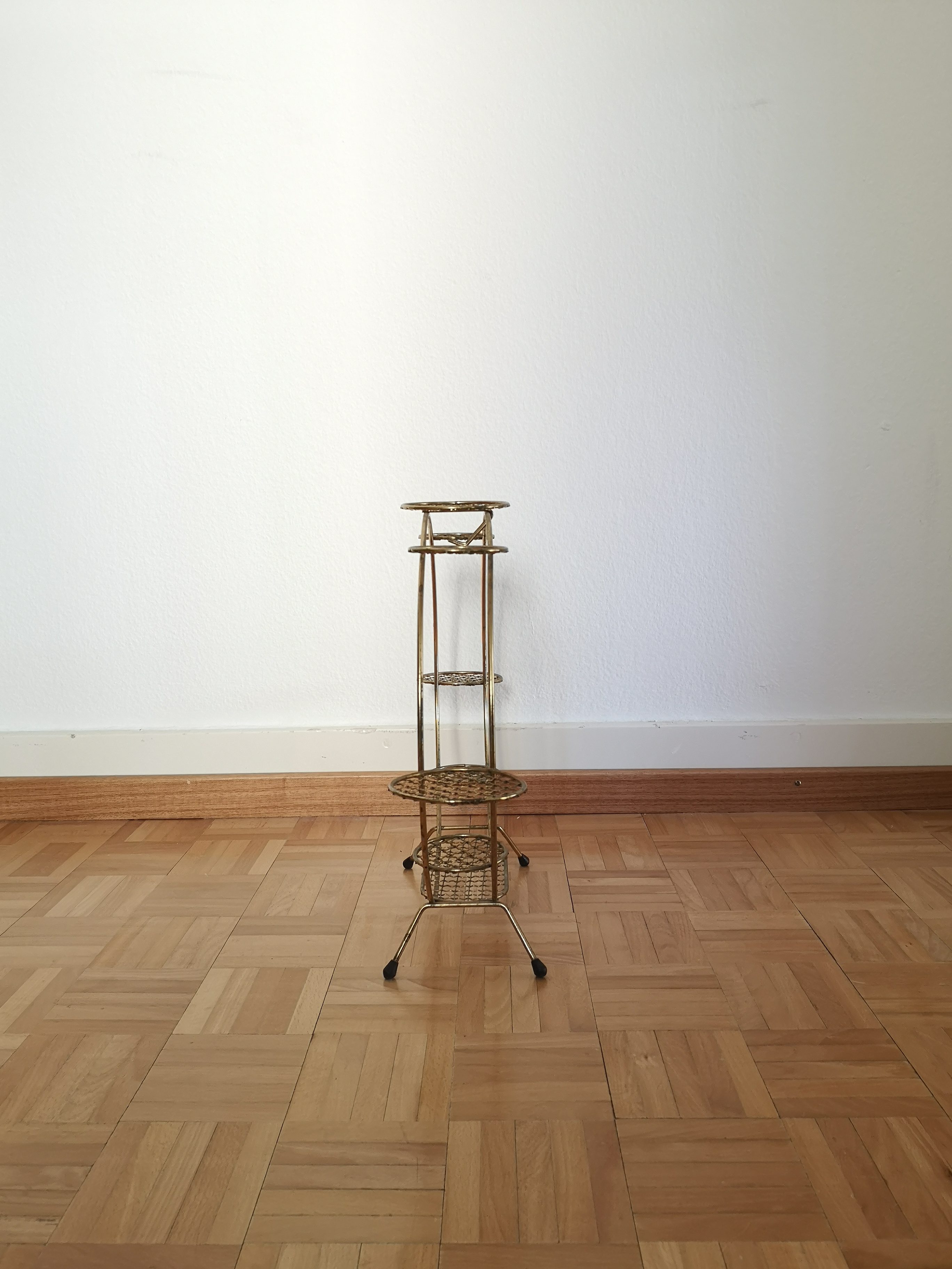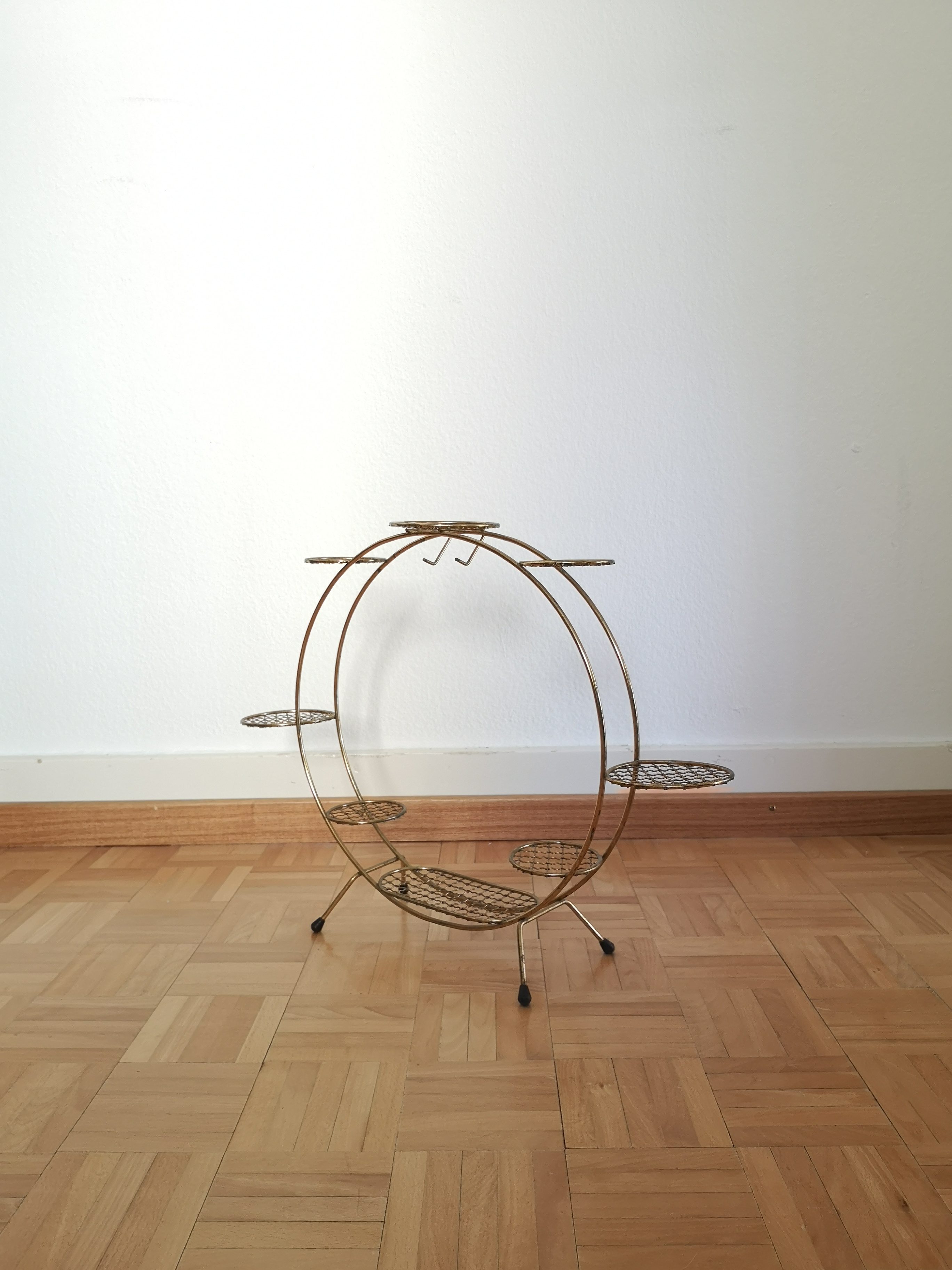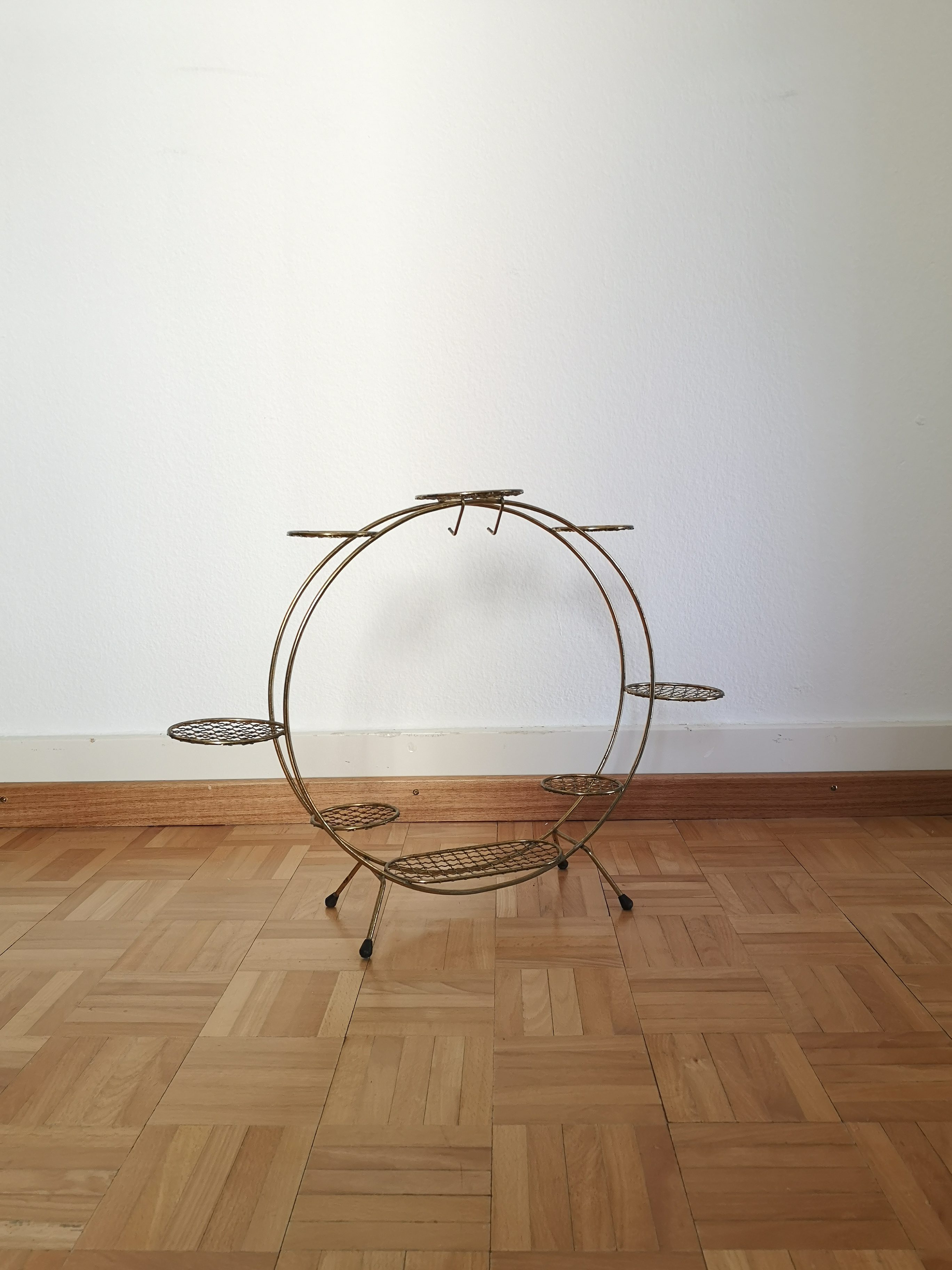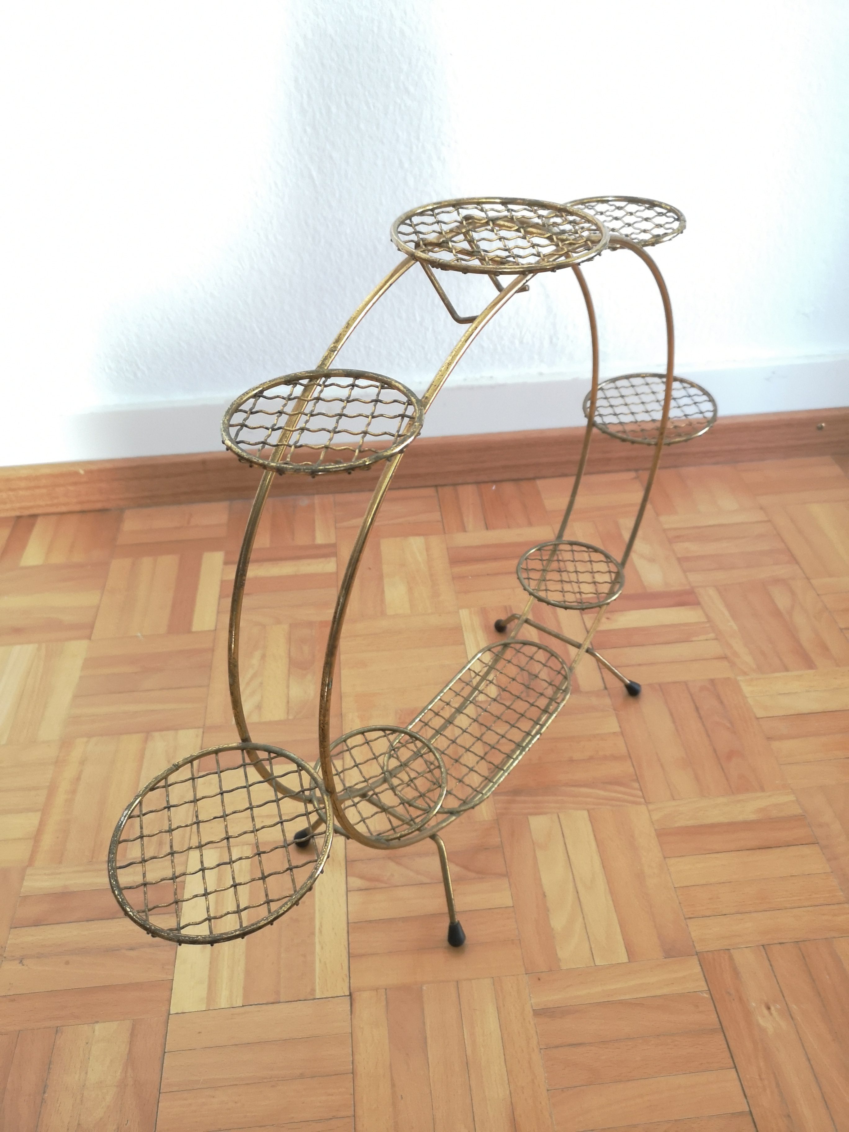 Produit venduCe joli porte-plantes rond en métal laitonné est doté de 8 emplacements pour les plantes dont 3 de 10.5 cm de diamètre, 4 de 8.5 cm et 1 plus large en bas.