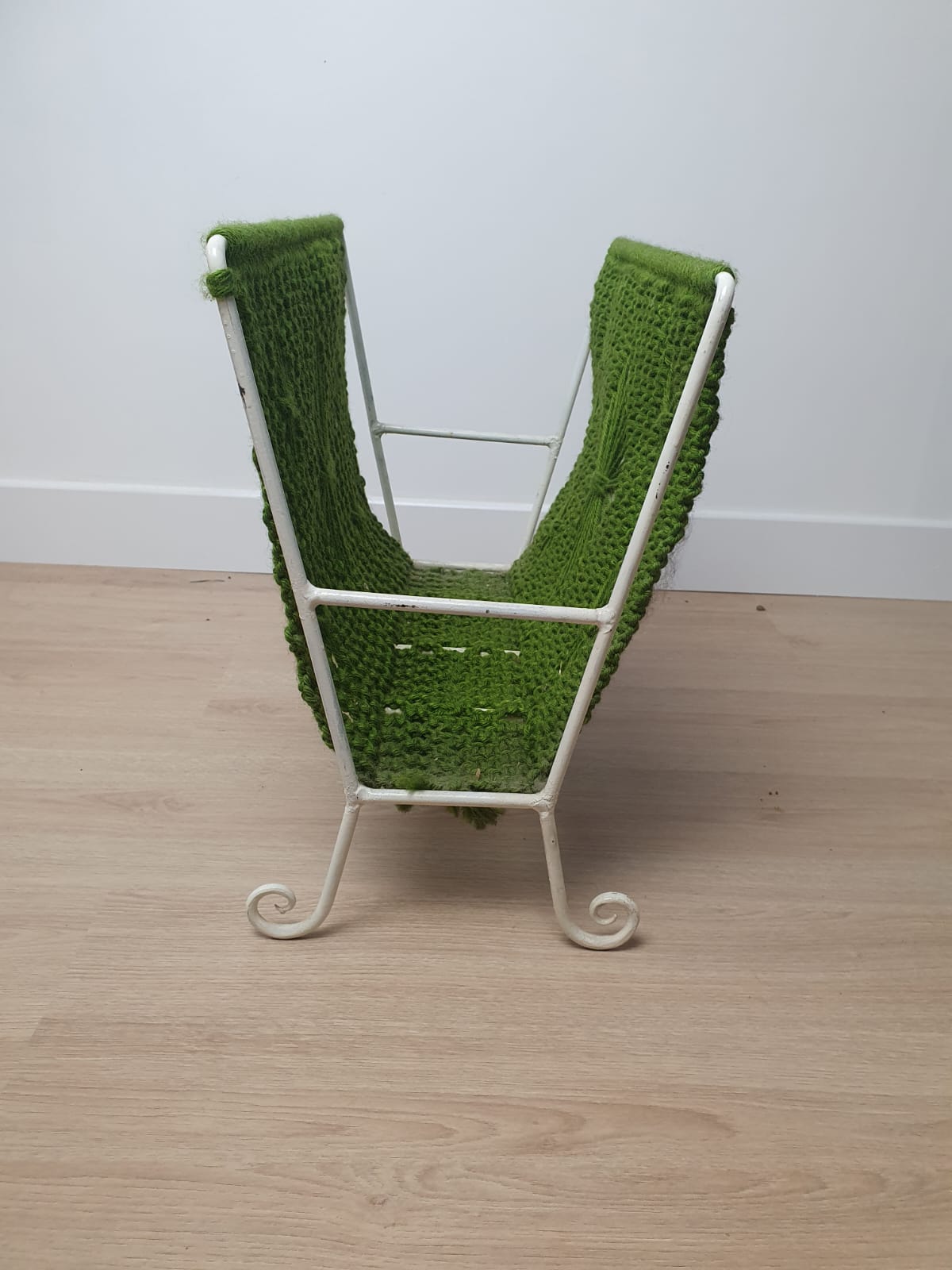 Structure en fer forge blanc et habillage en laine.