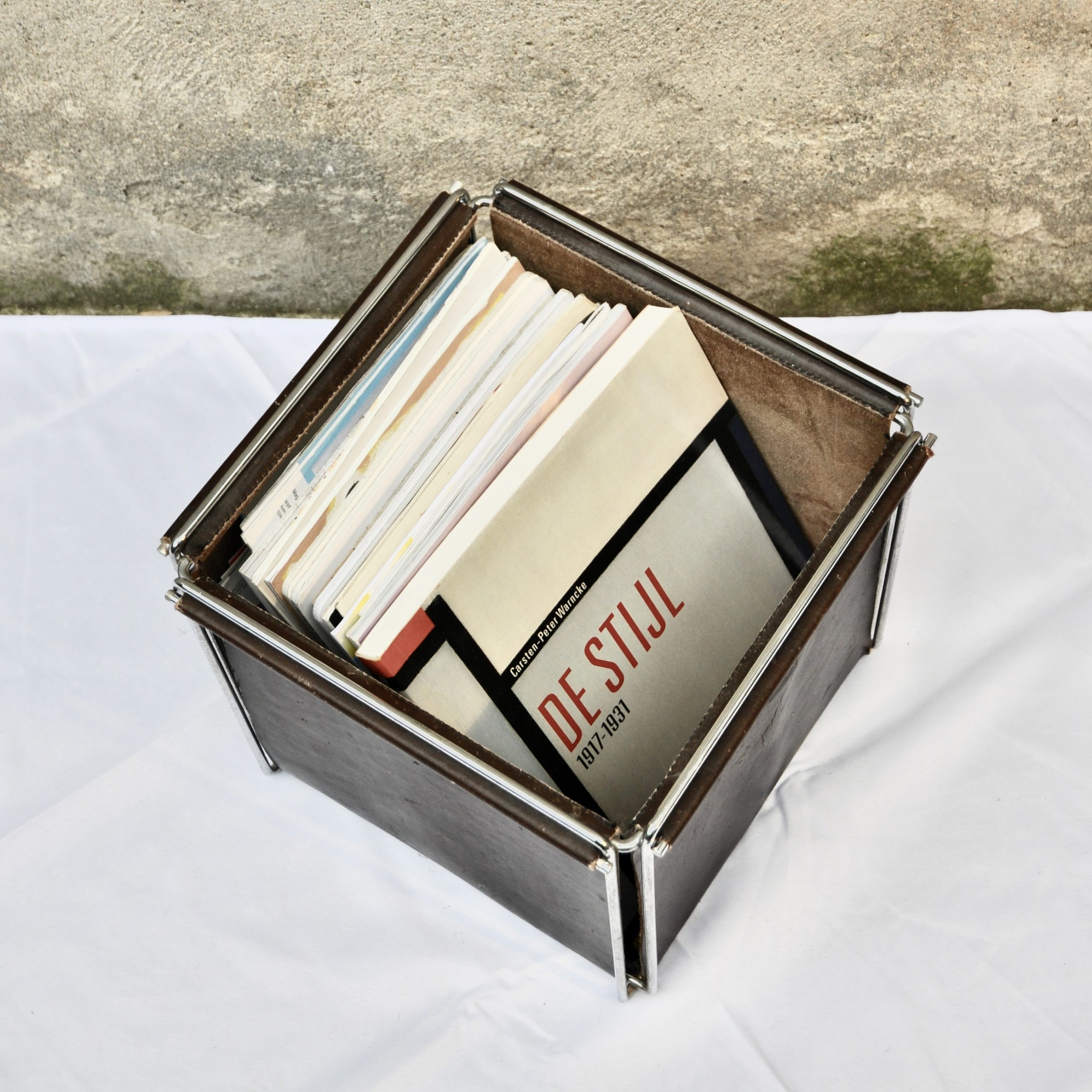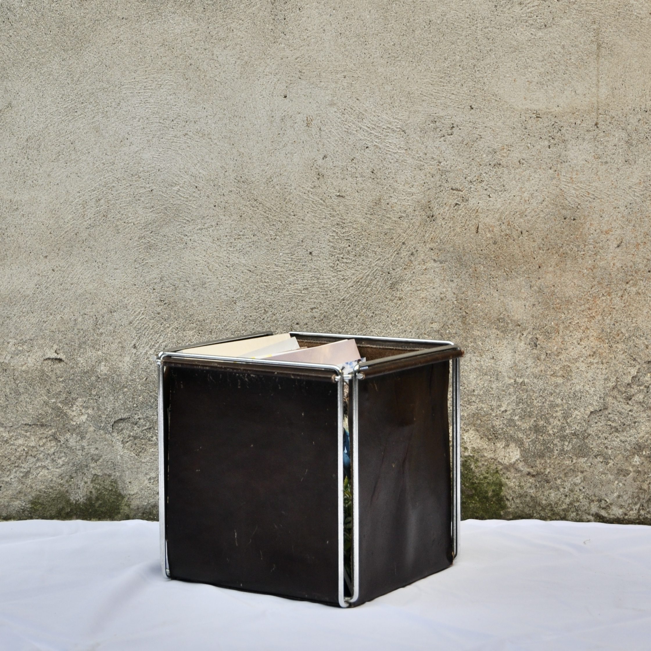 Produit venduPorte-revues ou corbeille à papier de forme cubique dessinée par le designer français Gérard Rignault dans les années 70 et éditée par Group SA ou SA Edition.