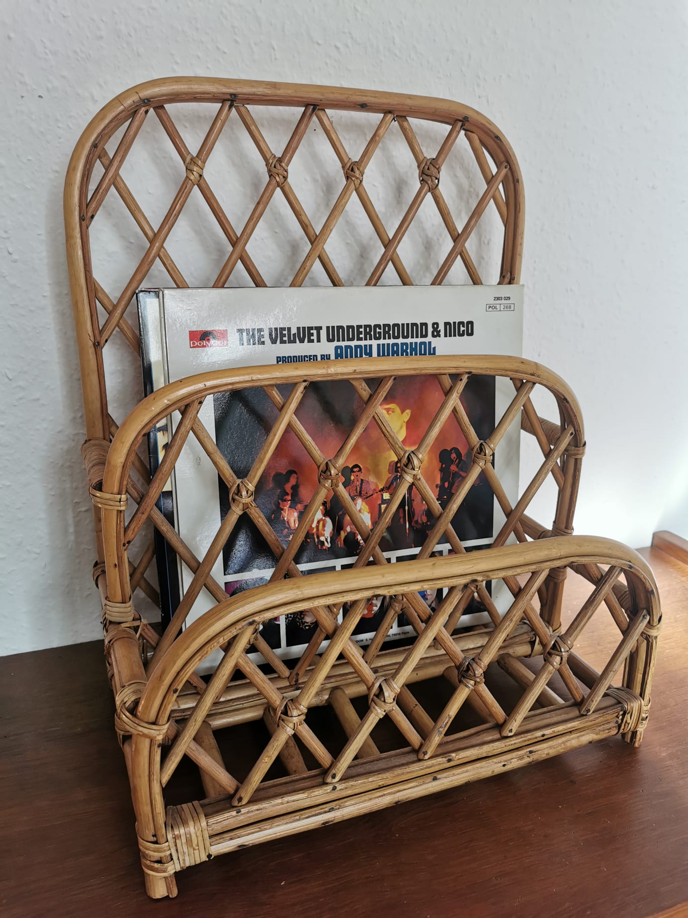 Produit venduPorte-revues/Documents en rotin des années 60.