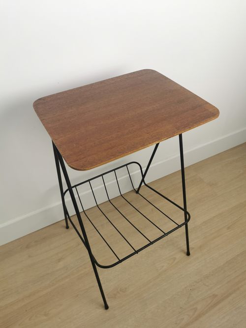 Produit venduPorte revues/meuble d’appoint des années 60 avec structure en métal et plateau en bois.