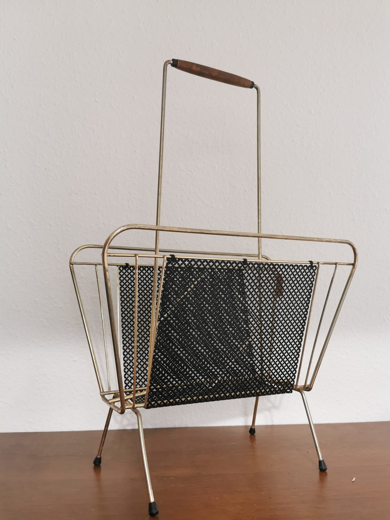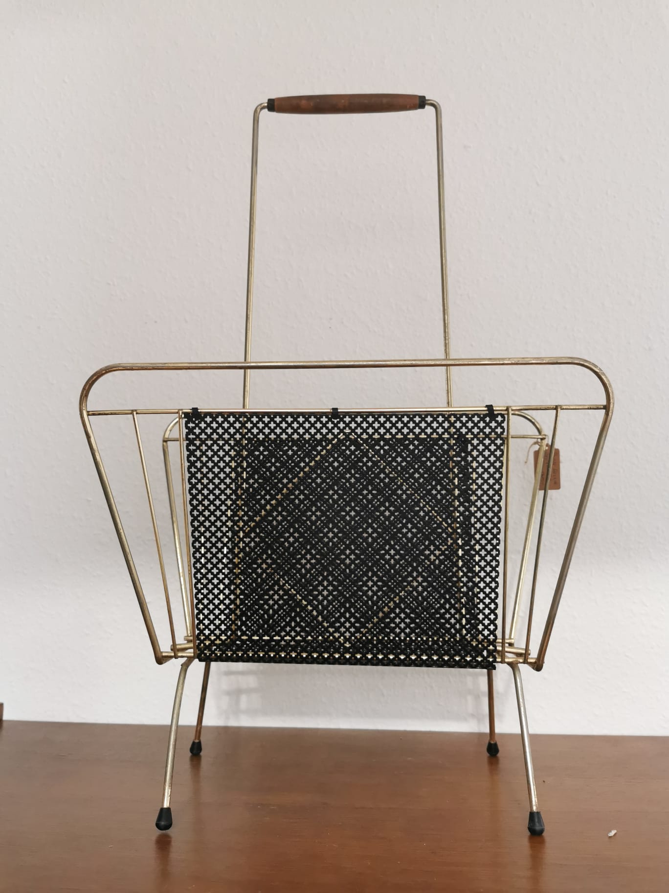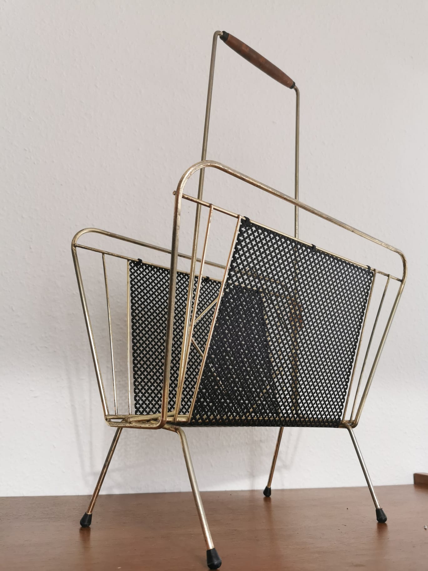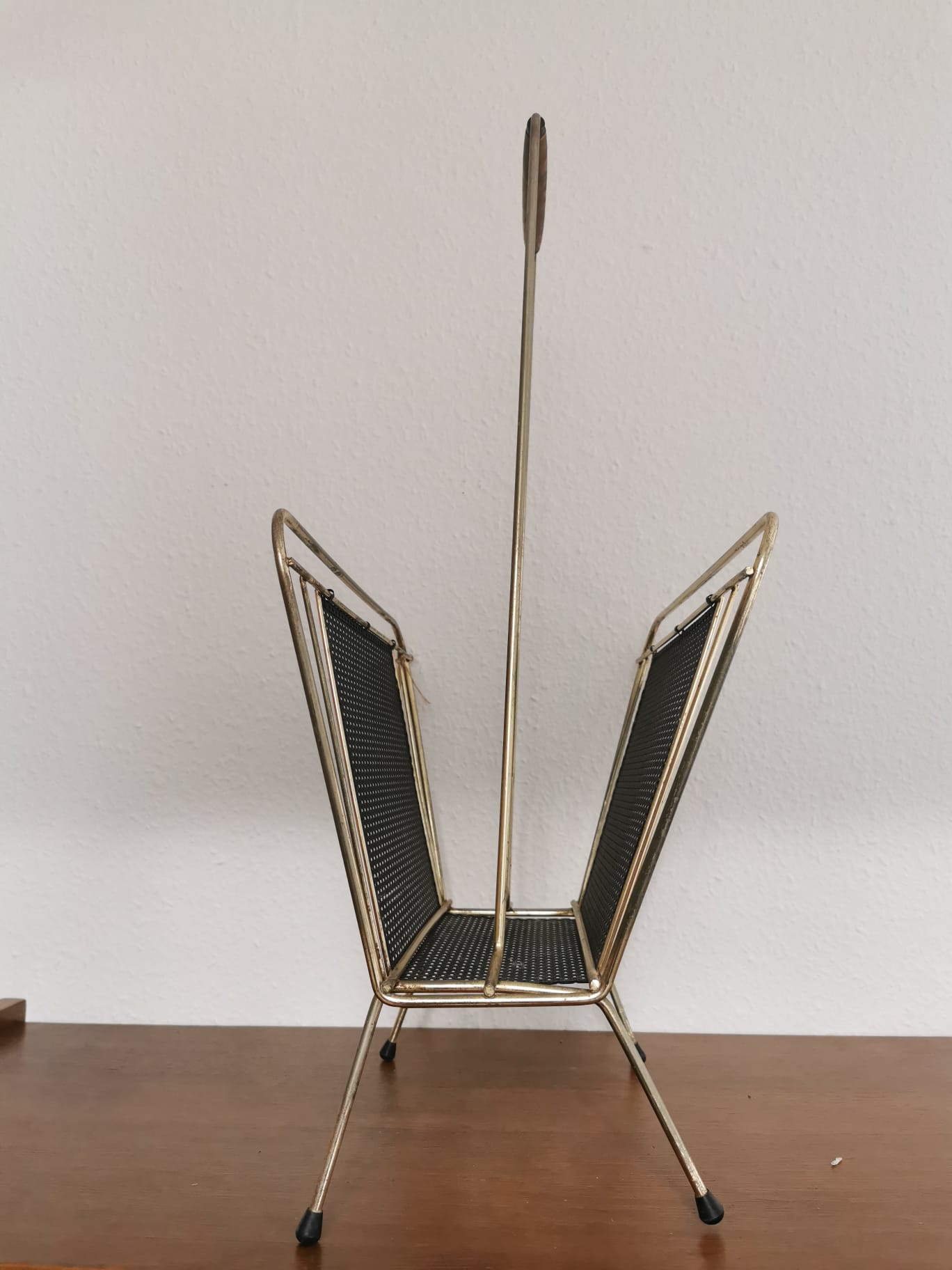 Produit venduPorte-revues des années 60 en métal perforé noir et structure laitonnée.