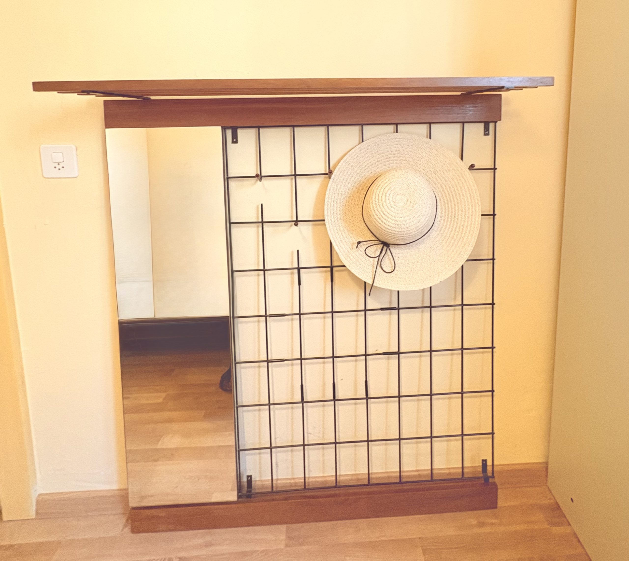 * Authenticité garantie : Présence des pattes de fixation d’origine soudées à la structure, assurant une pose murale stable et fidèle au design d’époque.