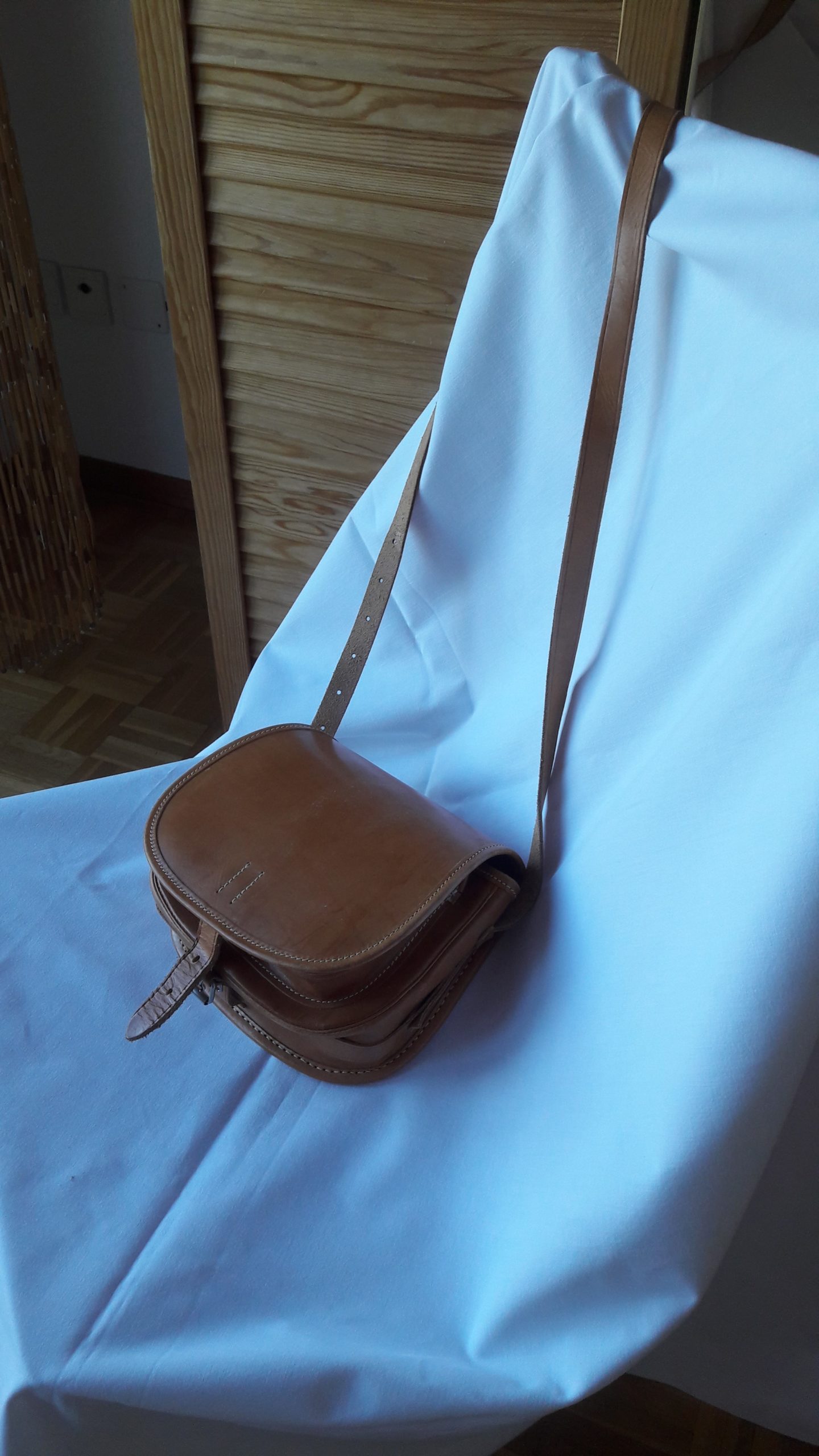 Produit venduSac en cuir naturel à bandoulière réglable des années 80. La poche se ferme avec une pression. Il y a également une poche interne.