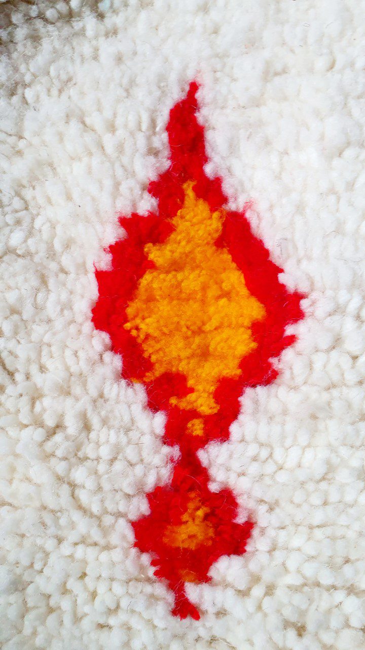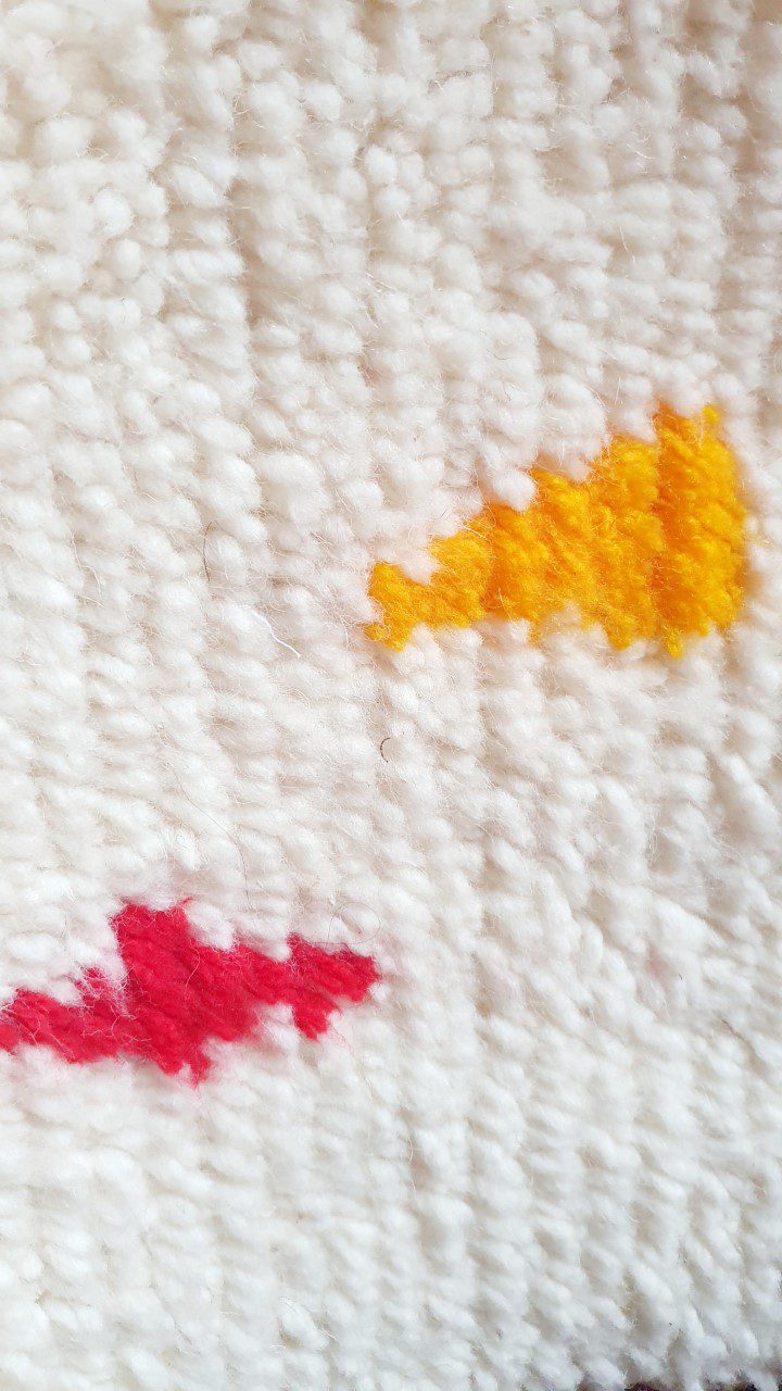 Tapis tissé dans de le respect de l’art par la talentueuse Zahra, ma voisine, chez elle sur un métier à tisser traditionnel.