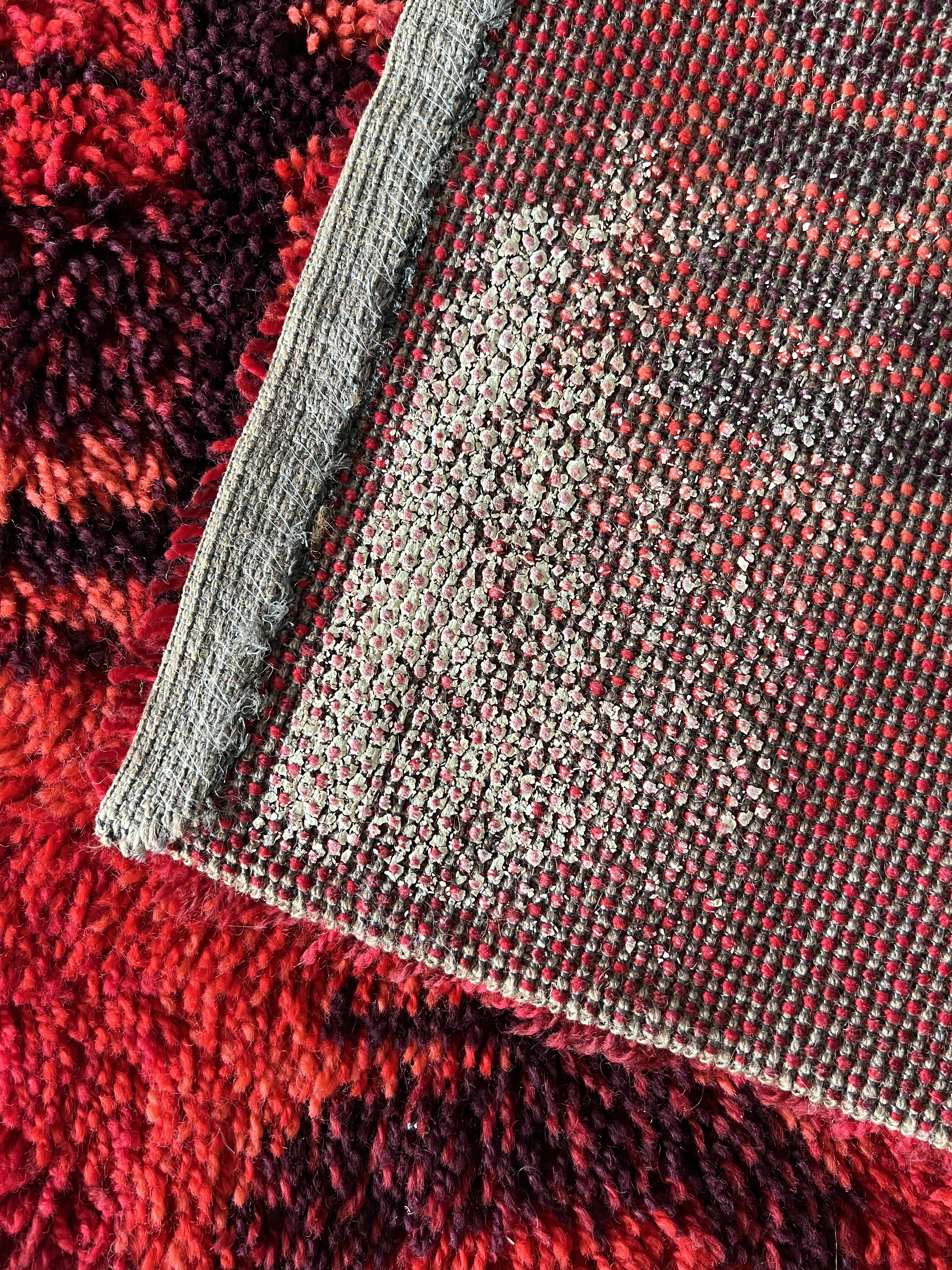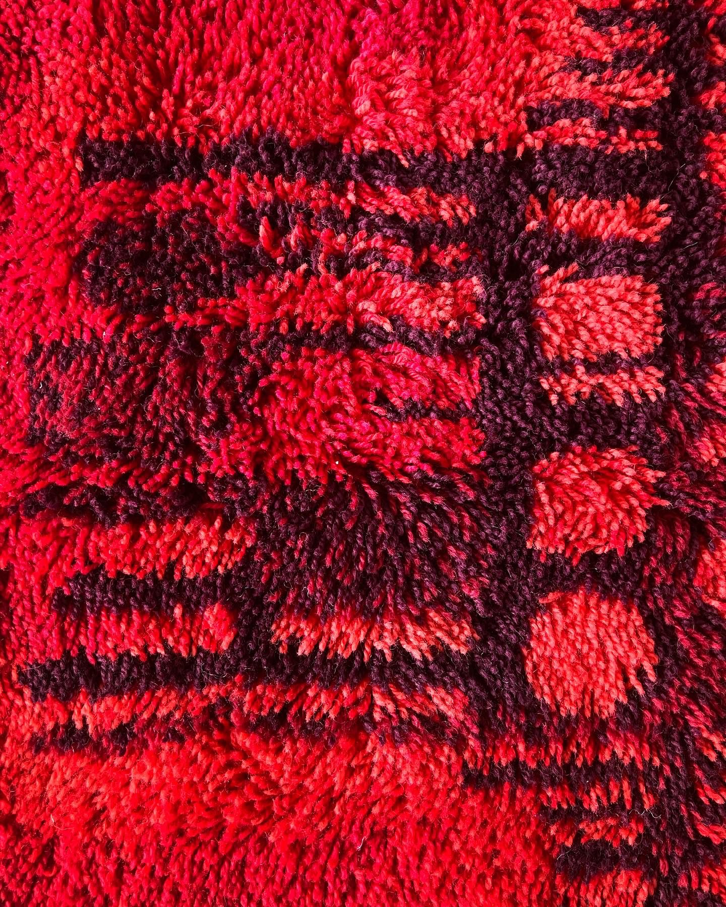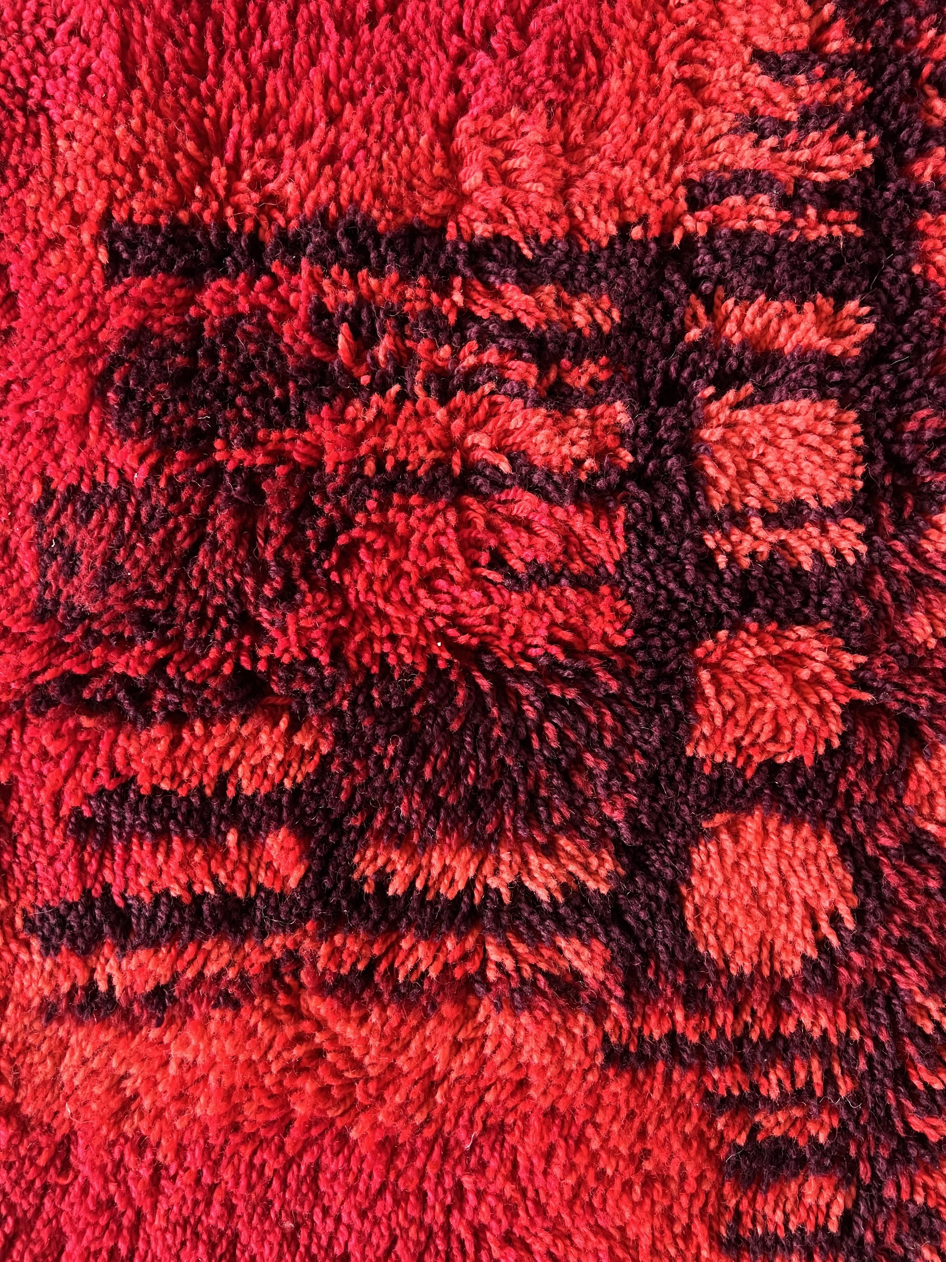 Le tapis est fait de laine / nuances étonnantes de rouge: du rouge cerise au rouge bordeaux