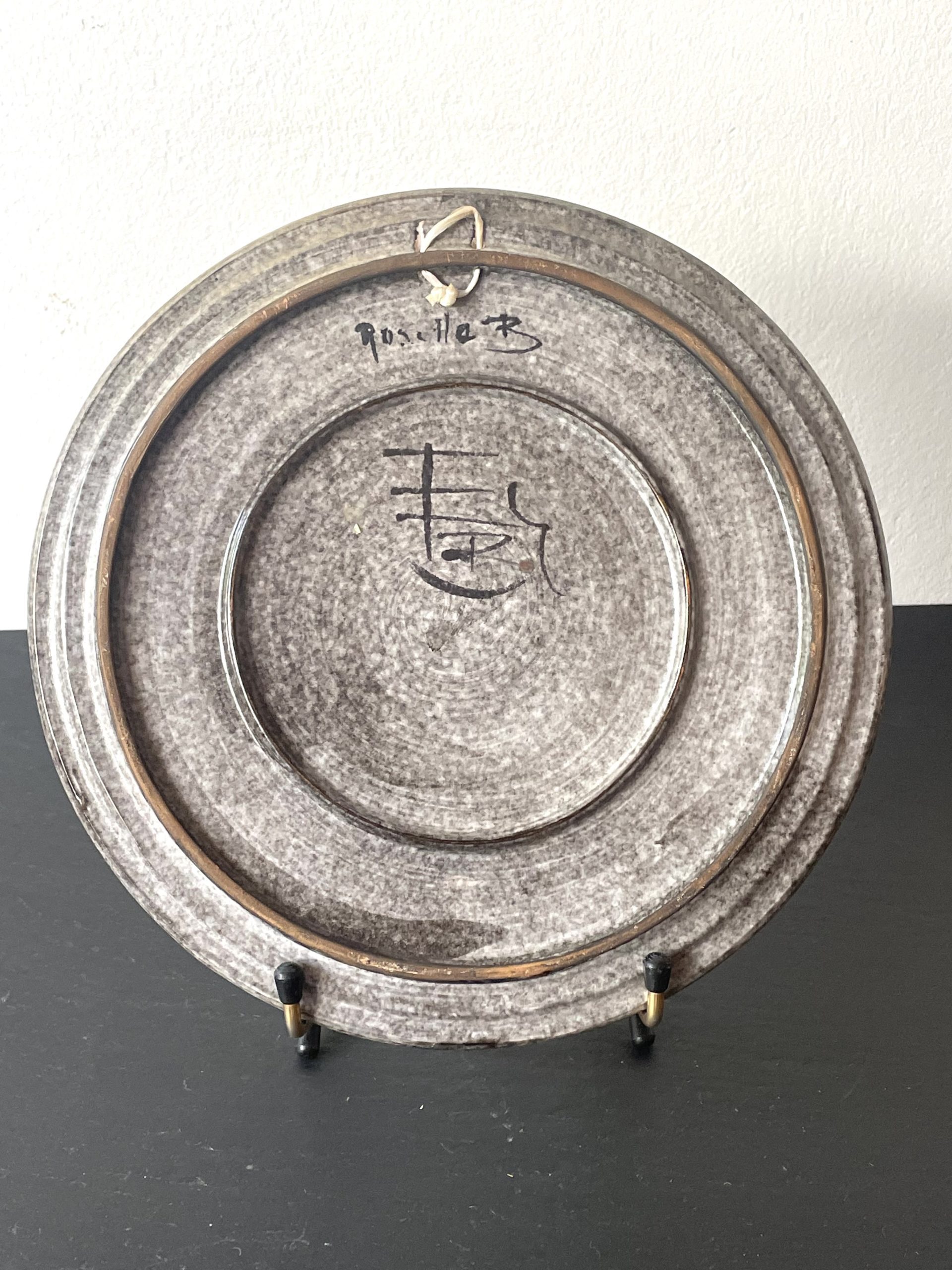 Produit venduAssiette en céramique émaillée de Rosette Badertscher pour l’atelier Noverraz, poterie de La Chapelle à Carouge, Suisse circa 1940.