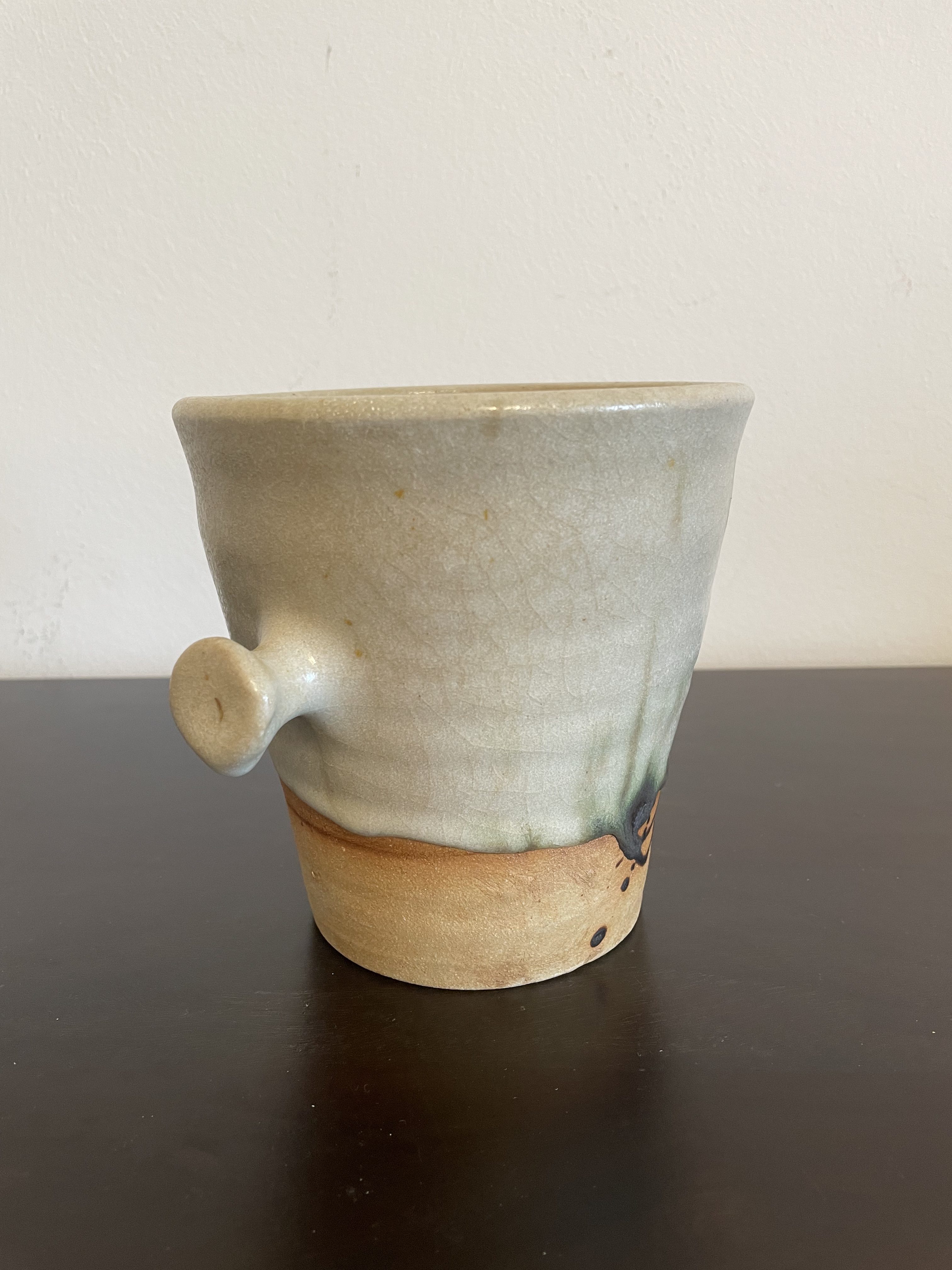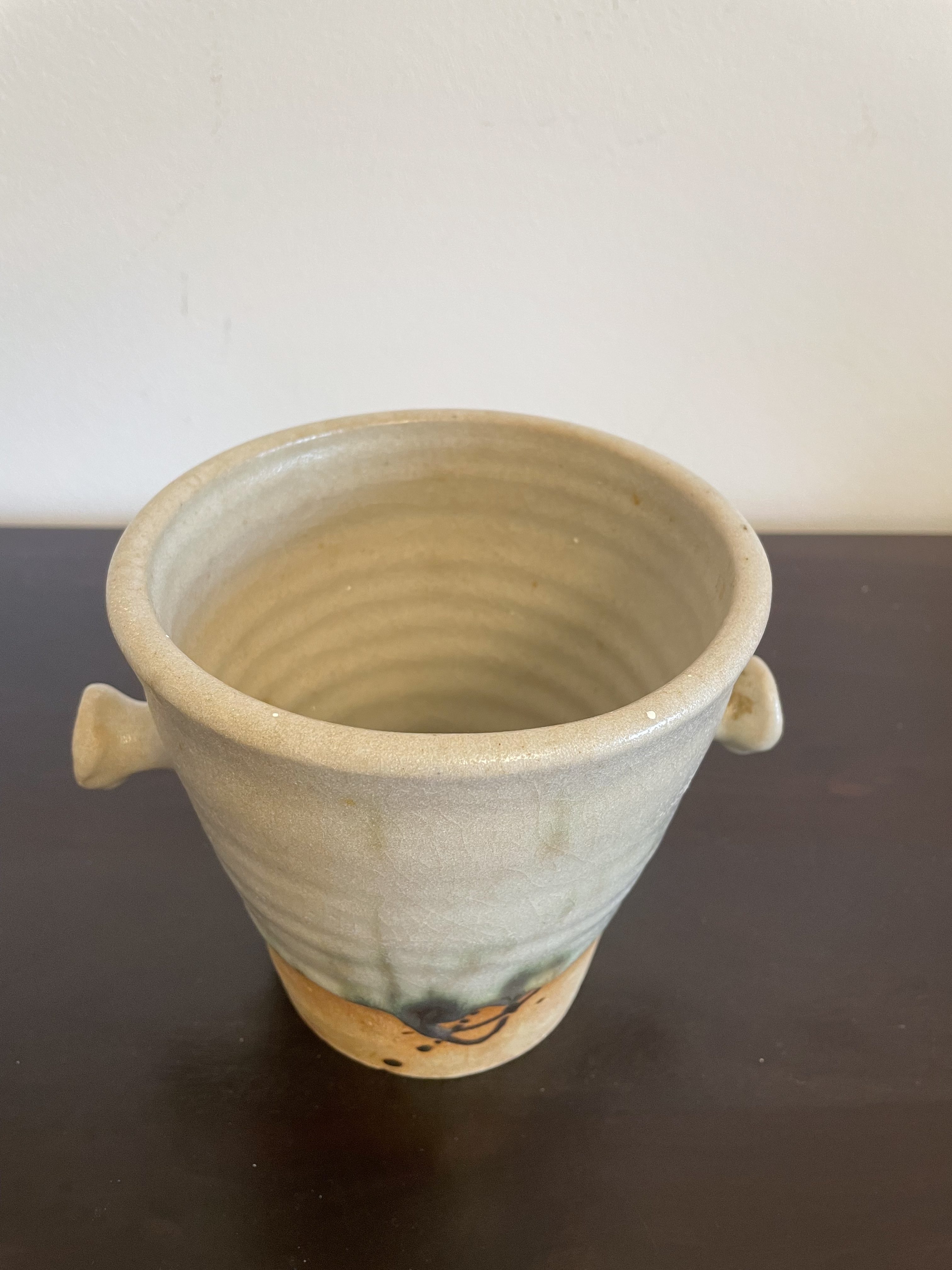 Produit venduSeau à glaçons en céramique semi émaillée et décor tachiste caractéristique de l’atelier “poterie de la Colombe” dans les années 50/60 a Orriule en France.