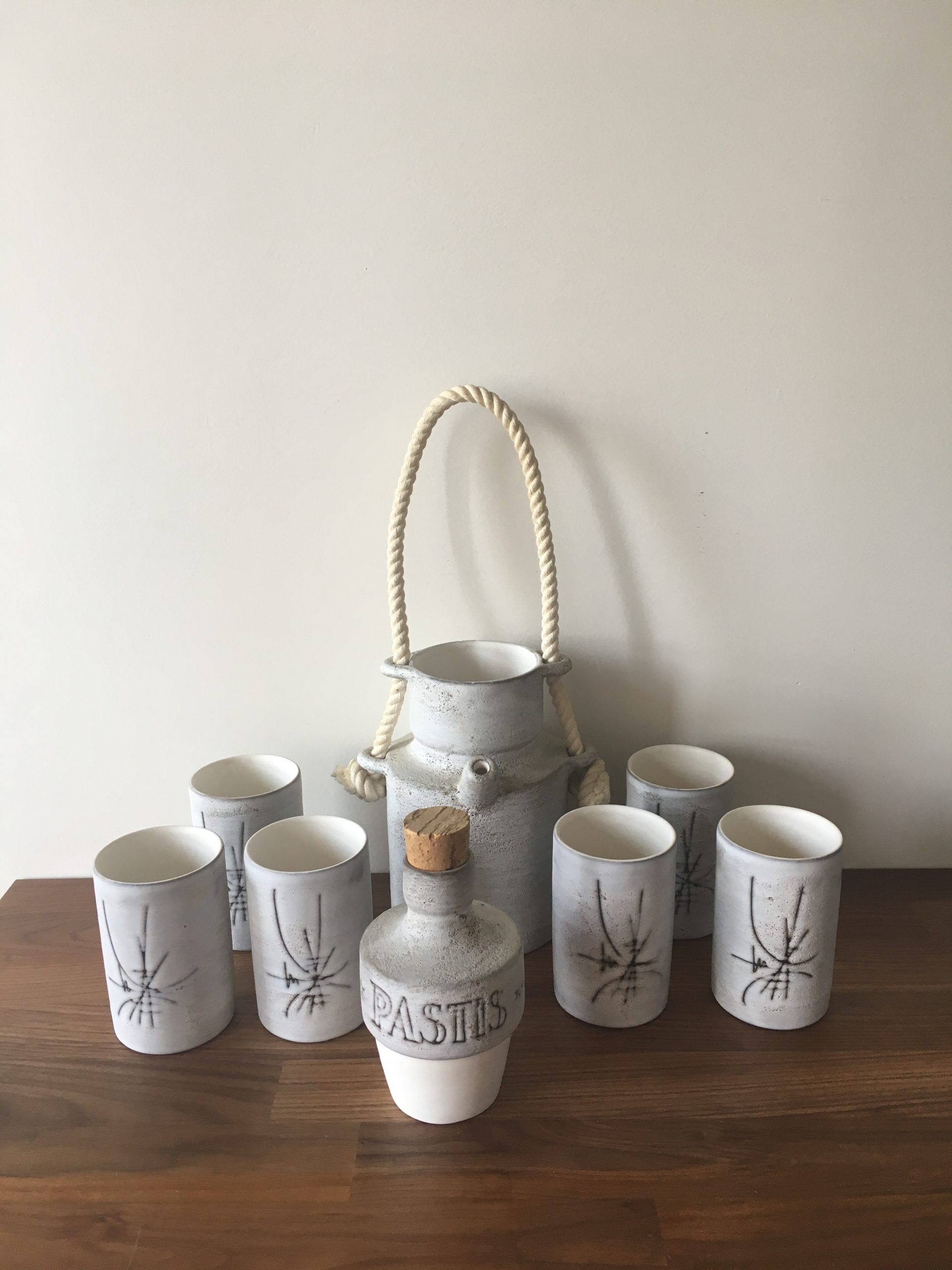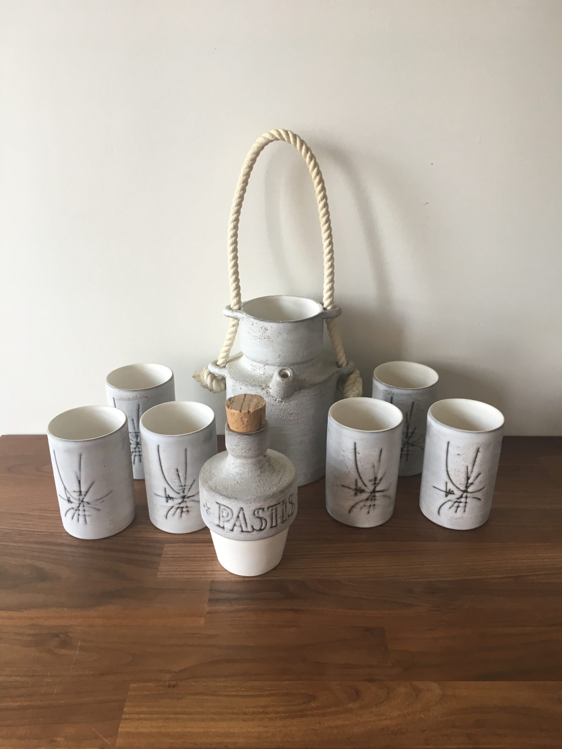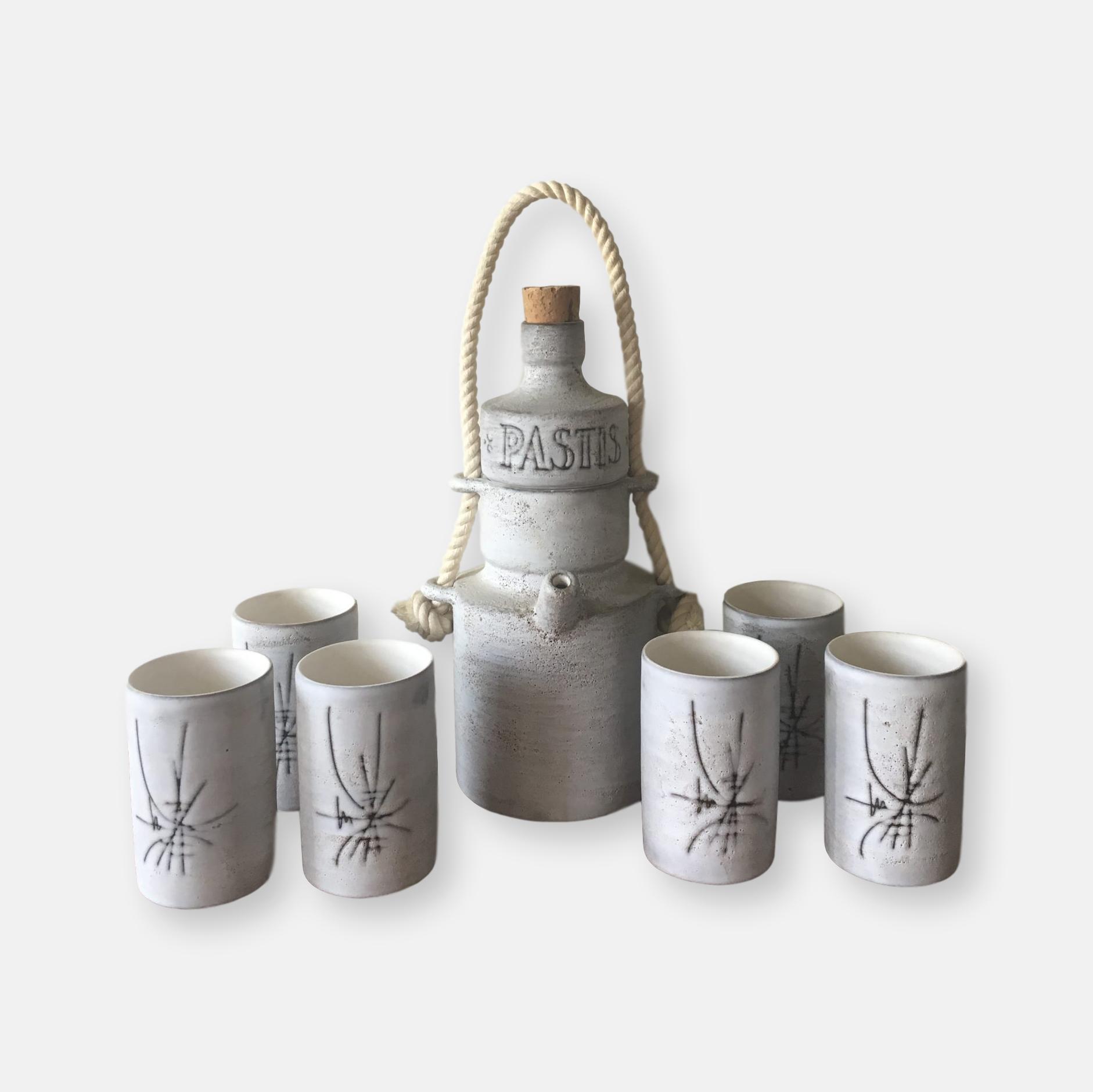 Produit venduService à pastis en céramique de Vallauris, signé Henri Cimal circa 1950/60.