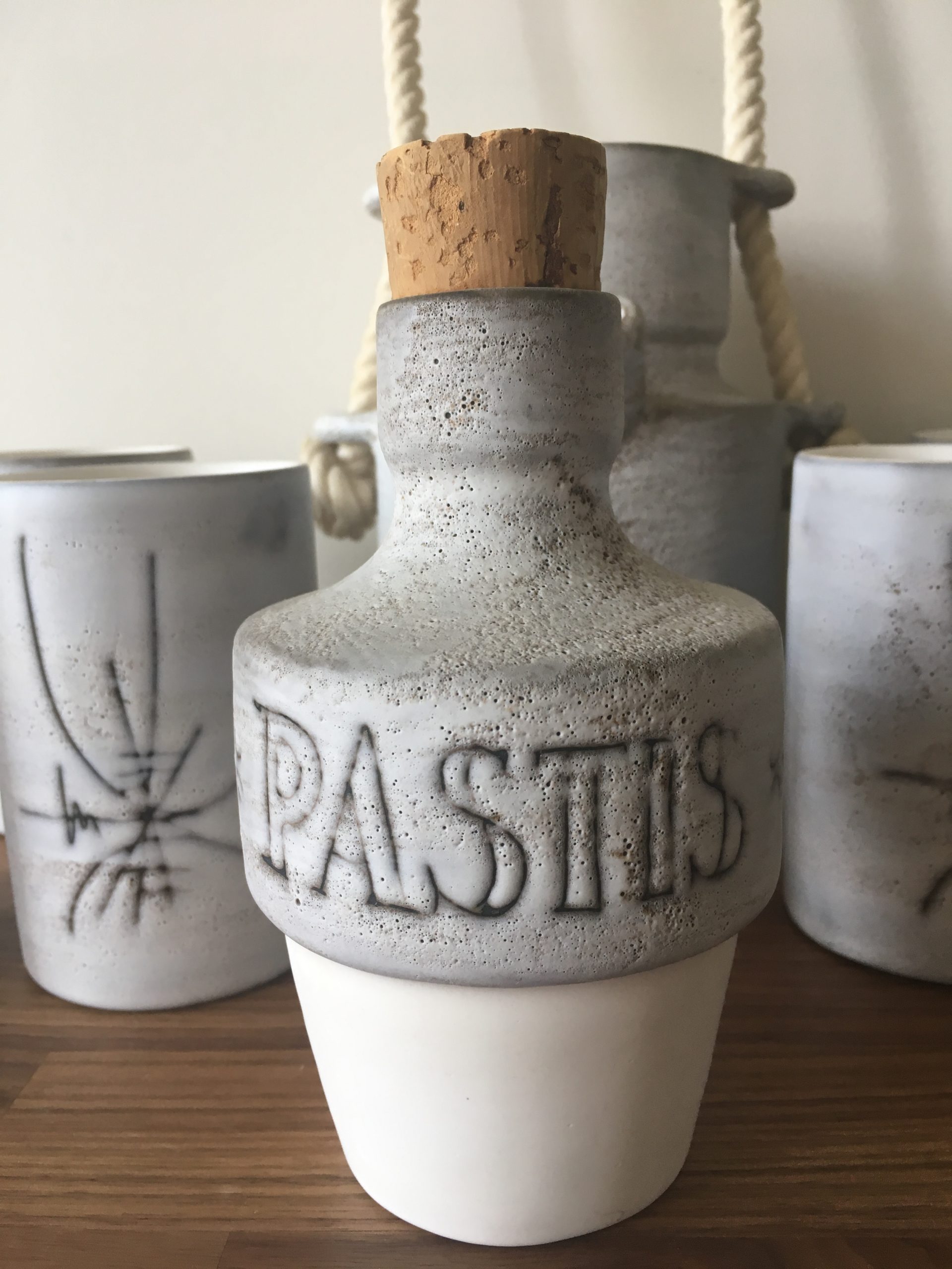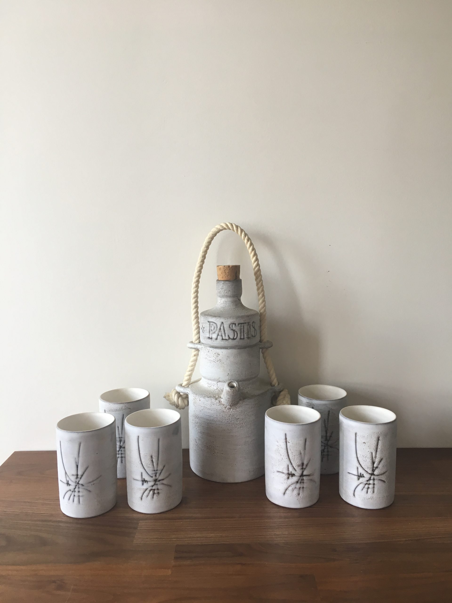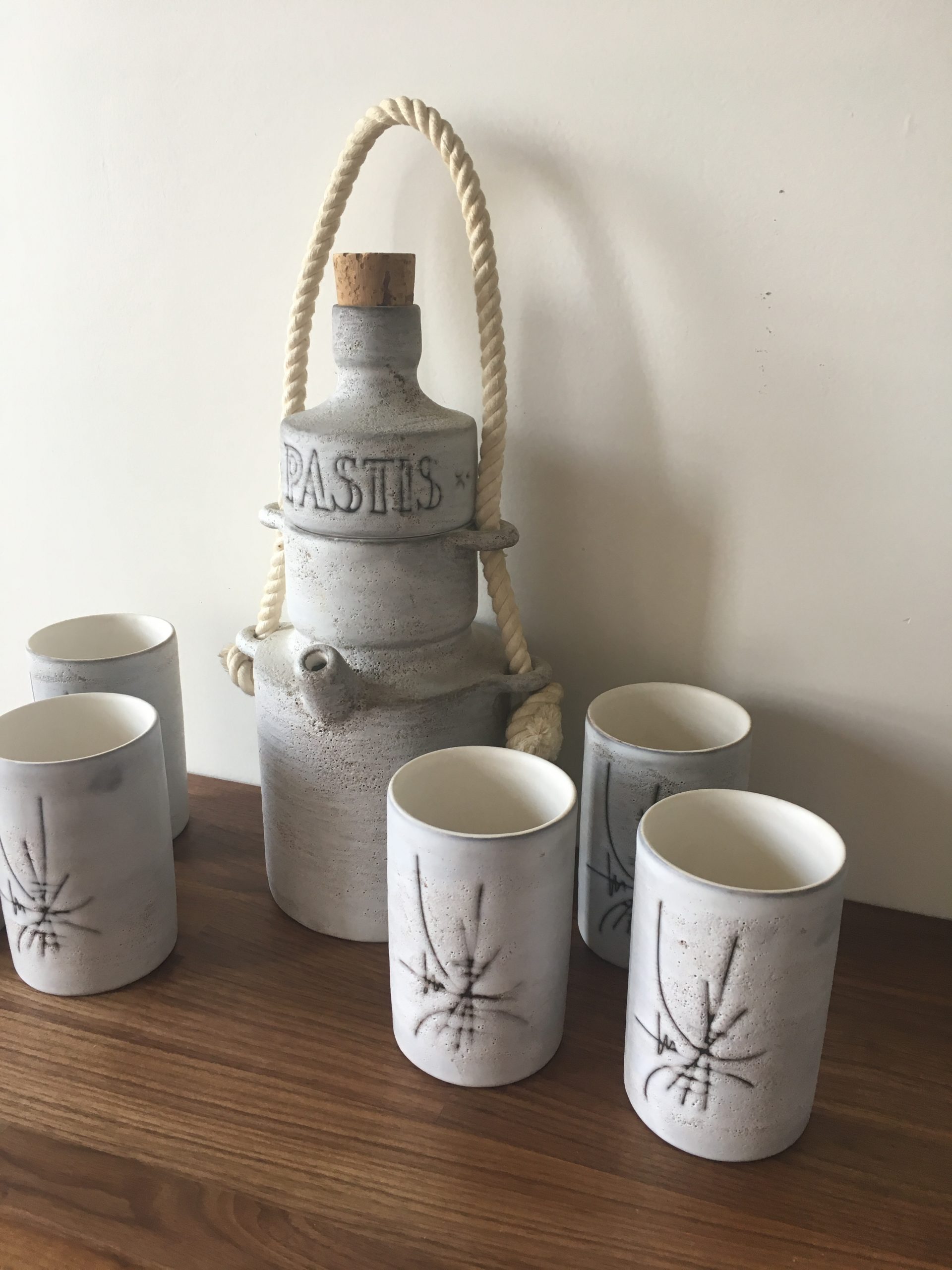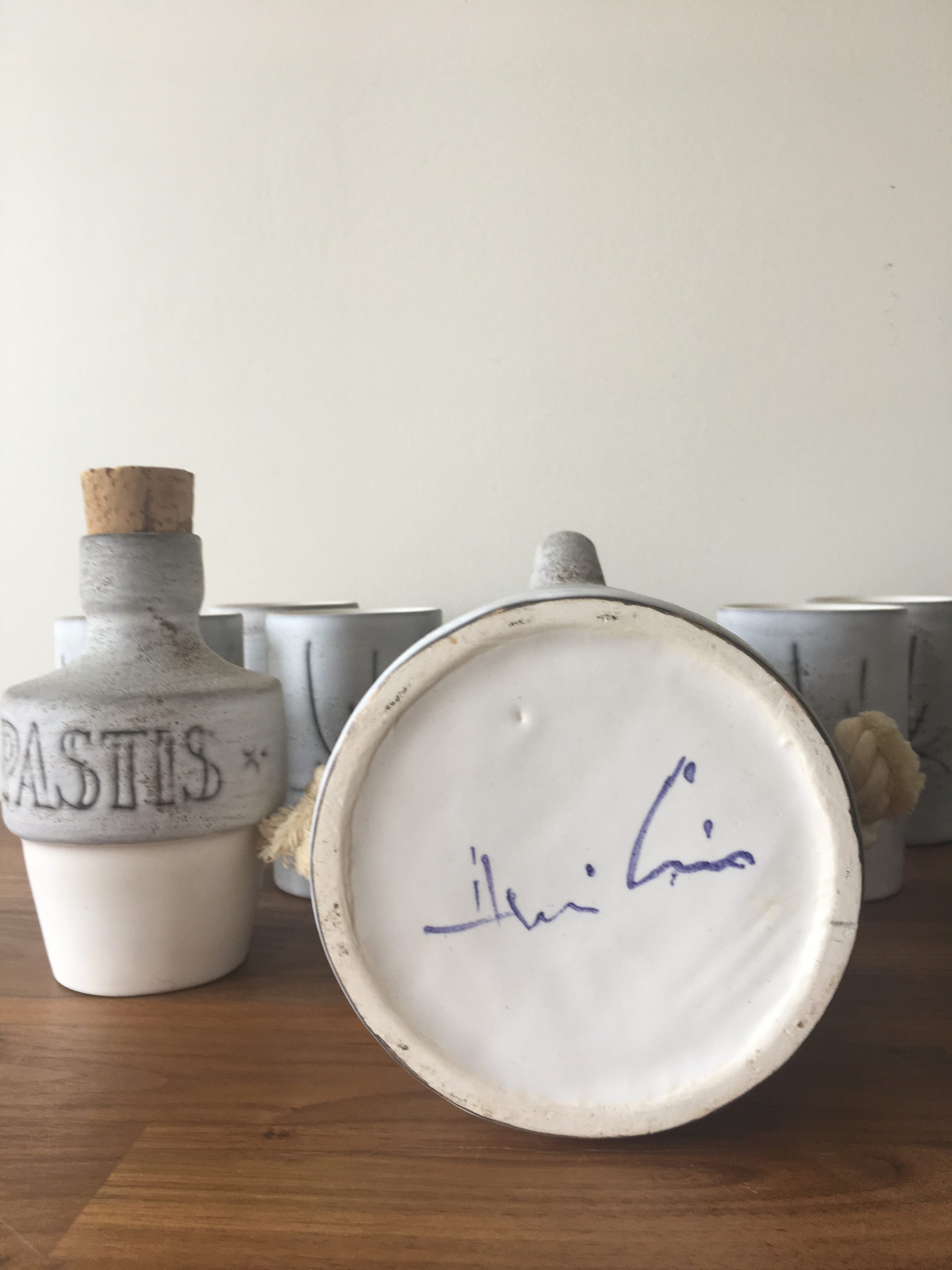 Produit venduService à pastis en céramique de Vallauris, signé Henri Cimal circa 1950/60.