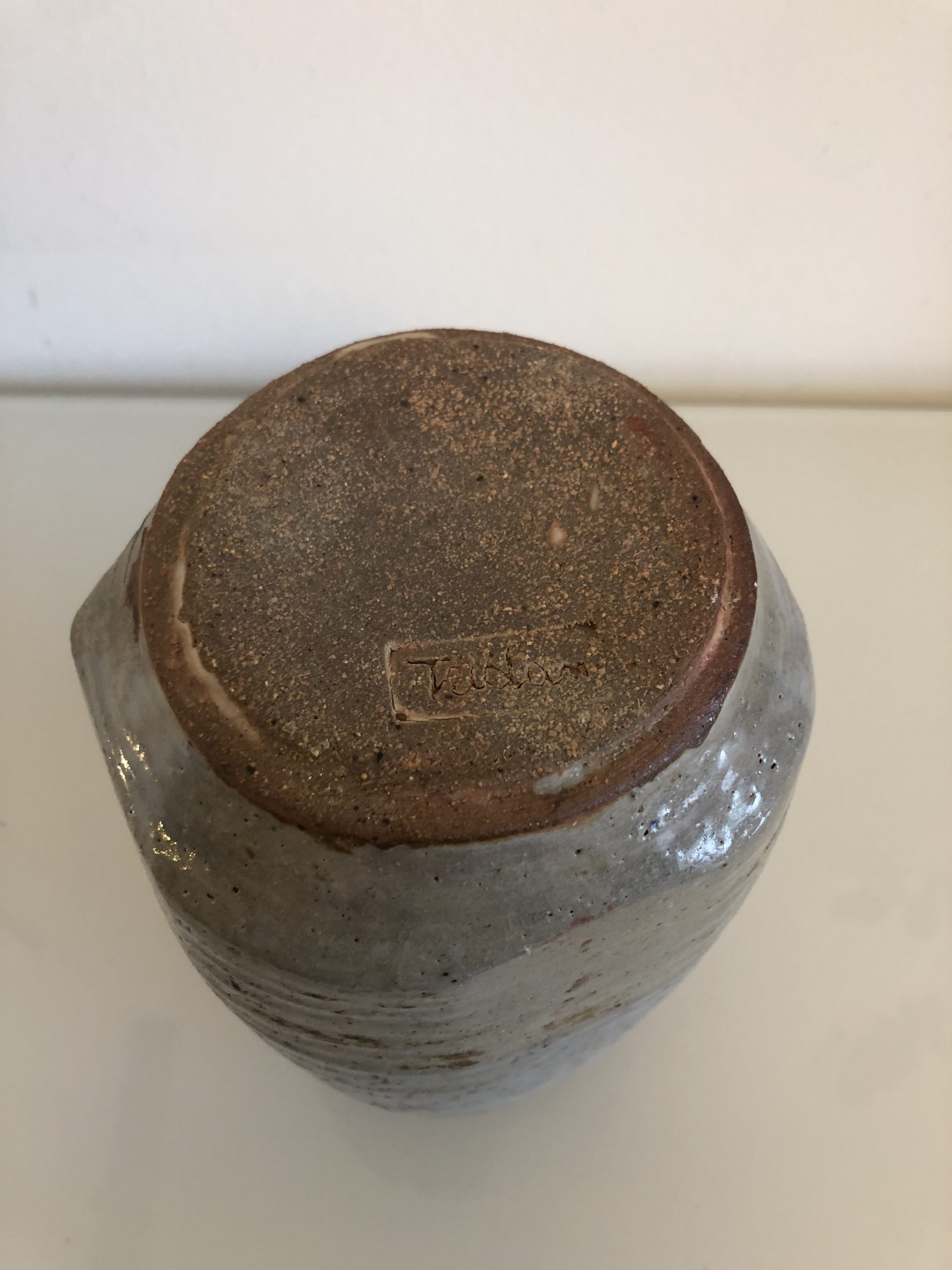 Produit venduJoli vase de la céramiste française Tristan Chaillot circa 1980. Réalisé en grès, vernis avec des glaçures blanches et bleutées. Signature incisée au dessous. Le vase est en bon état sans aucun fêle, cependant il y a 2 petits manques sur la glaçure (voir photos).