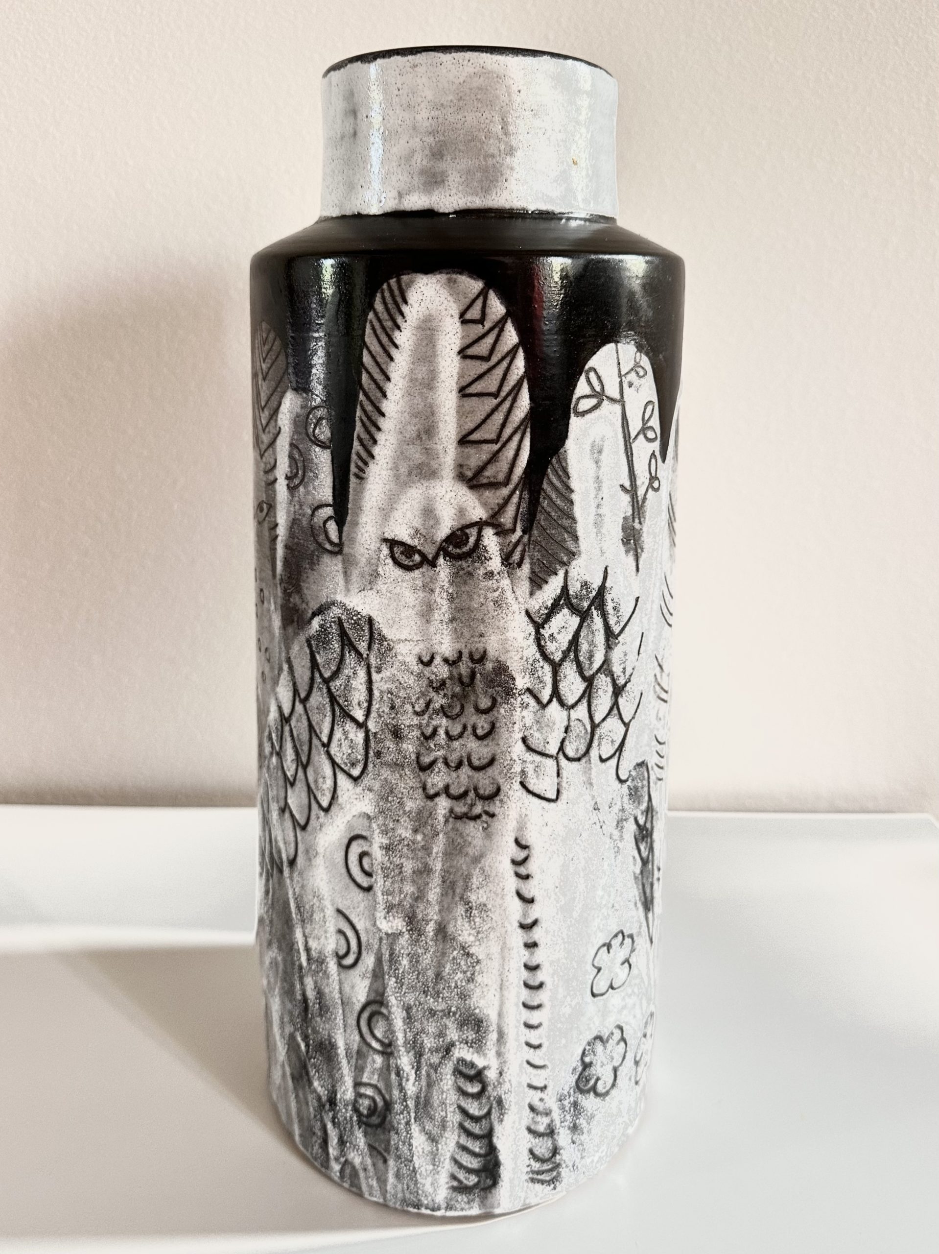 Vase original de G. Spoerri, motifs chouettes, 1970