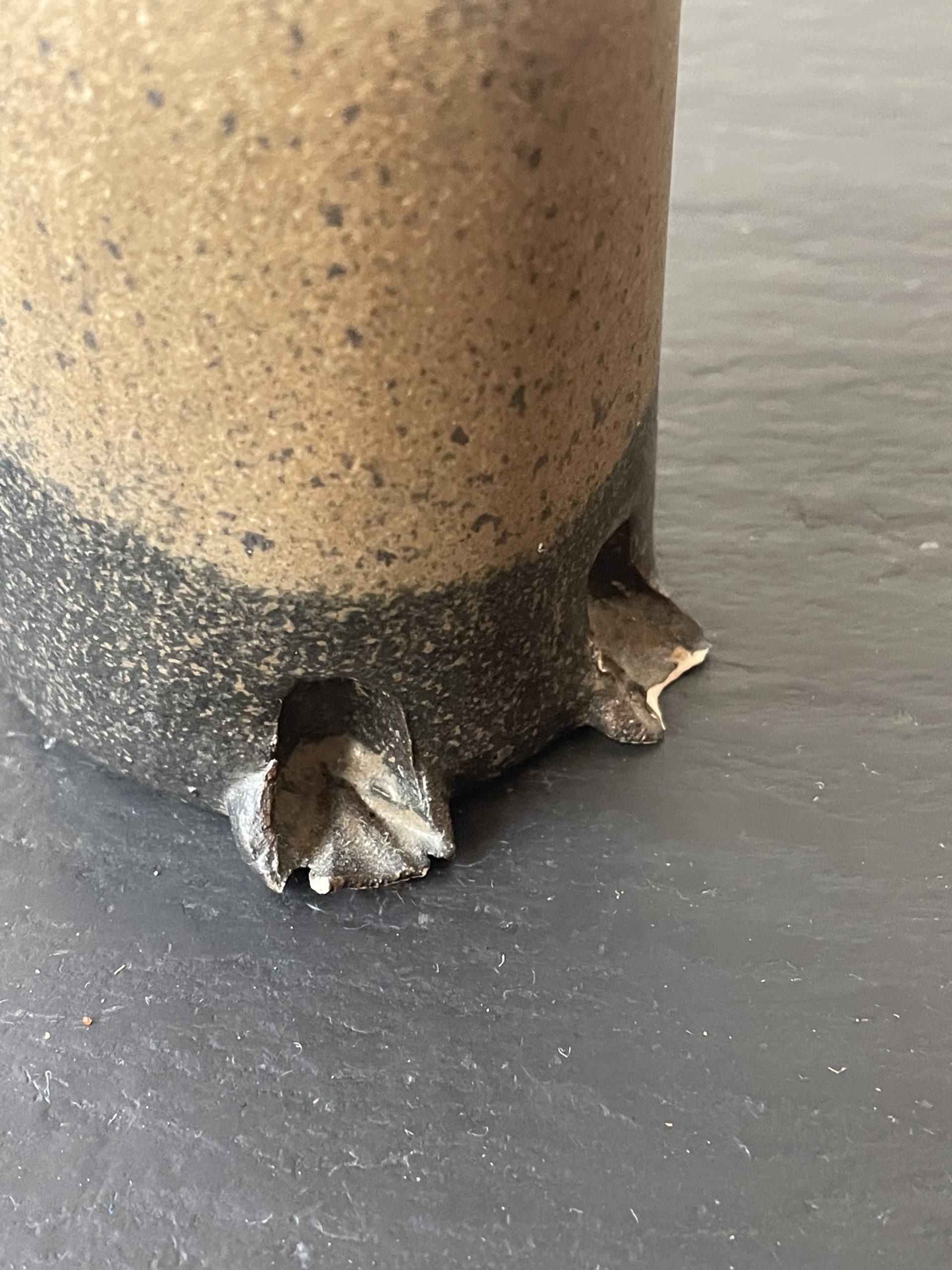 Éclat au niveau du pied et du bec.
