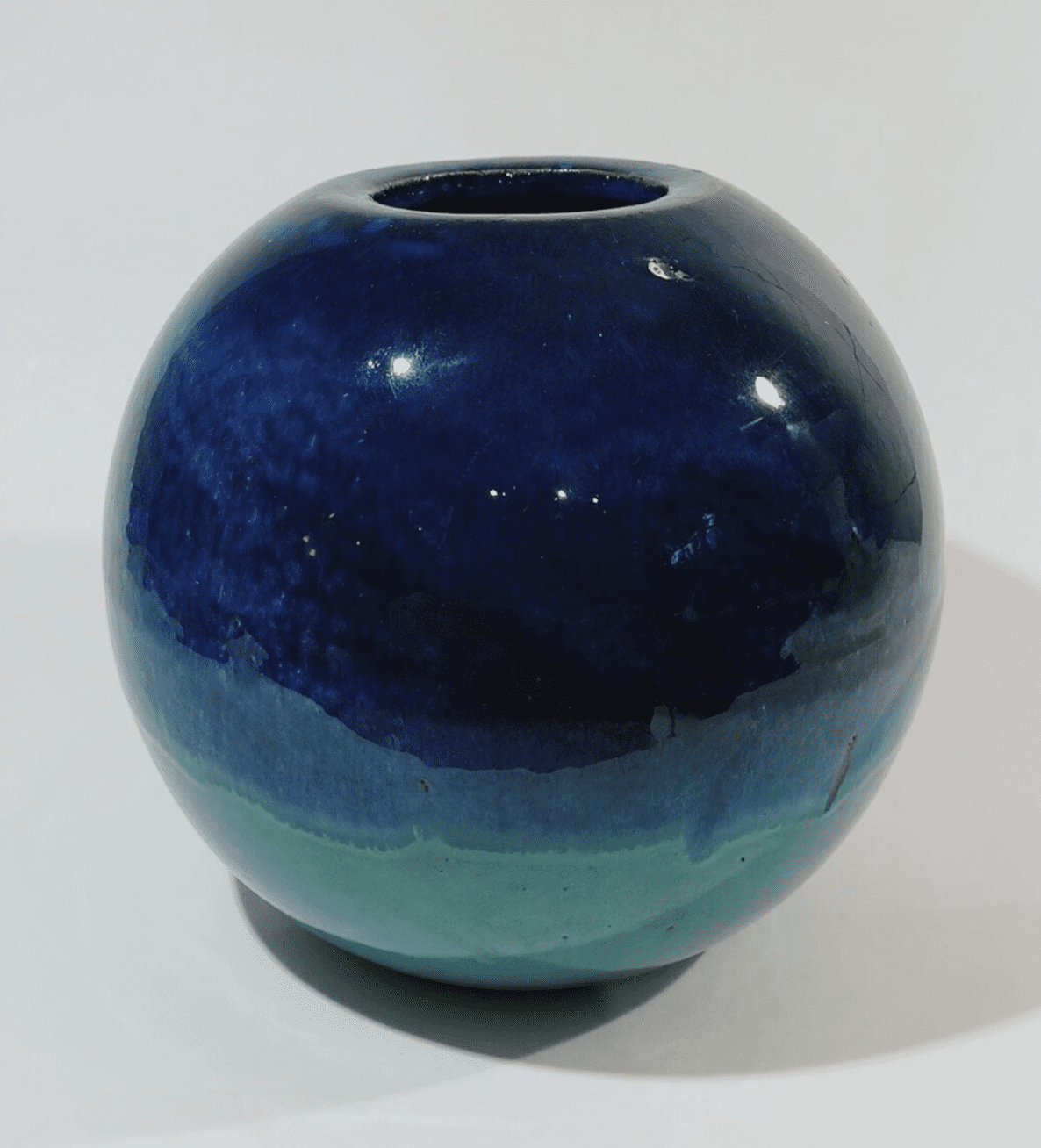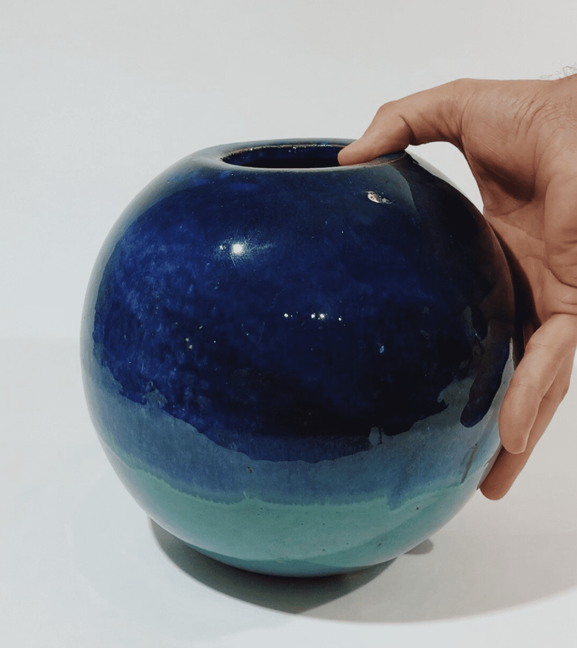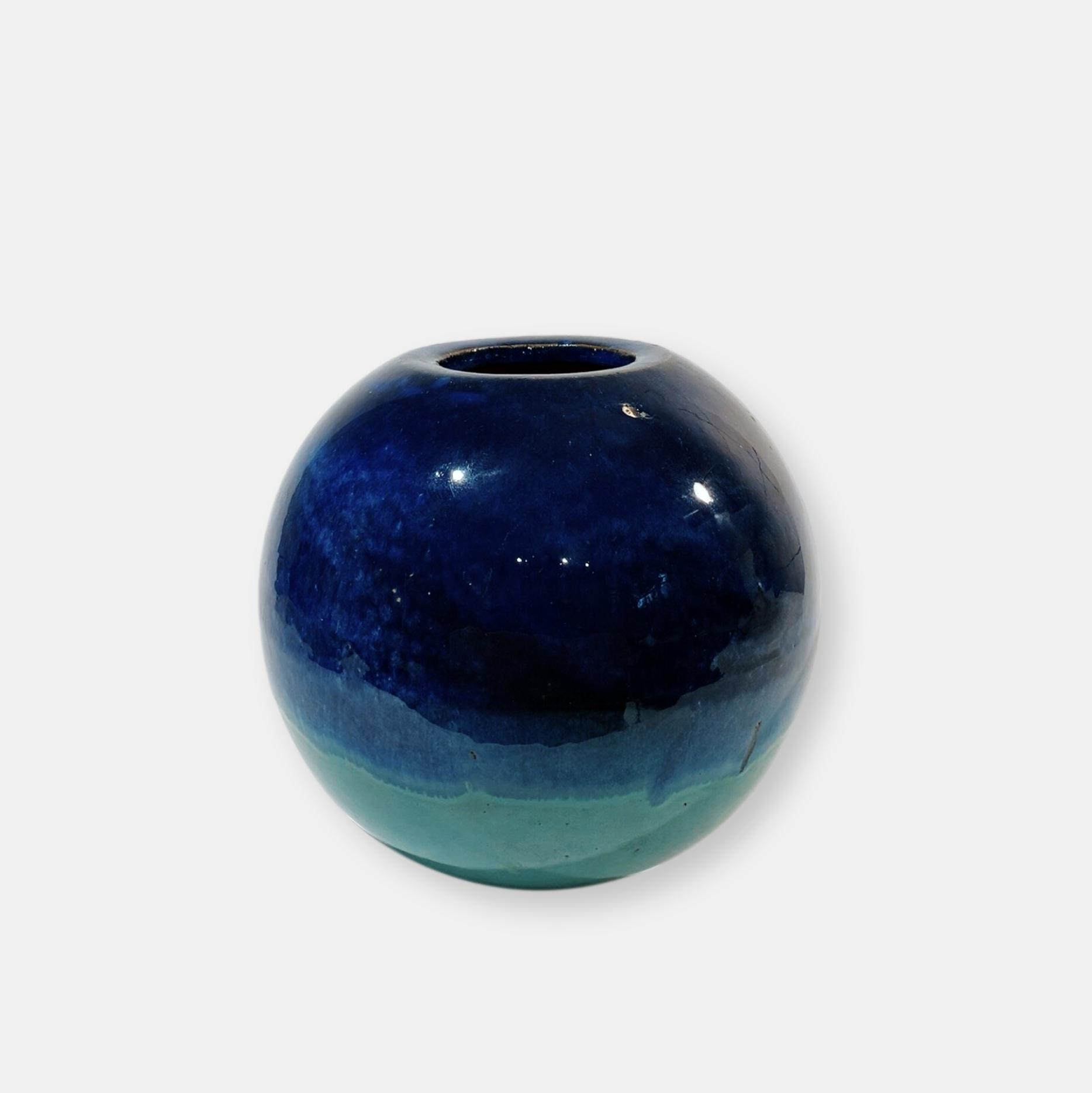 Produit venduVase rond en céramique bleu. Les couleurs des céramiques en grès varient selon où on regarde.
