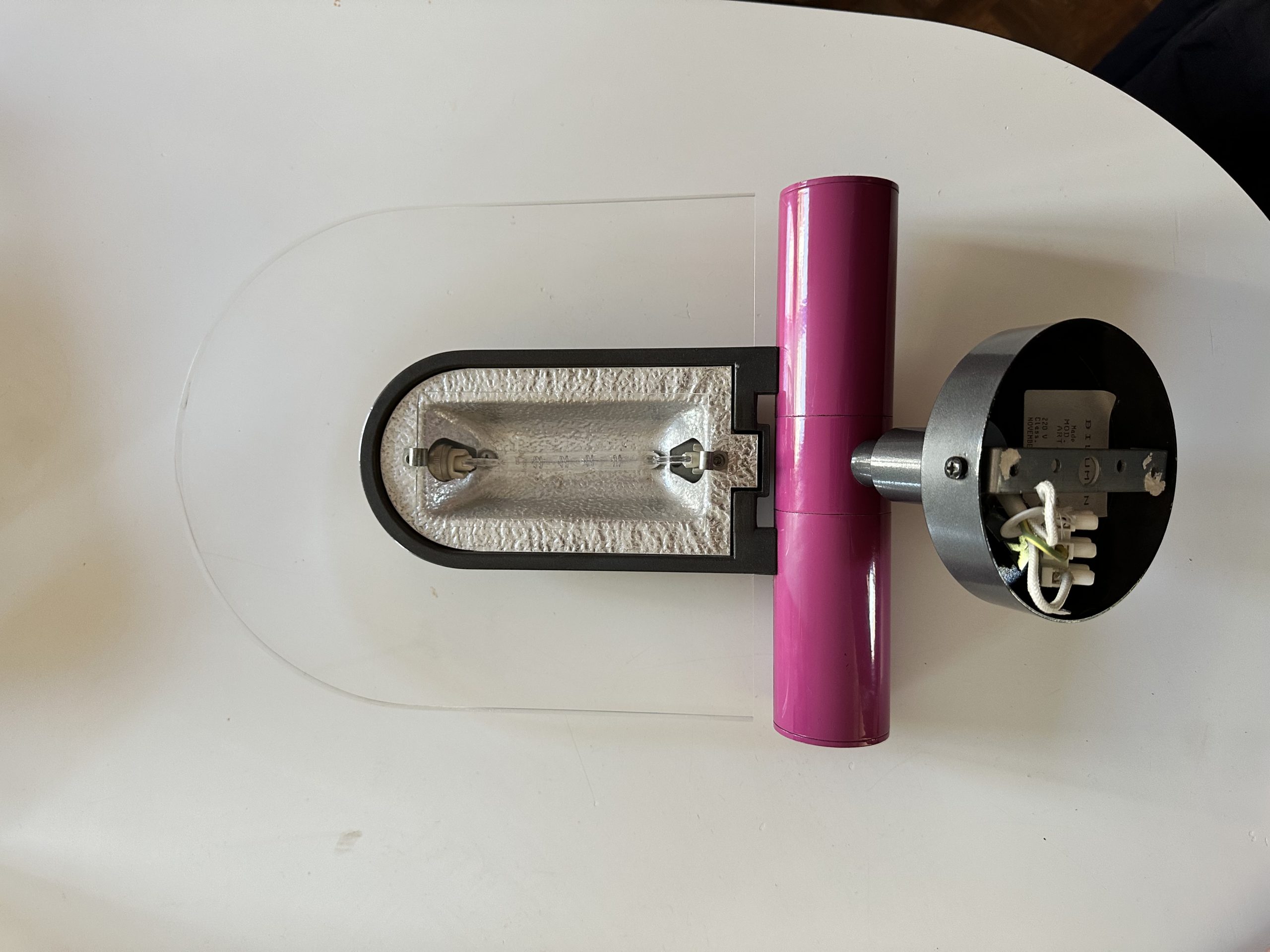 L’état de cette applique vintage est bon, on peut noté une légère décoloration du métal laqué en rose.