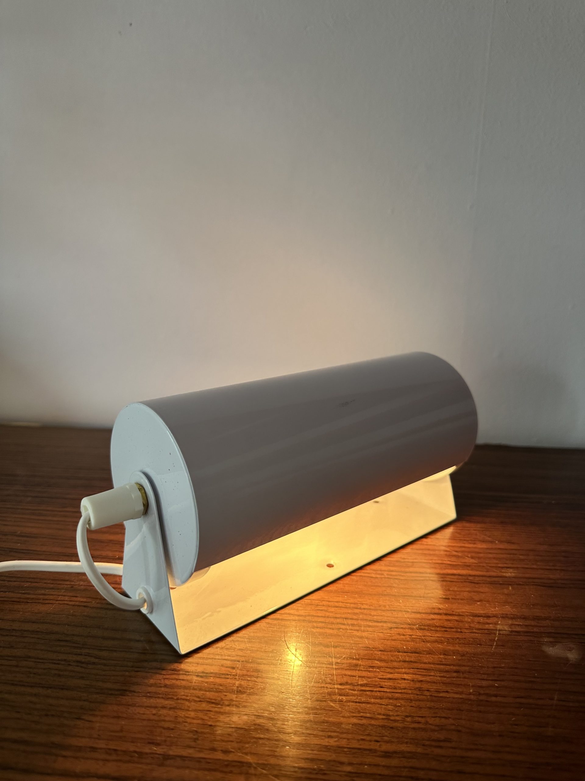 Le cylindre peut pivoter afin de produire une lumière subtil direct ou indirect. le cordon est long et l’interrupteur est sur le fil. Elle est en super état et elle est fournie avec une ampoule.