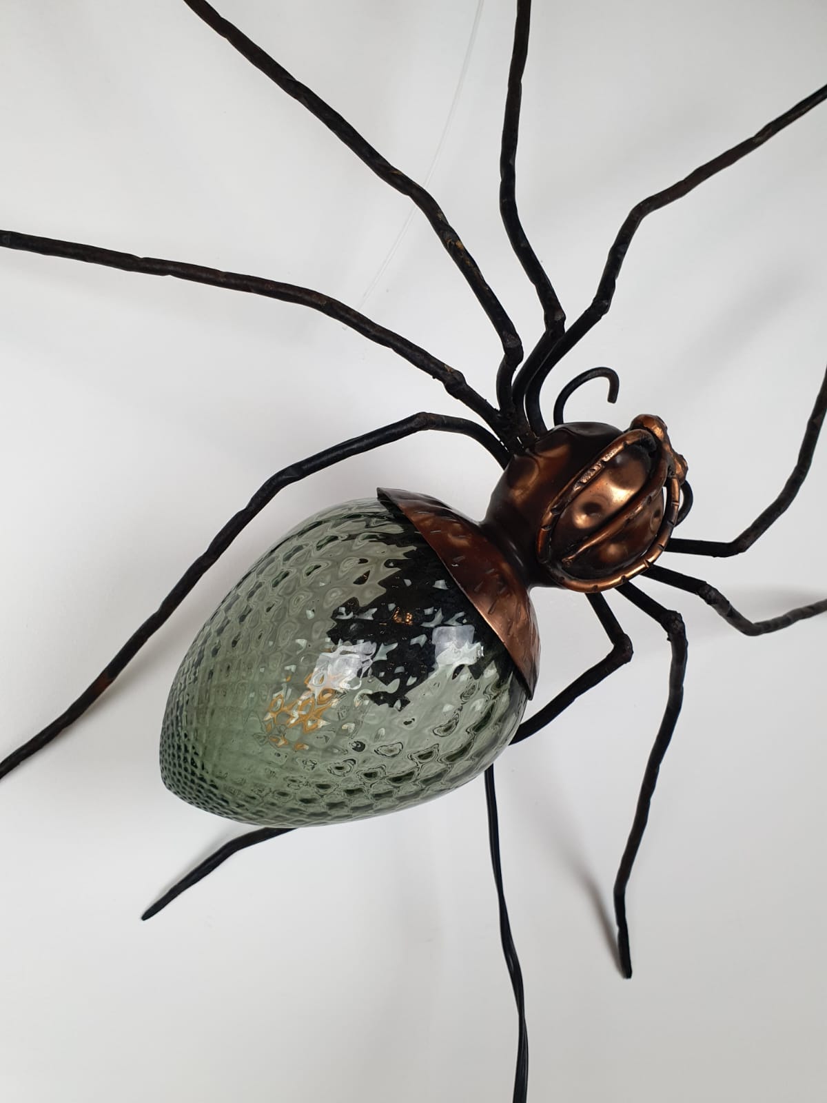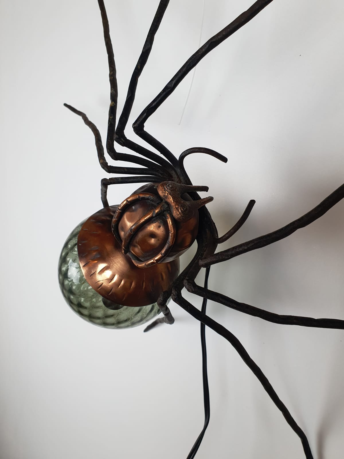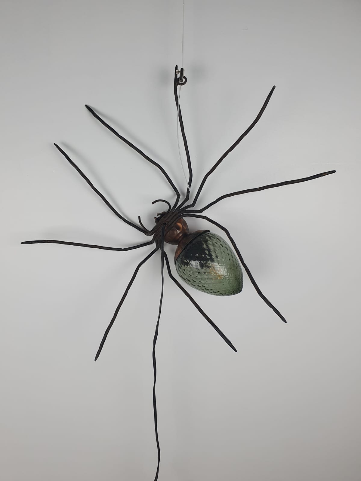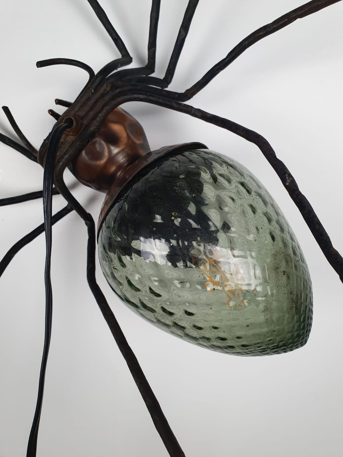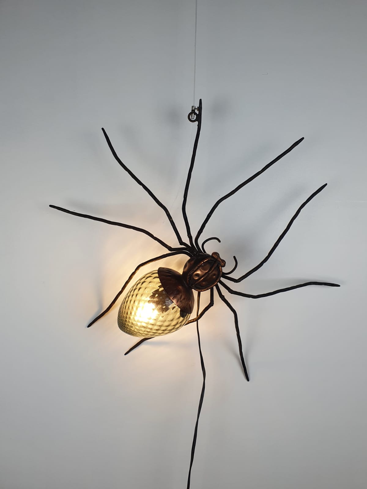 Produit venduLampe araignée (Spider lamp) fabriquée en Italie dans les années 1960 et réalisée en fer massif (peint) et en cuivre, le corps est en verre jaune clair.
