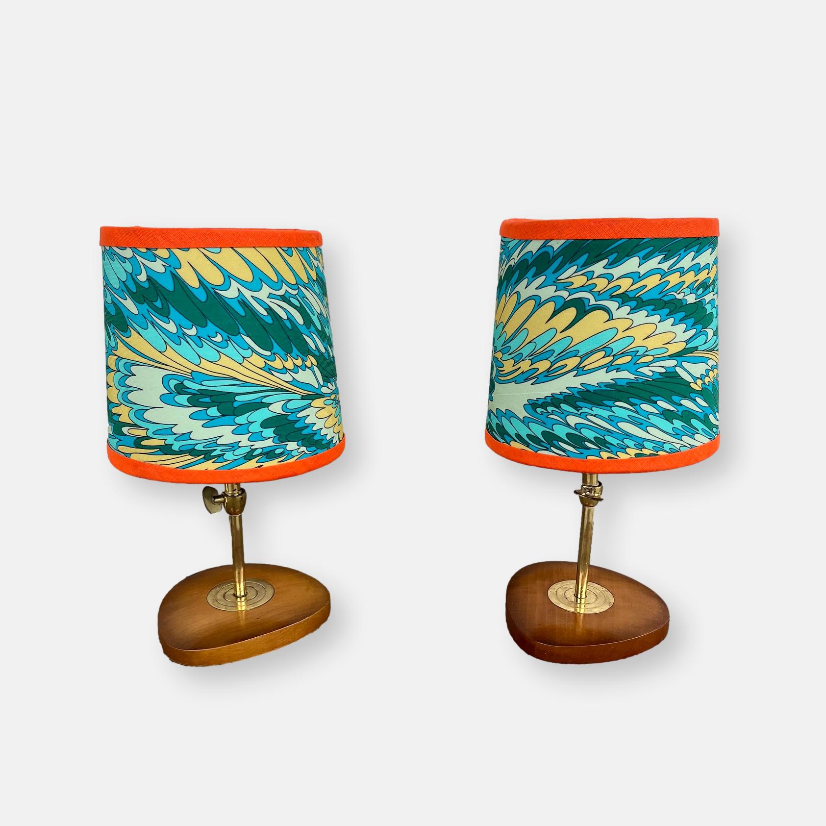 Pied de lampe en rotin avec abat-jour en textile imprimé