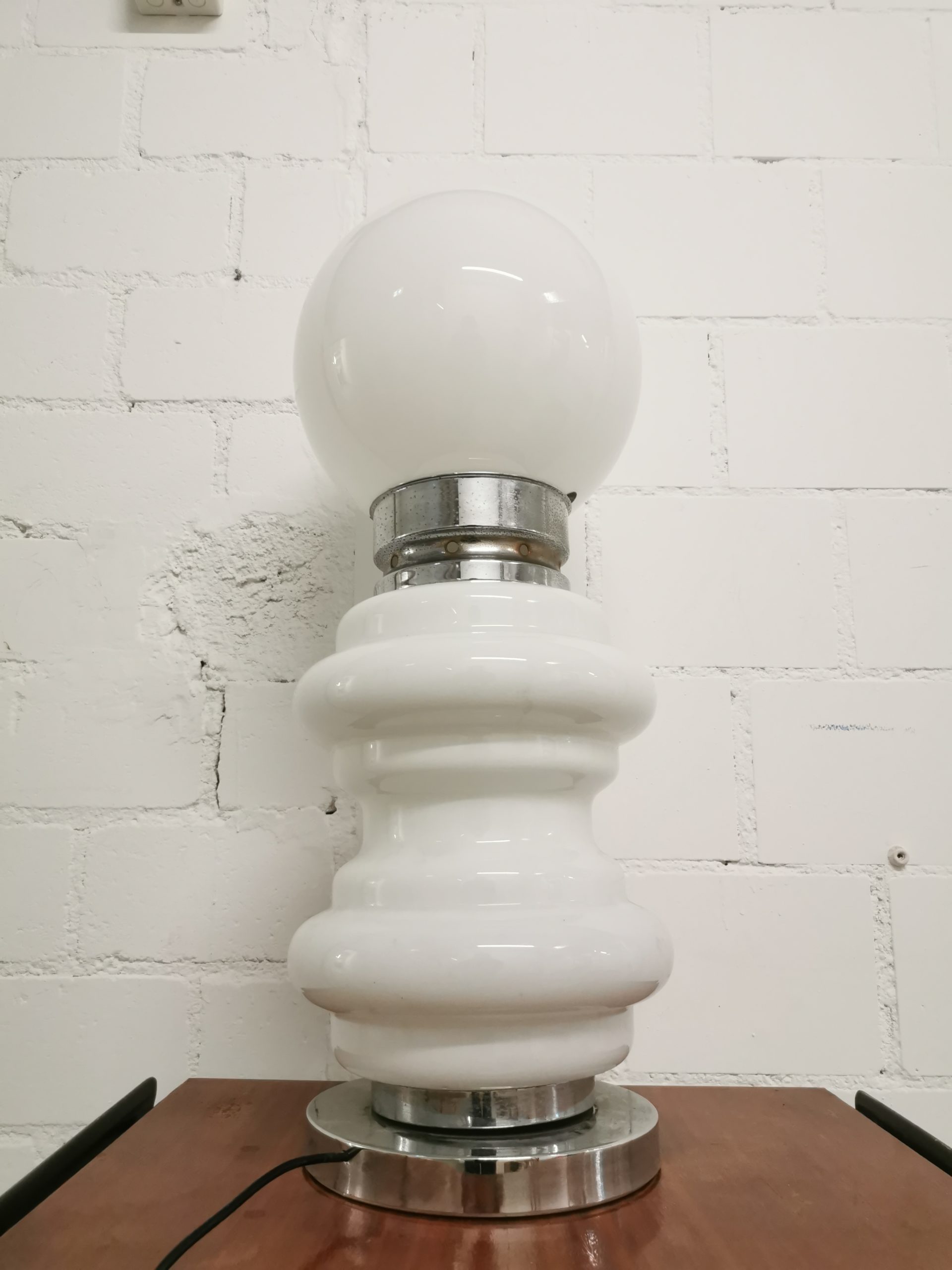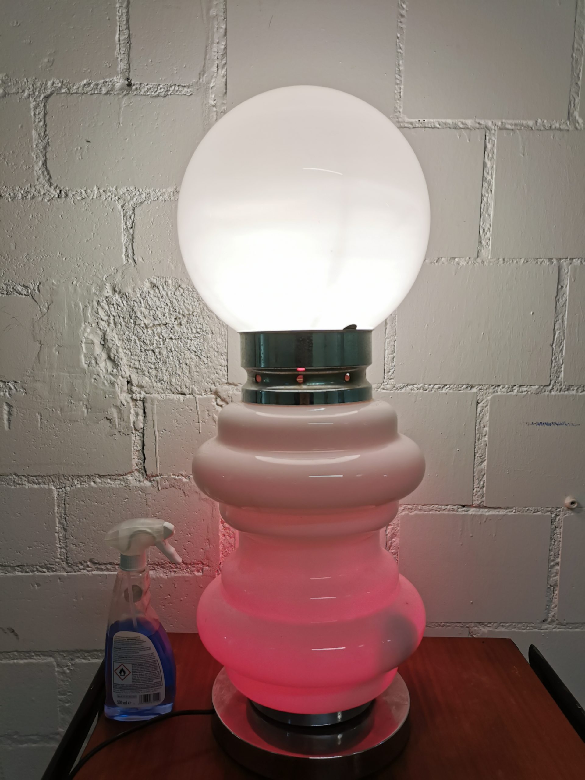 Carlo Nason für Birillo 70 Tischlampe mit Opalineglas. Doppel Beleuchtung ( inneren 2 Glühbirnen und oben) und kann separat eingeschaltet werden. In Tadellosen Zustand.