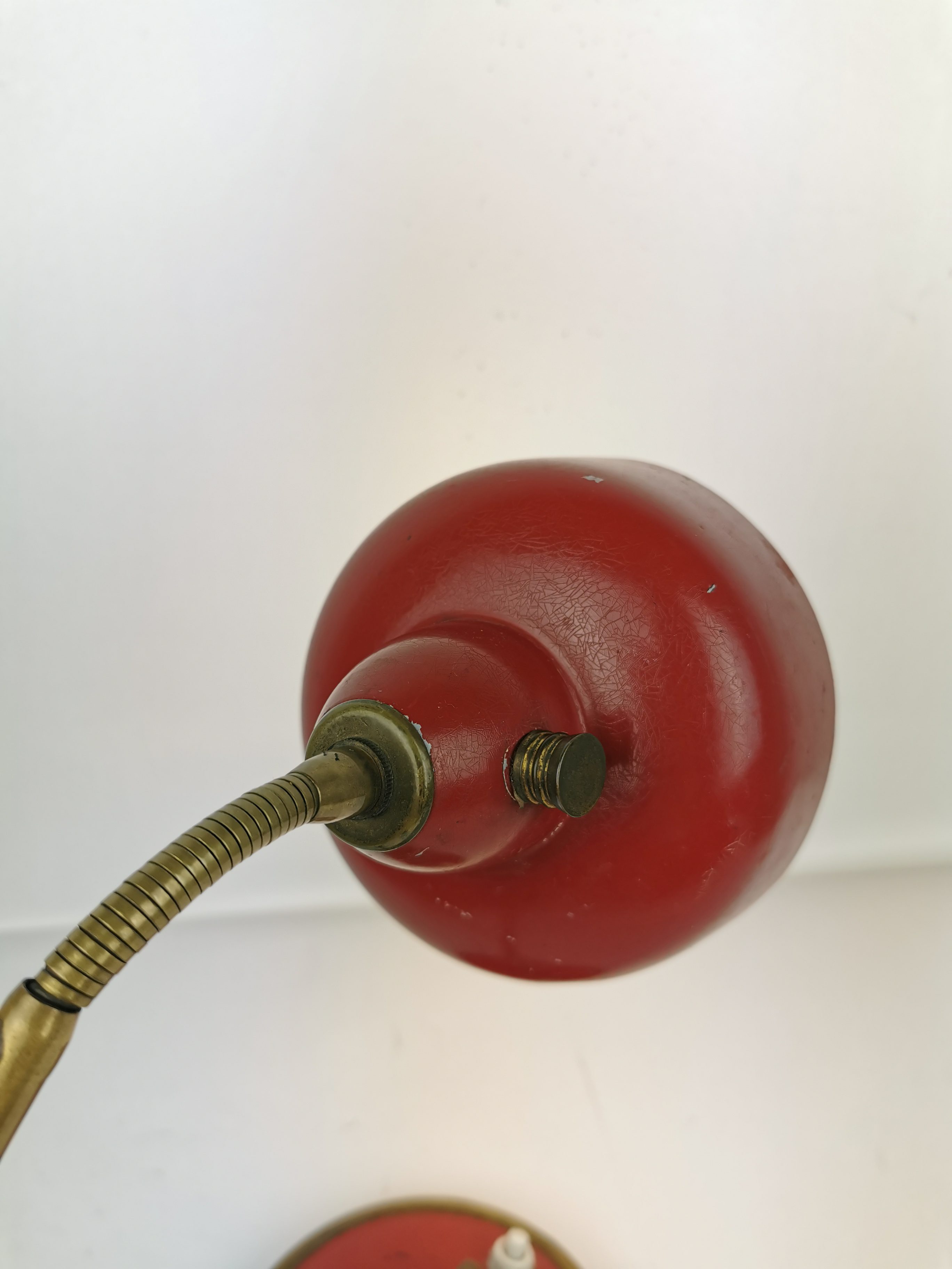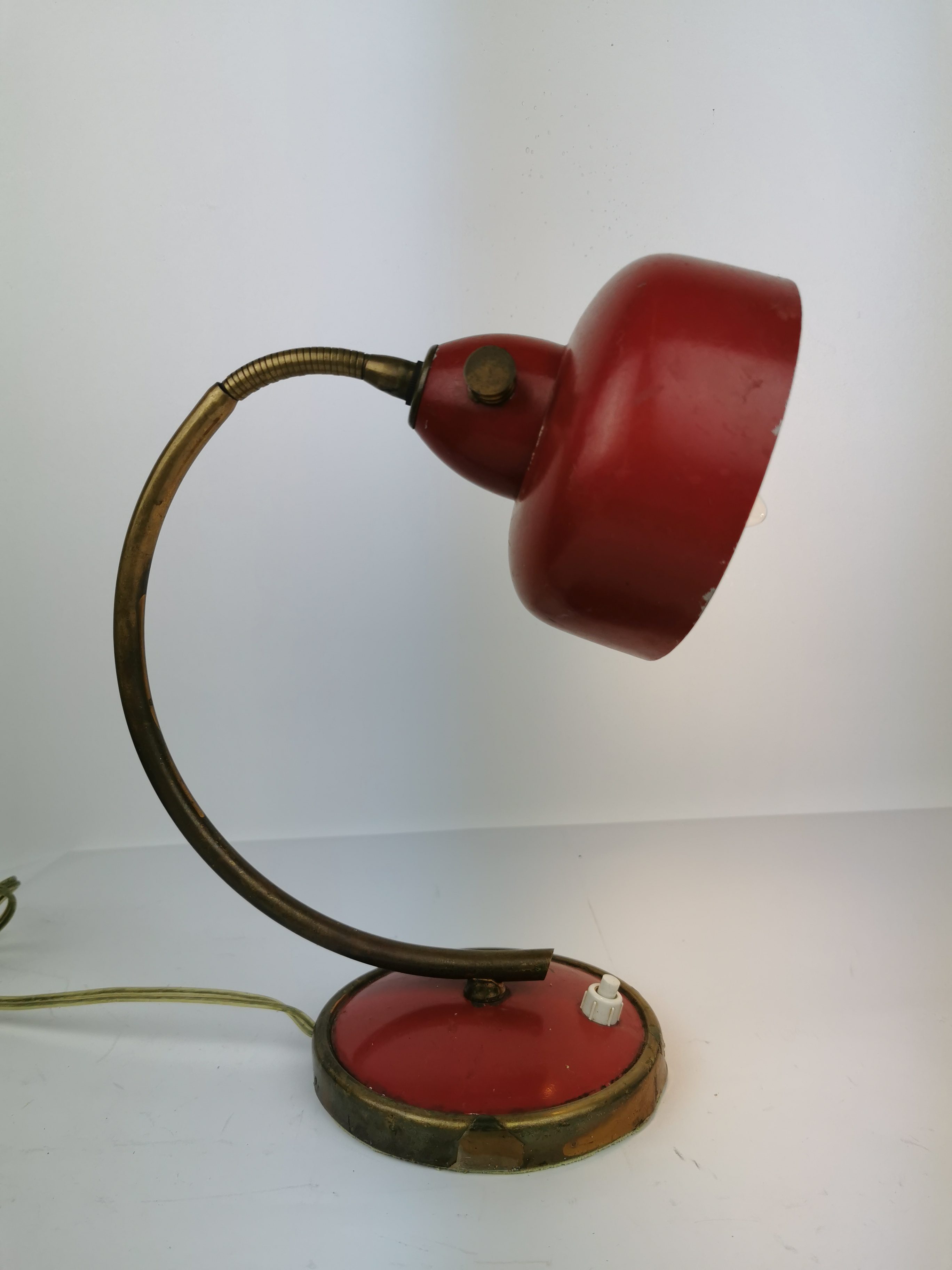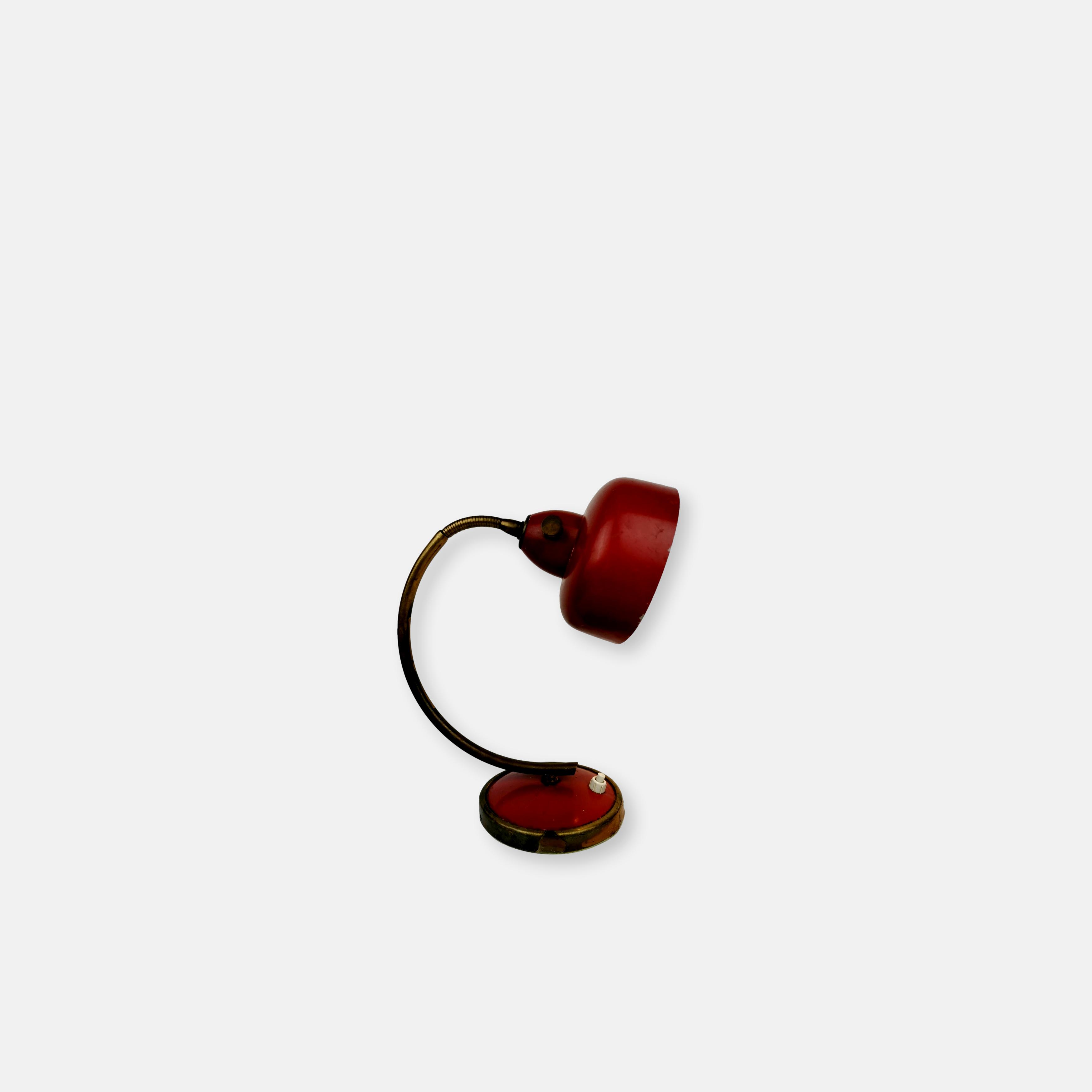 Produit venduPetite lampe de bureau vintage en laiton et métal rouge.