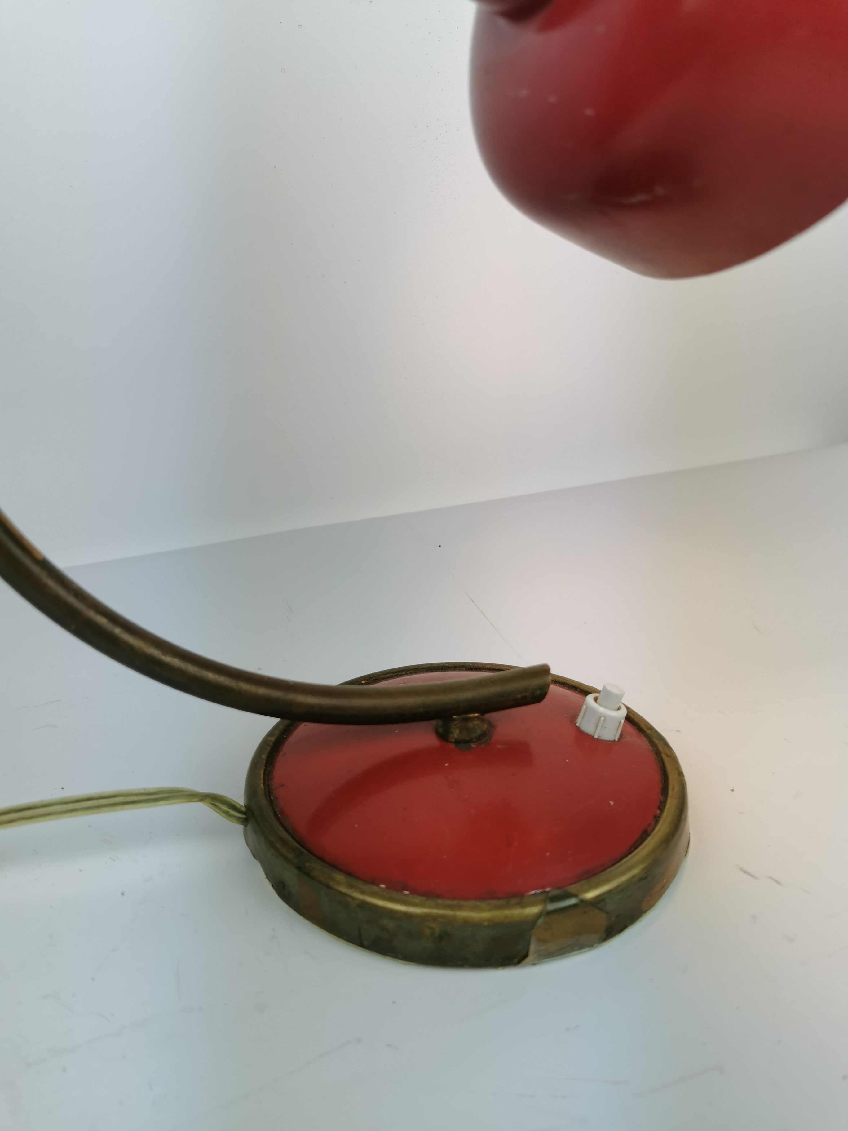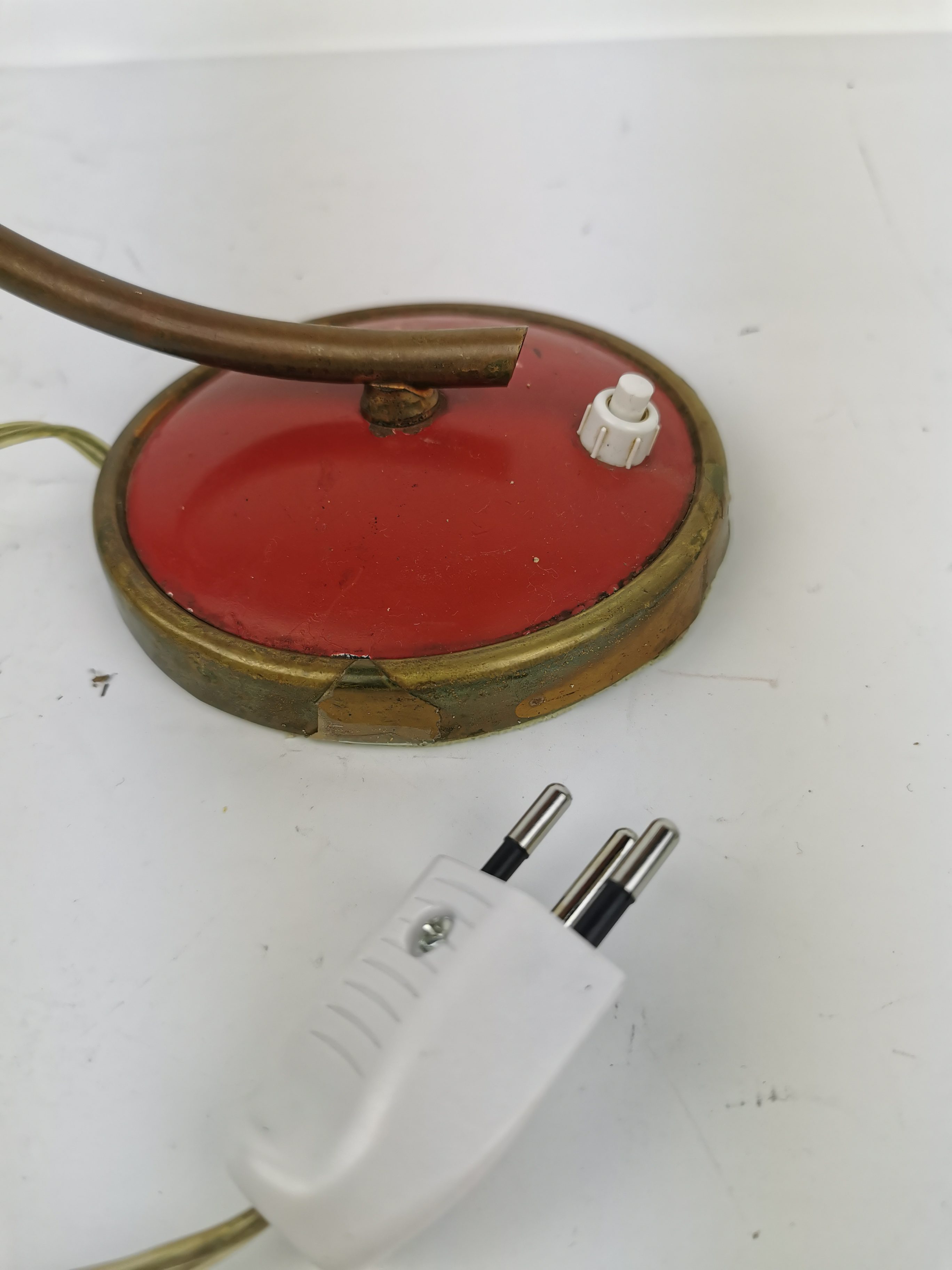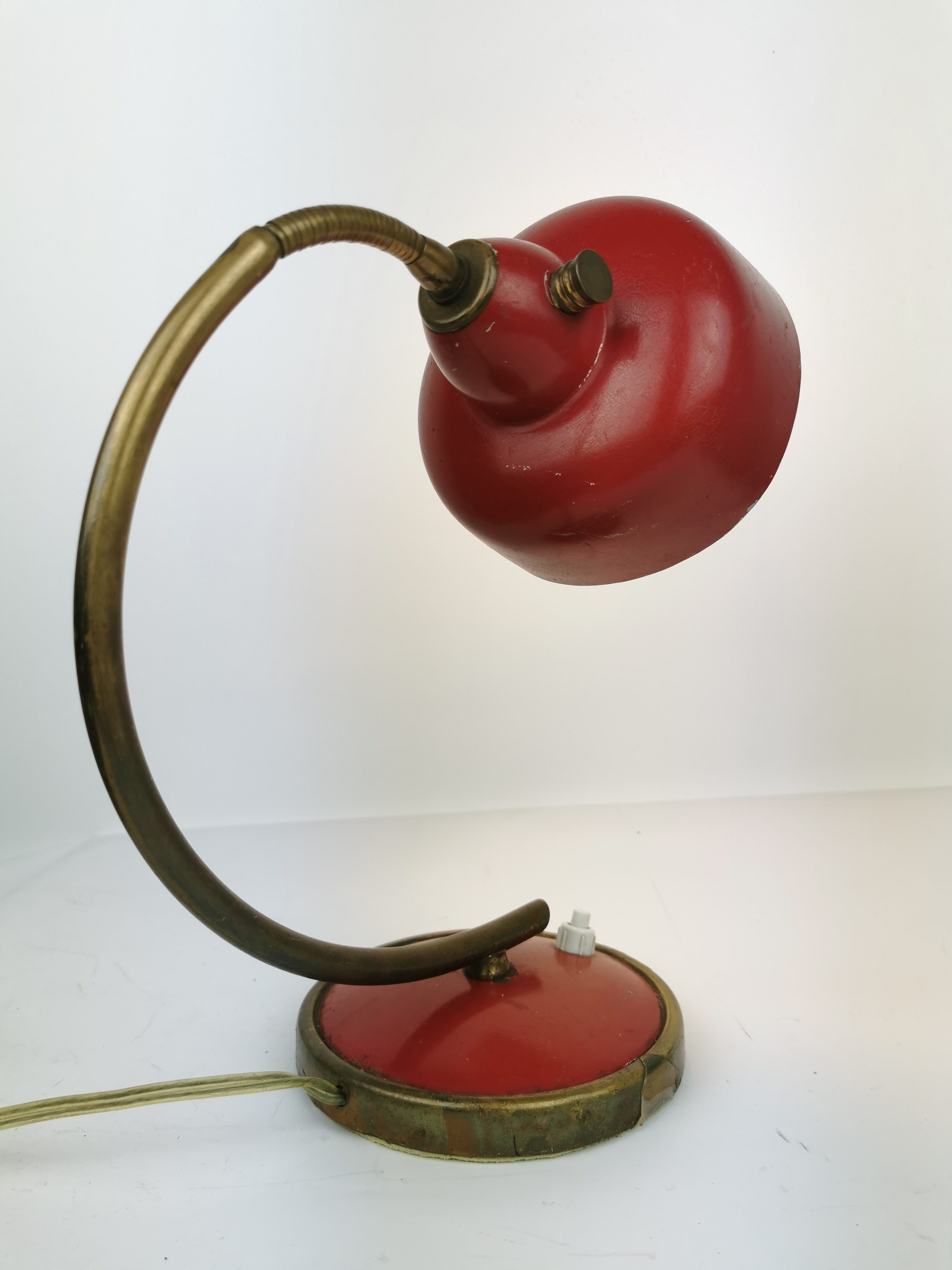 Produit venduPetite lampe de bureau vintage en laiton et métal rouge.