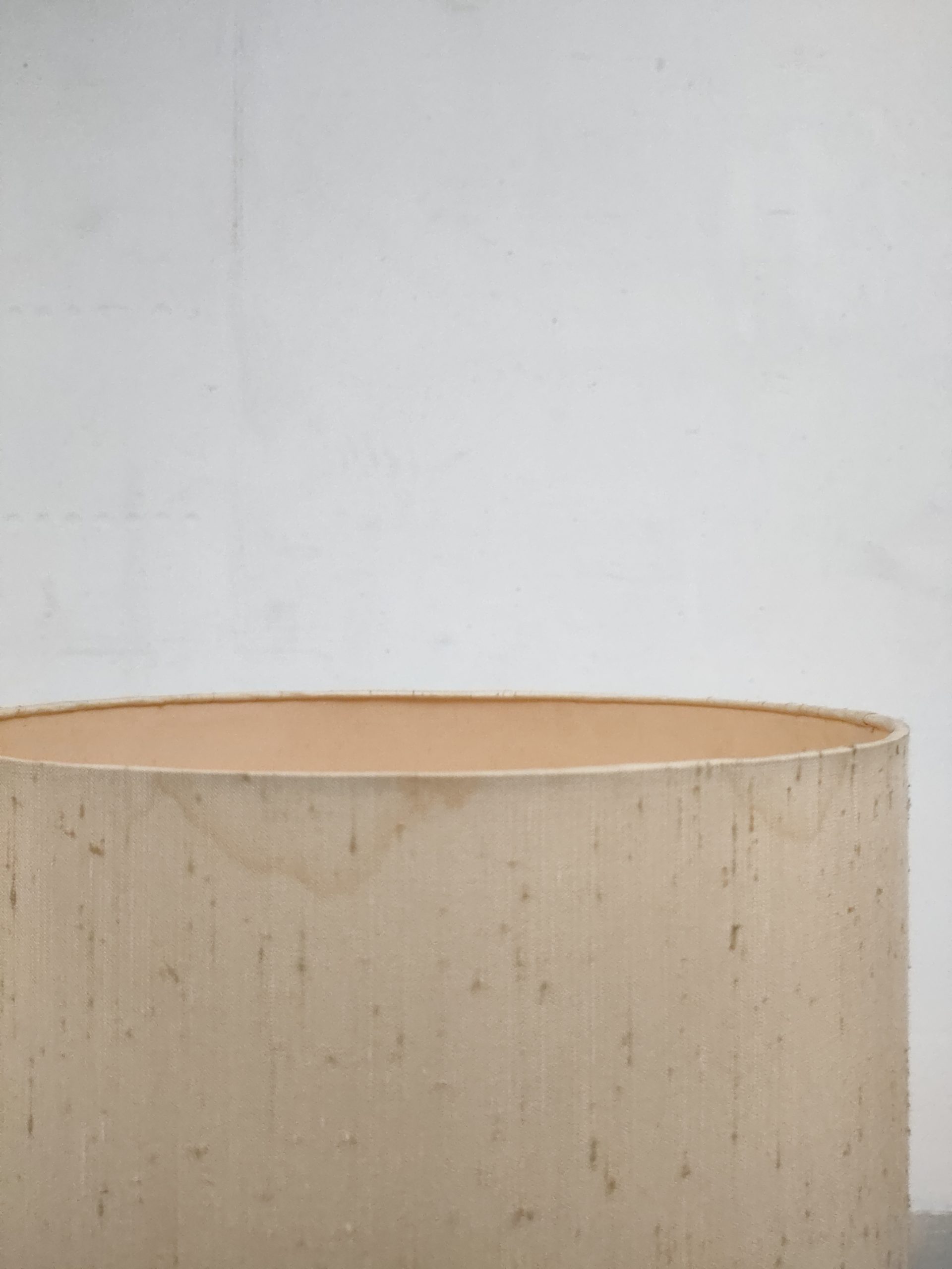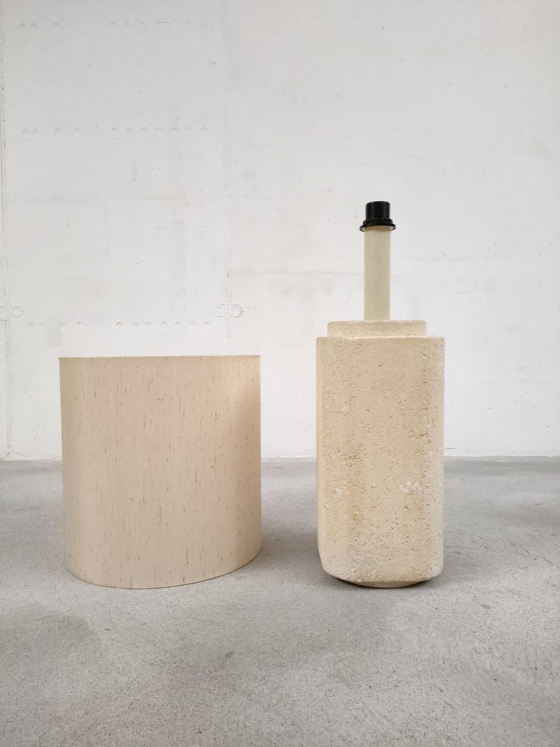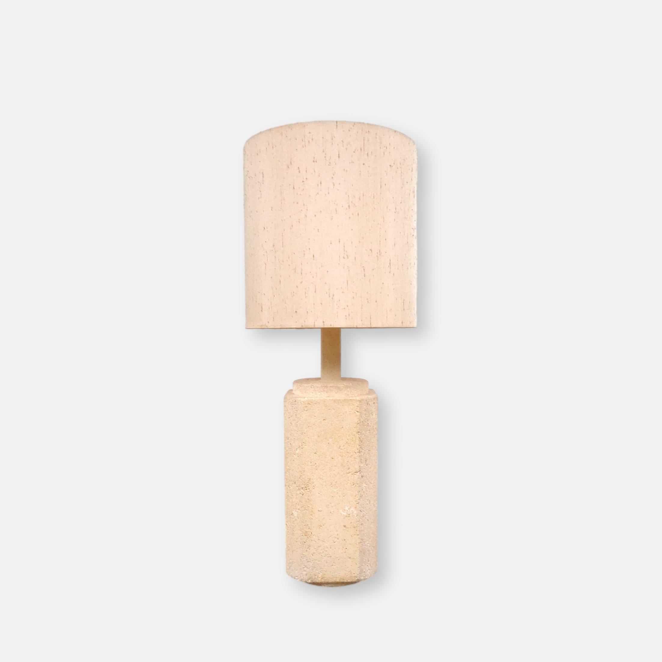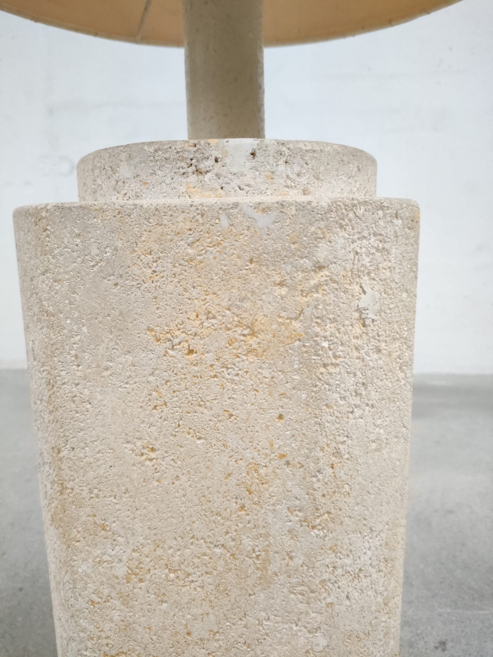 Produit venduGrande lampe de table (elle peut également être posée au sol) avec base en pierre et abat-jour en tissu. Le col de la base est en plastique imitation pierre. Une tache est présente sur l’abat-jour (voir photo). La base est très lourde, environ une vingtaine de kilo. Elle fonctionne avec des ampoules standard E27.