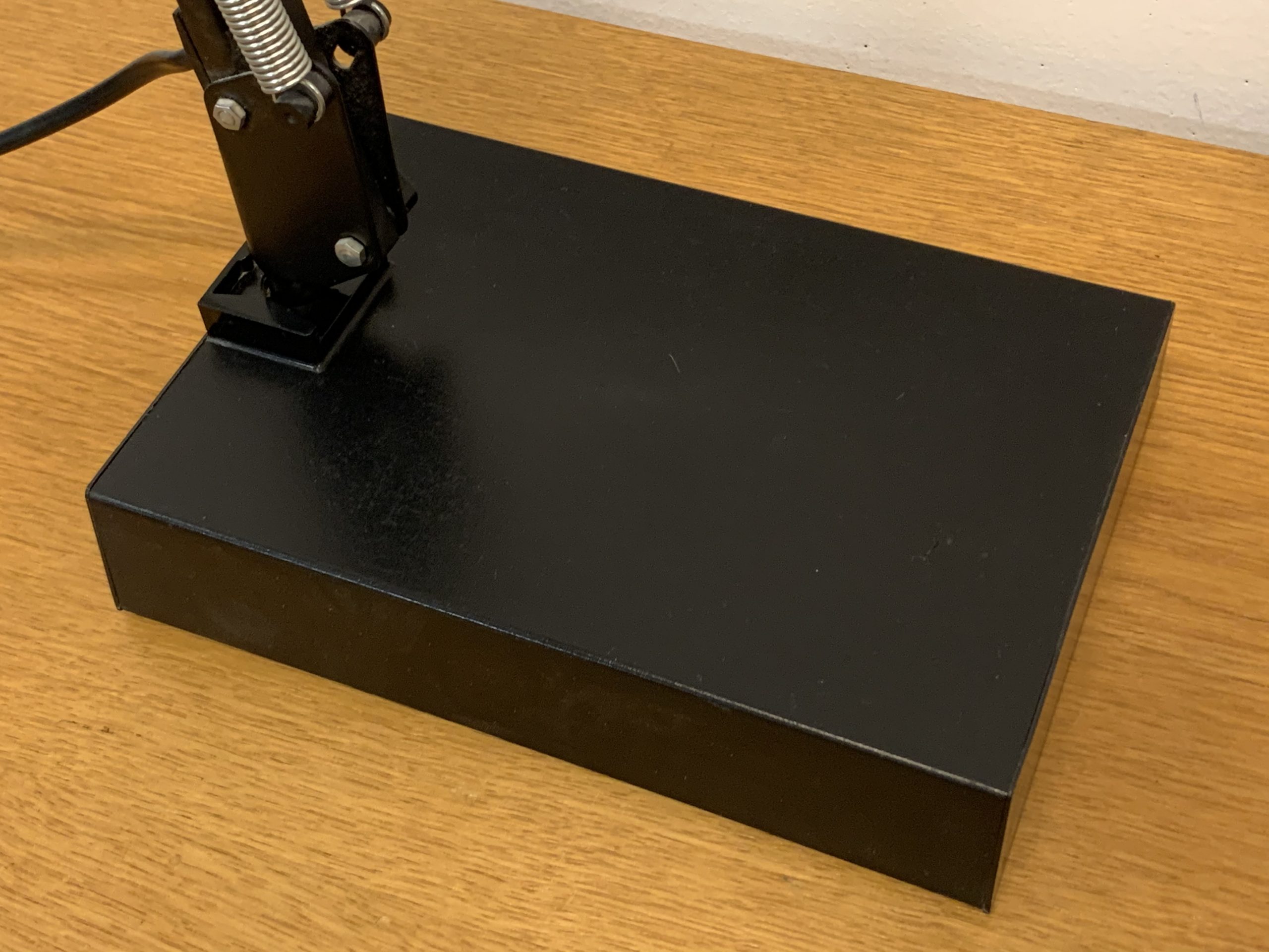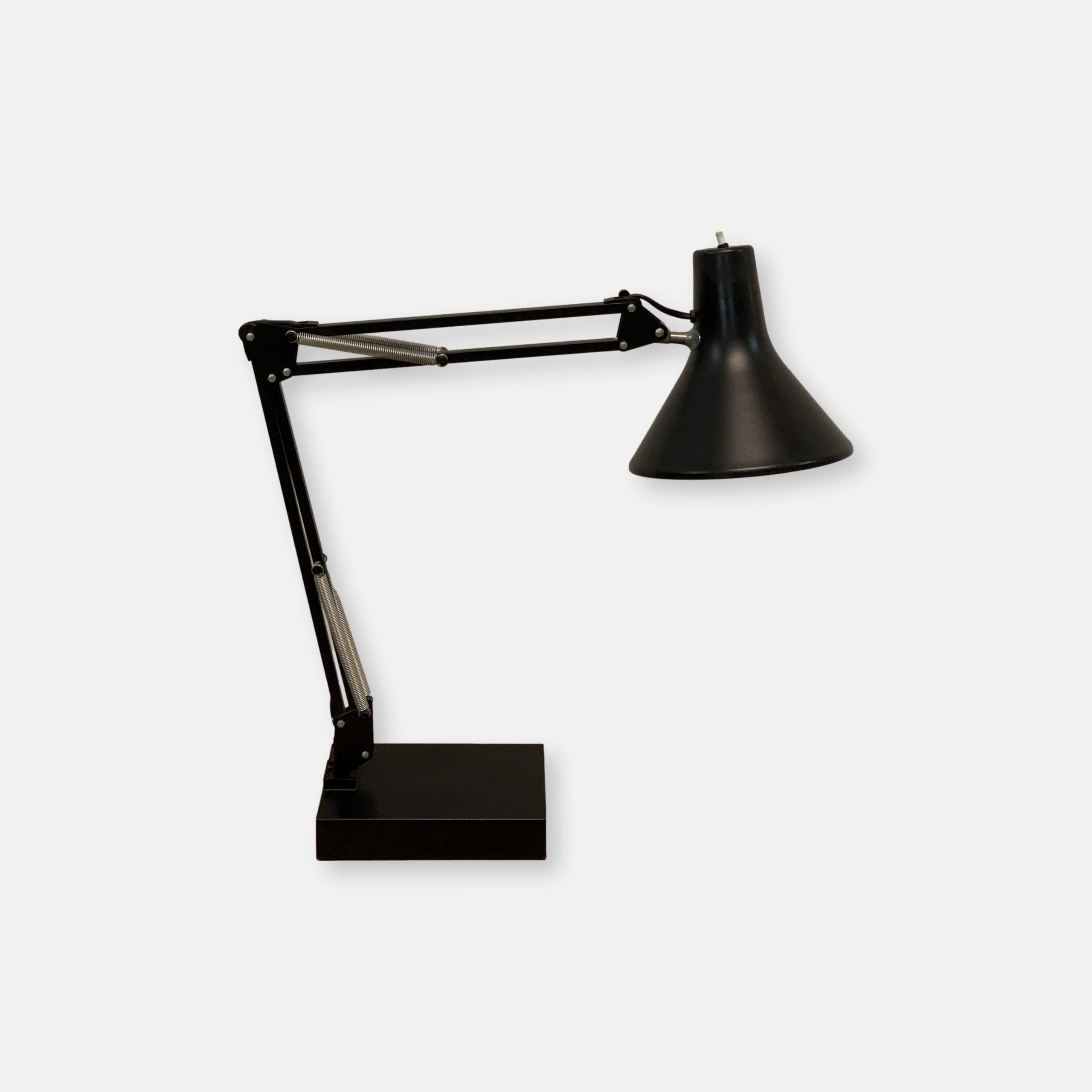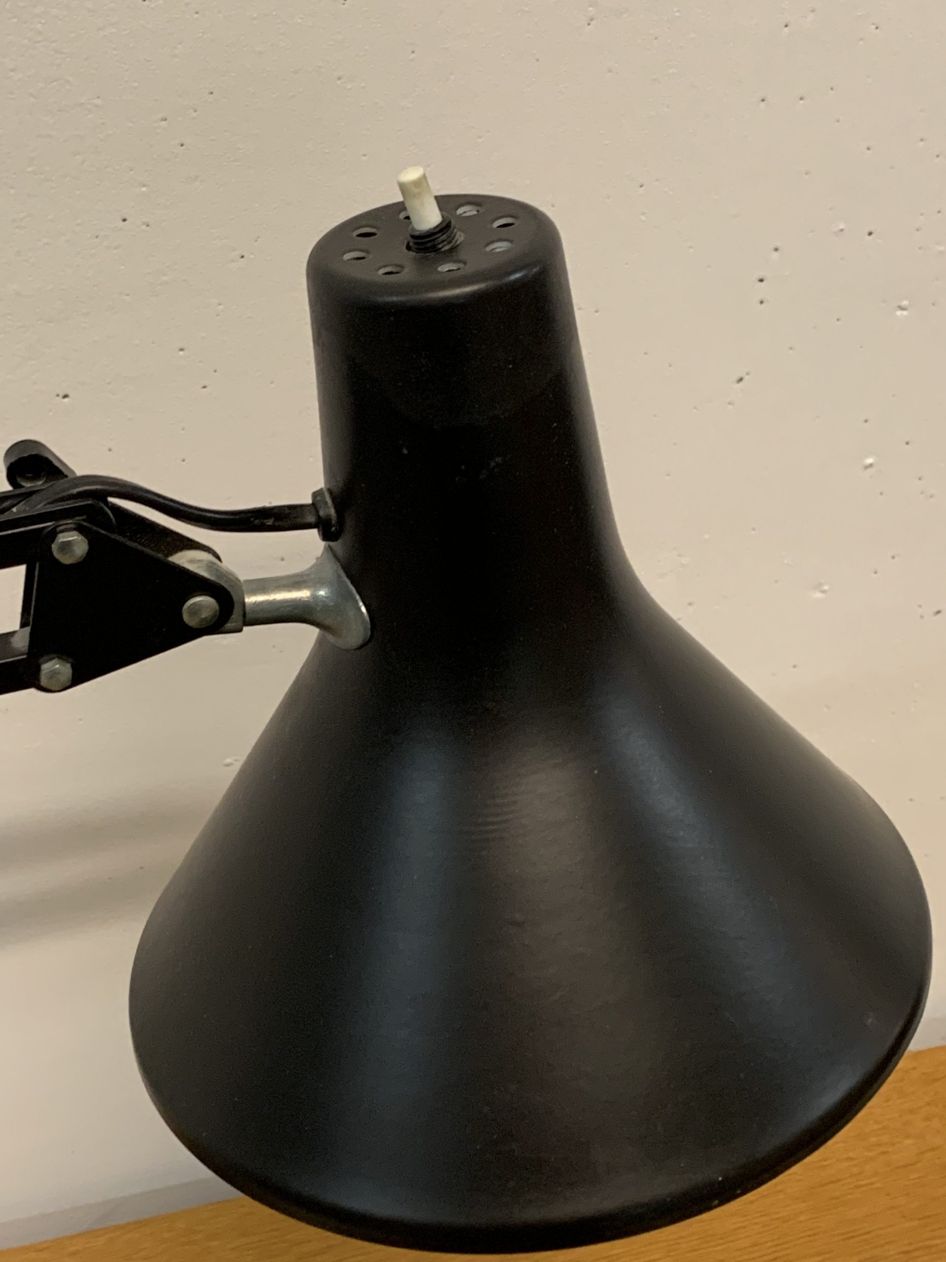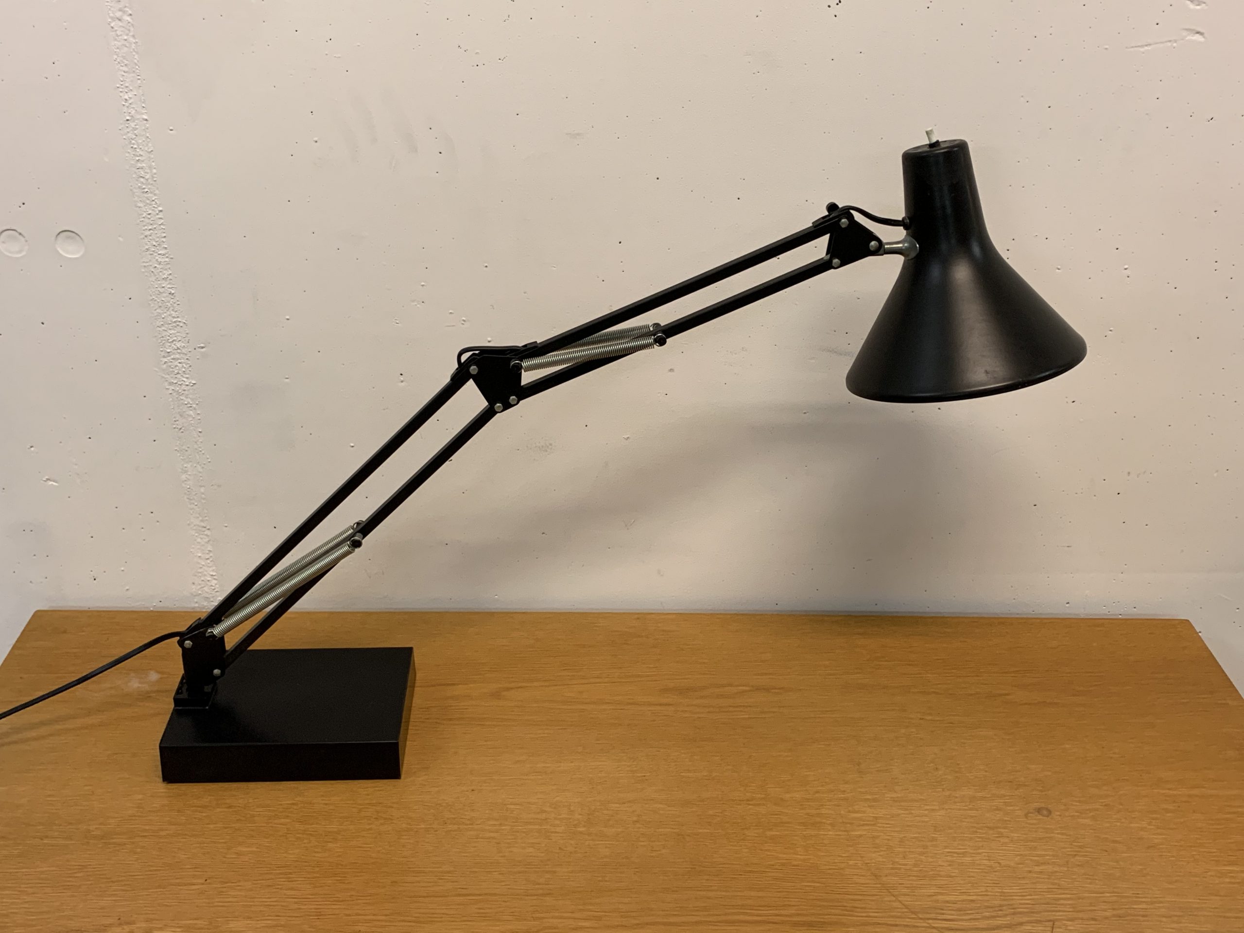Produit venduLampe d’architecte vintage montée sur son pied. Le mécanisme d’inclinaison de la lampe fonctionne très bien. L’état général est bon: les seuls défauts visibles sont une petite bosse sur le chapeau de la lampe ainsi qu’une cassure minuscule sur le pied en plastique. Le bouton pour allumer la lampe est un petit peu tordu. Convient pour des ampoules standards E27 (non fournie).