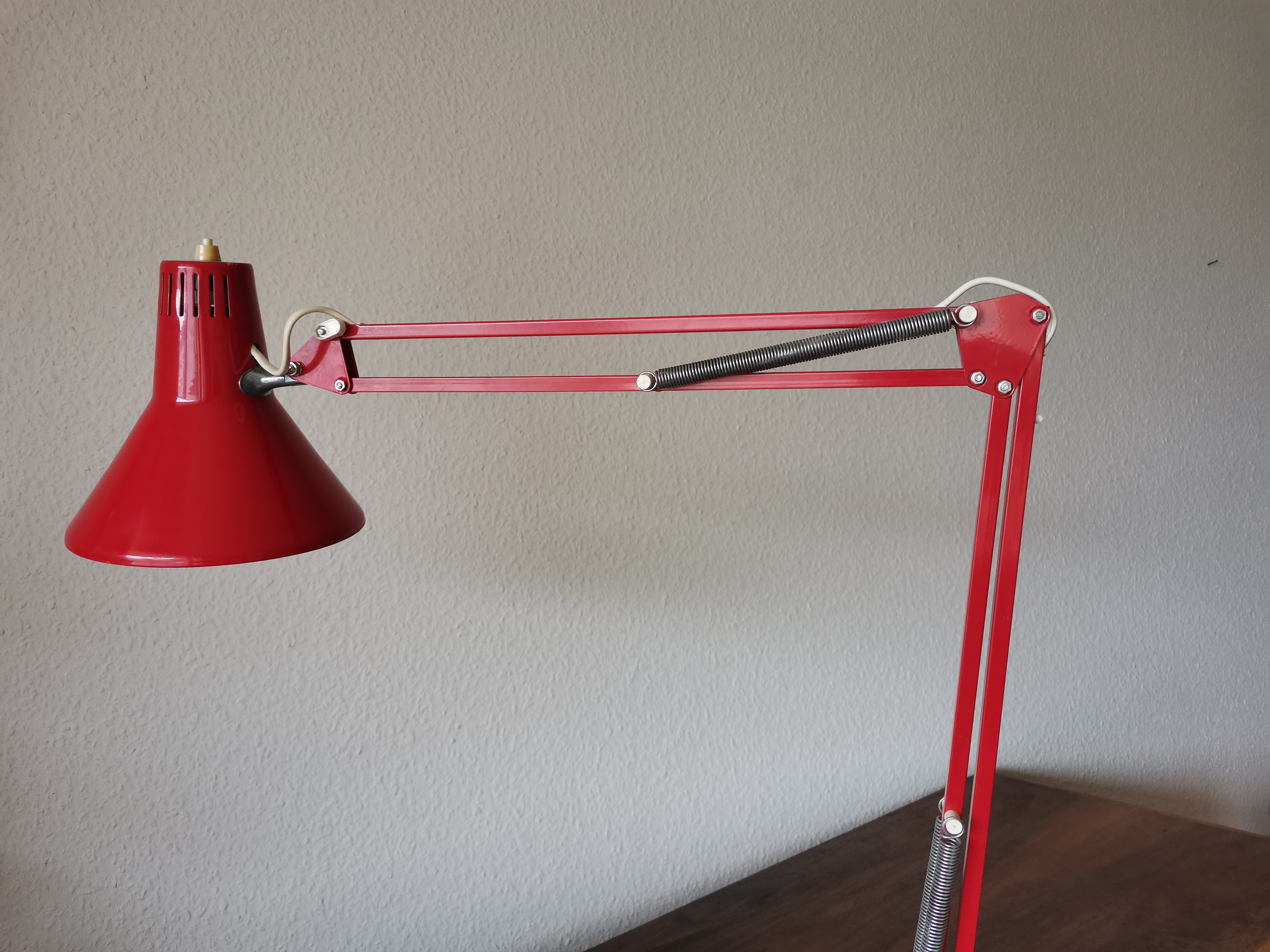 Produit venduLampe d’architecte rouge, vintage. Bon état.