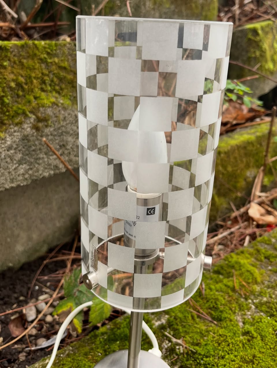 Lampe de chevet en métal et verre à damier