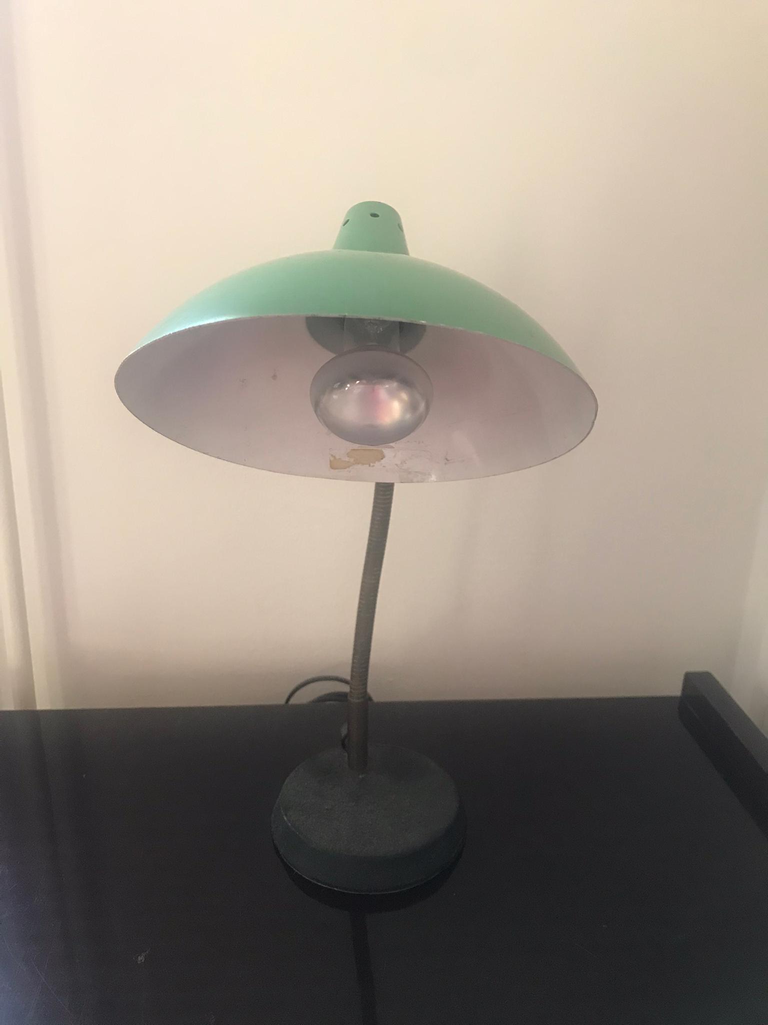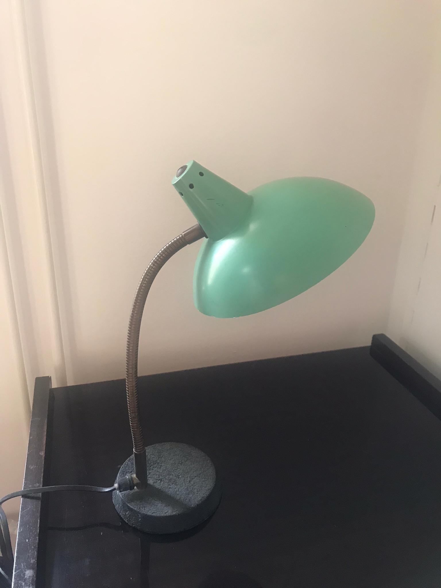 Produit venduLampe de table des années 60 avec abat-jour en métal vert.