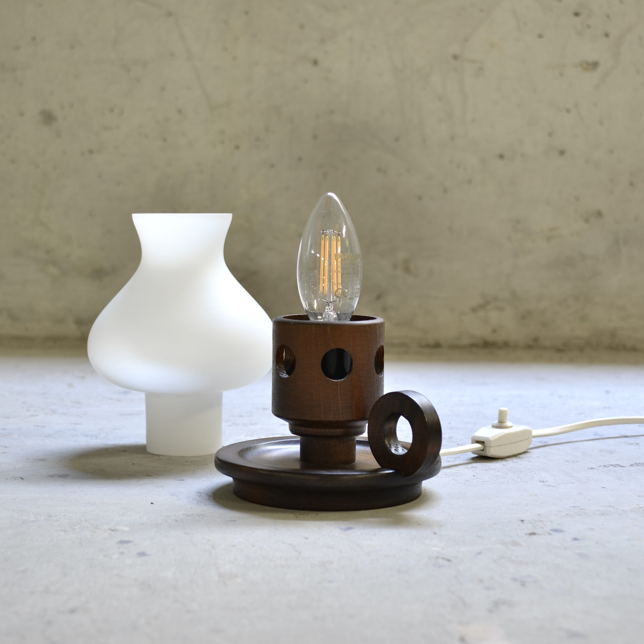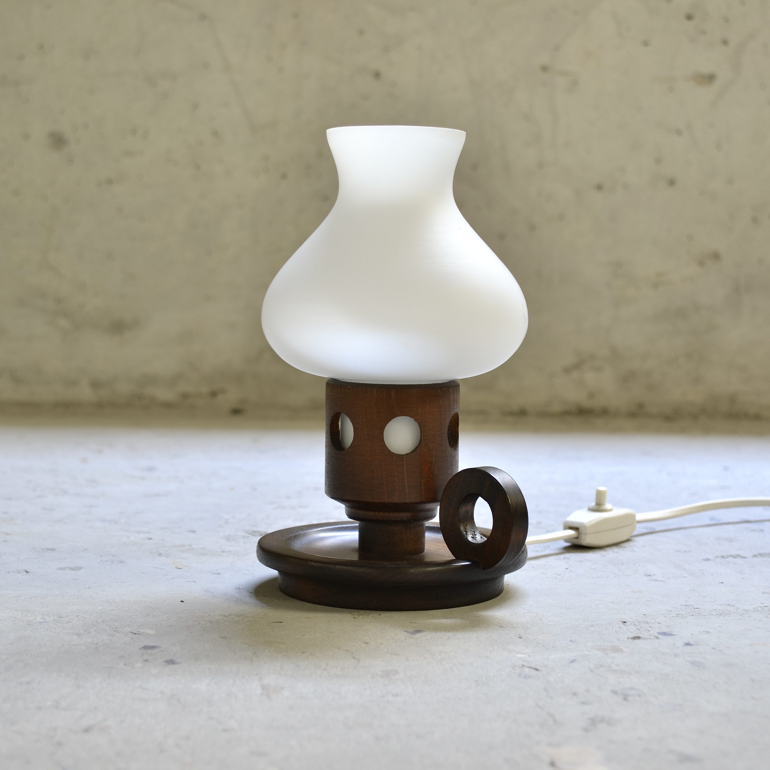 Lampe de table en pin et verre opaline, Suède, 1970’s