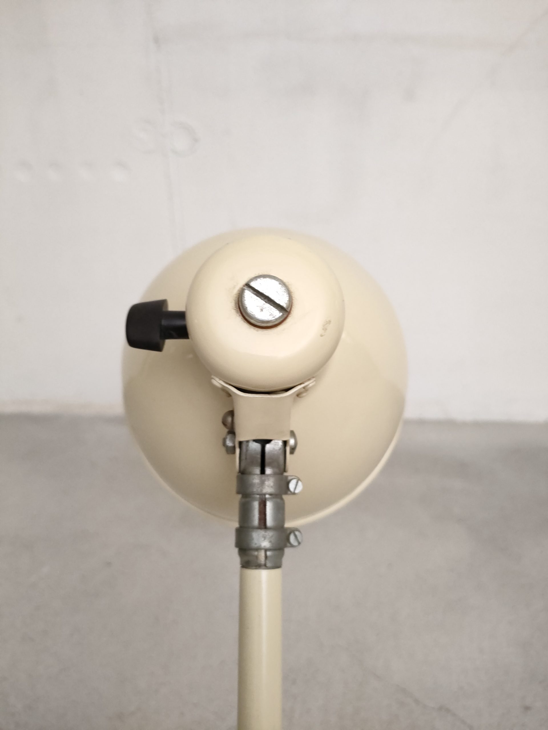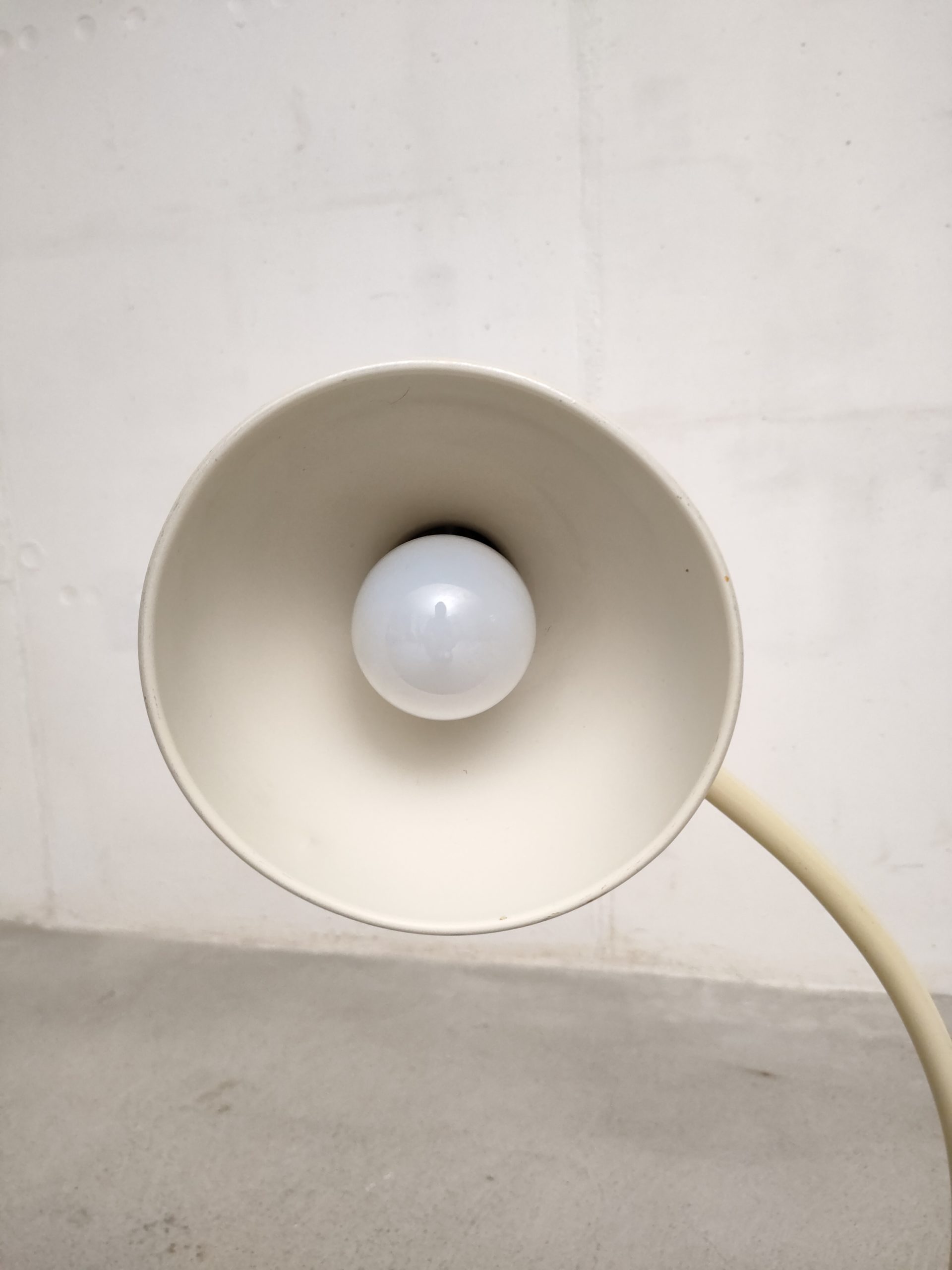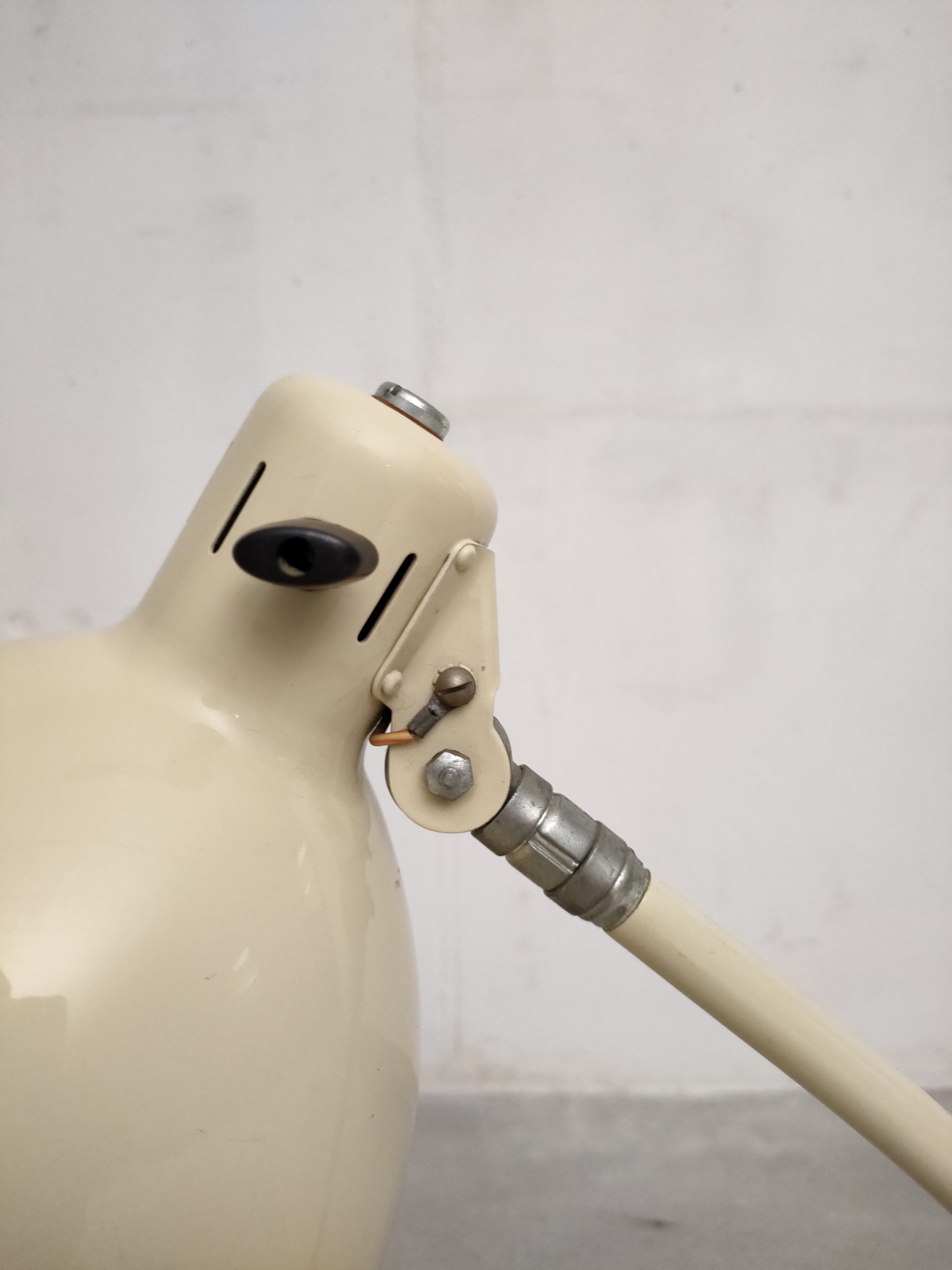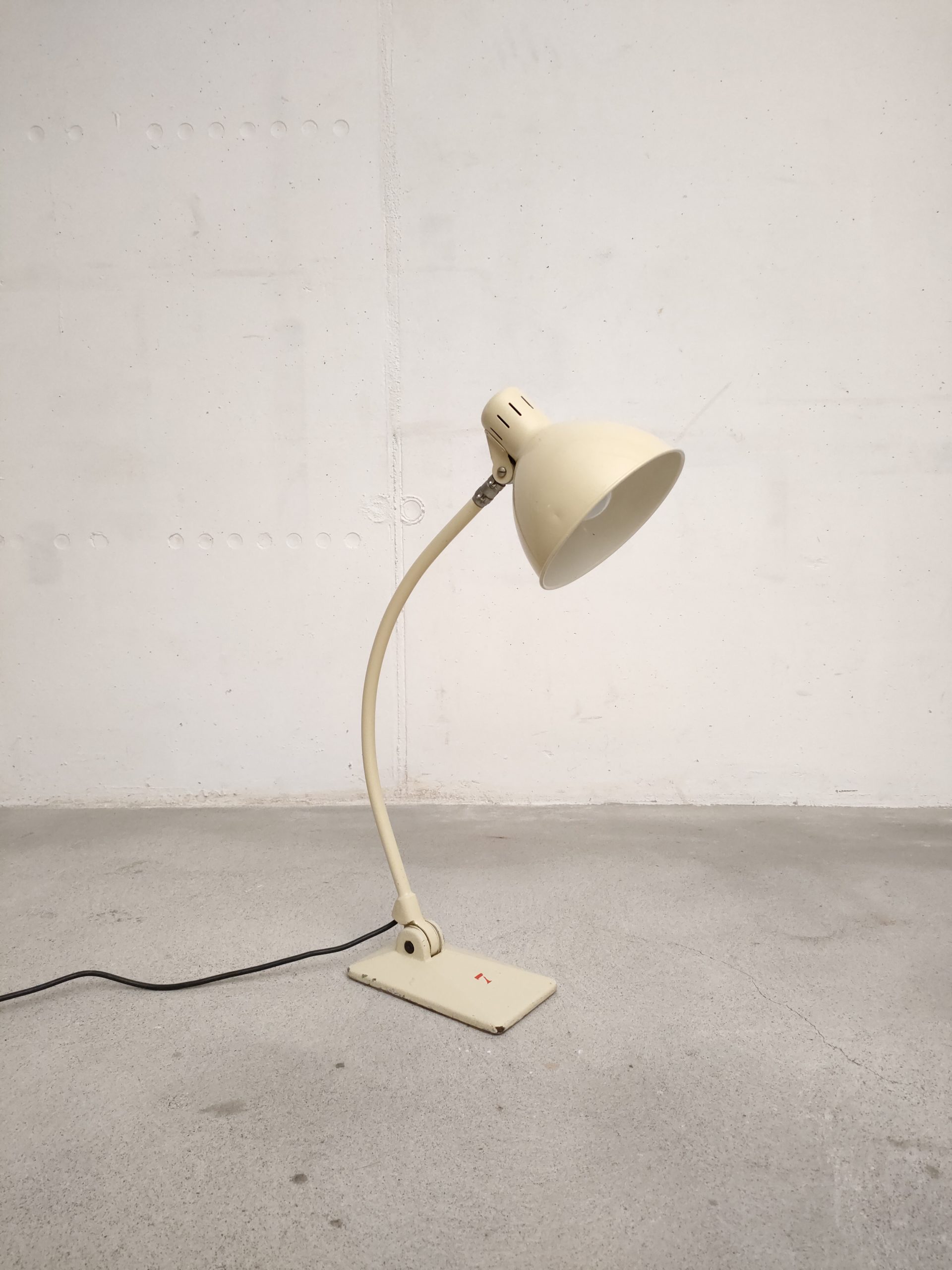 Produit venduLampe de table vintage industrielle en métal et socle en fonte. L’abat-jour peut être orienté dans toutes les directions et le bras peut aussi être orienté en avant et an arrière. L’interrupteur est positionnée sur l’abat-jour. Quelques traces d’usure mais parfaitement fonctionnelle.