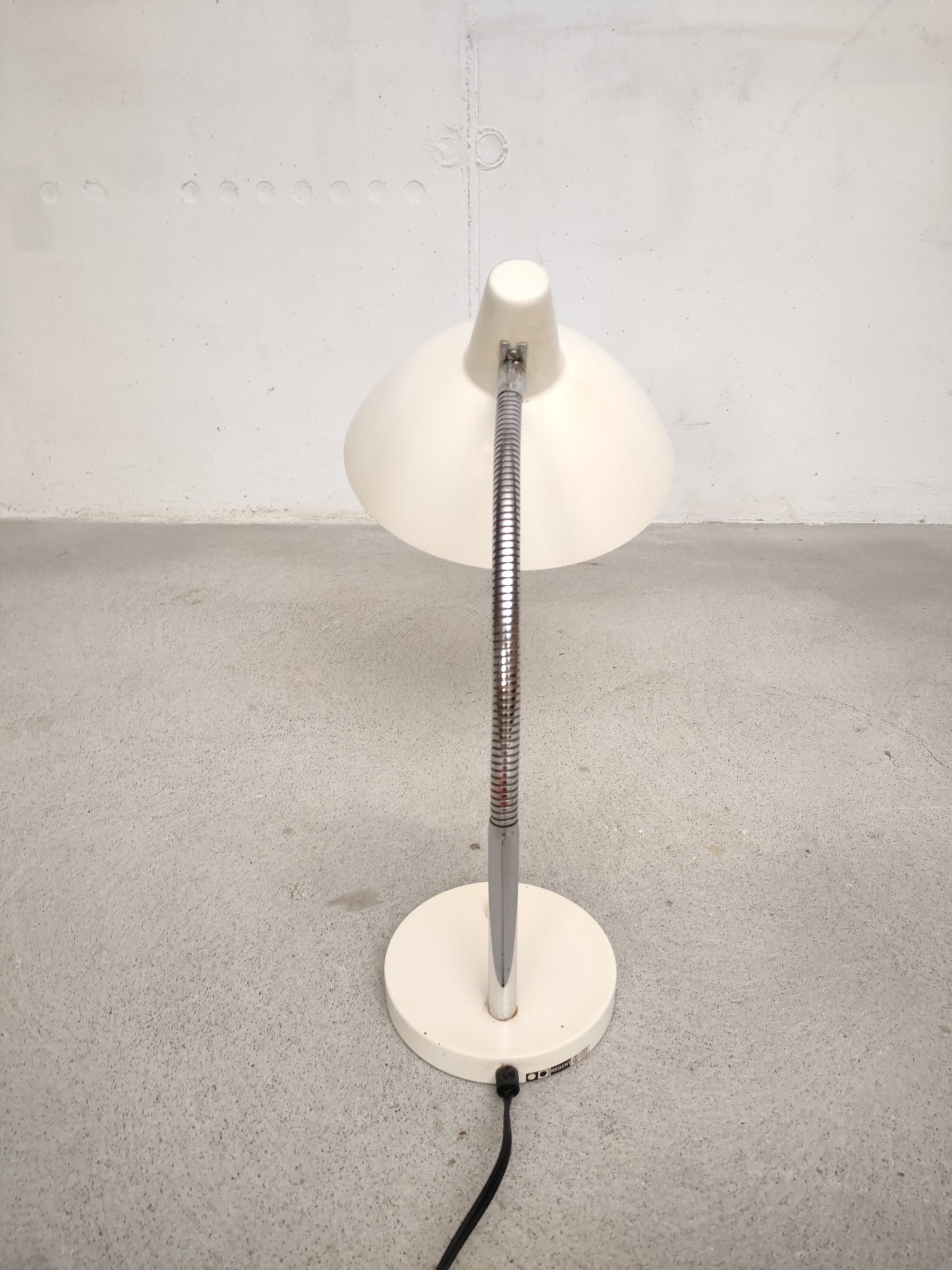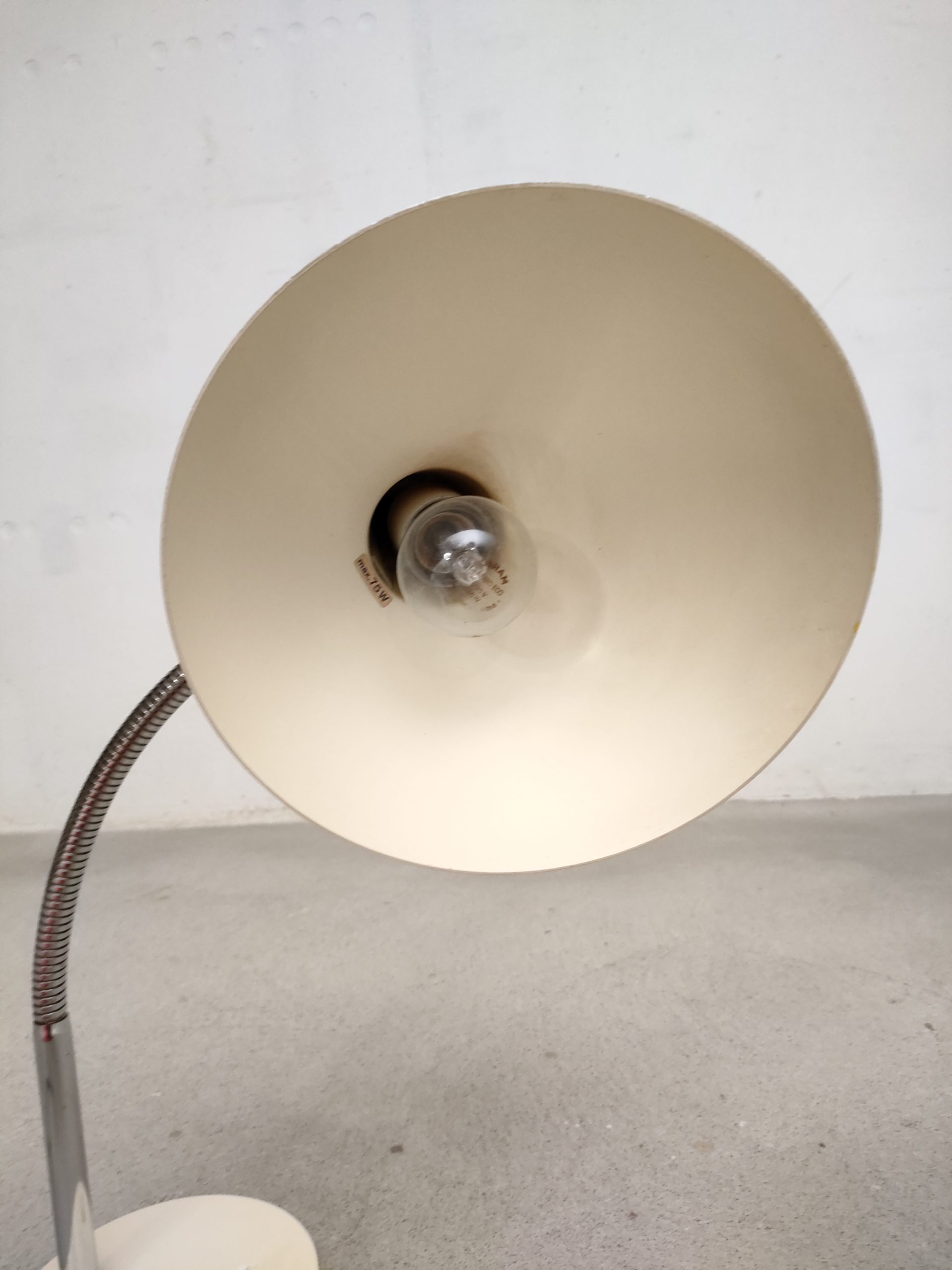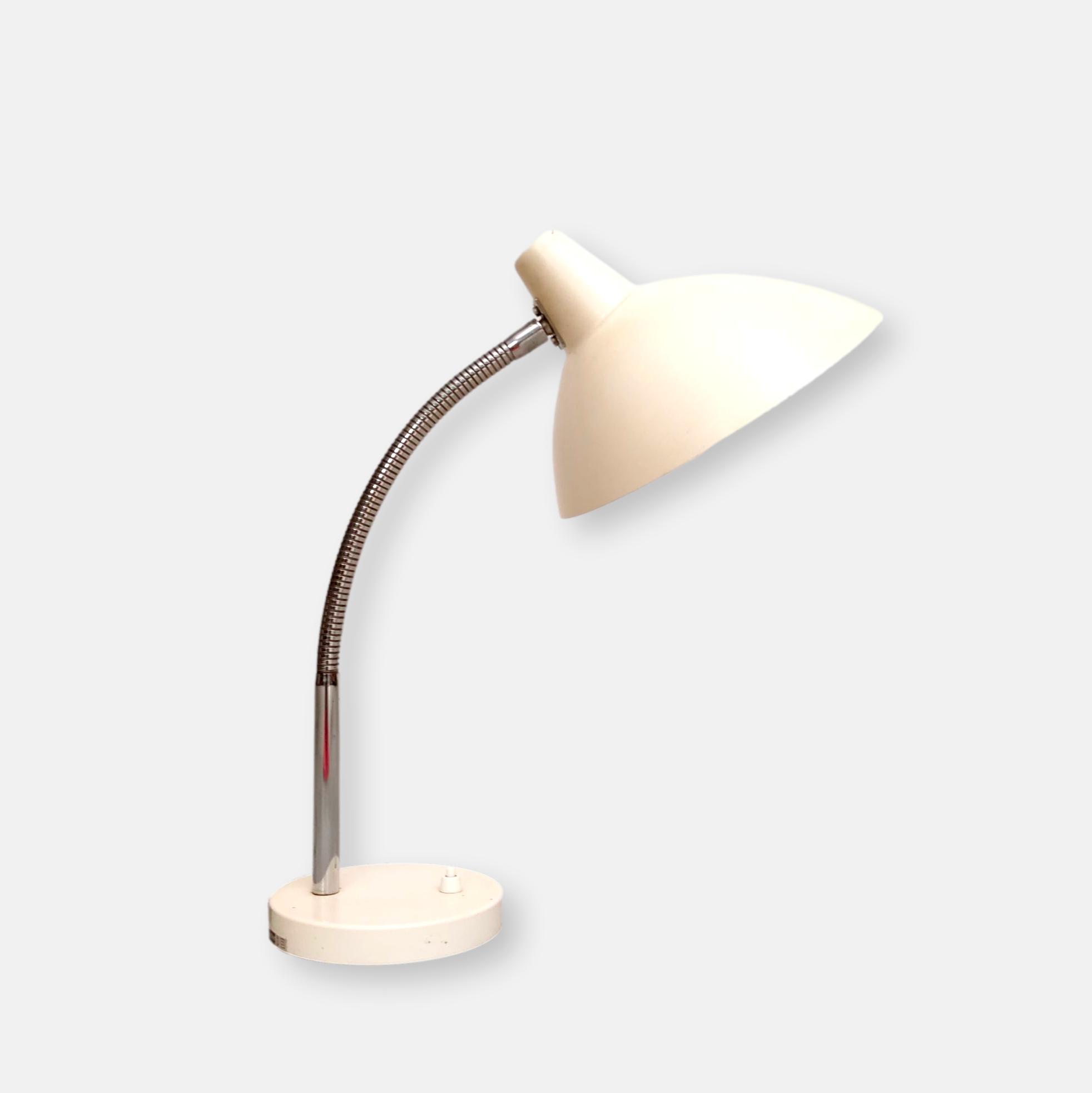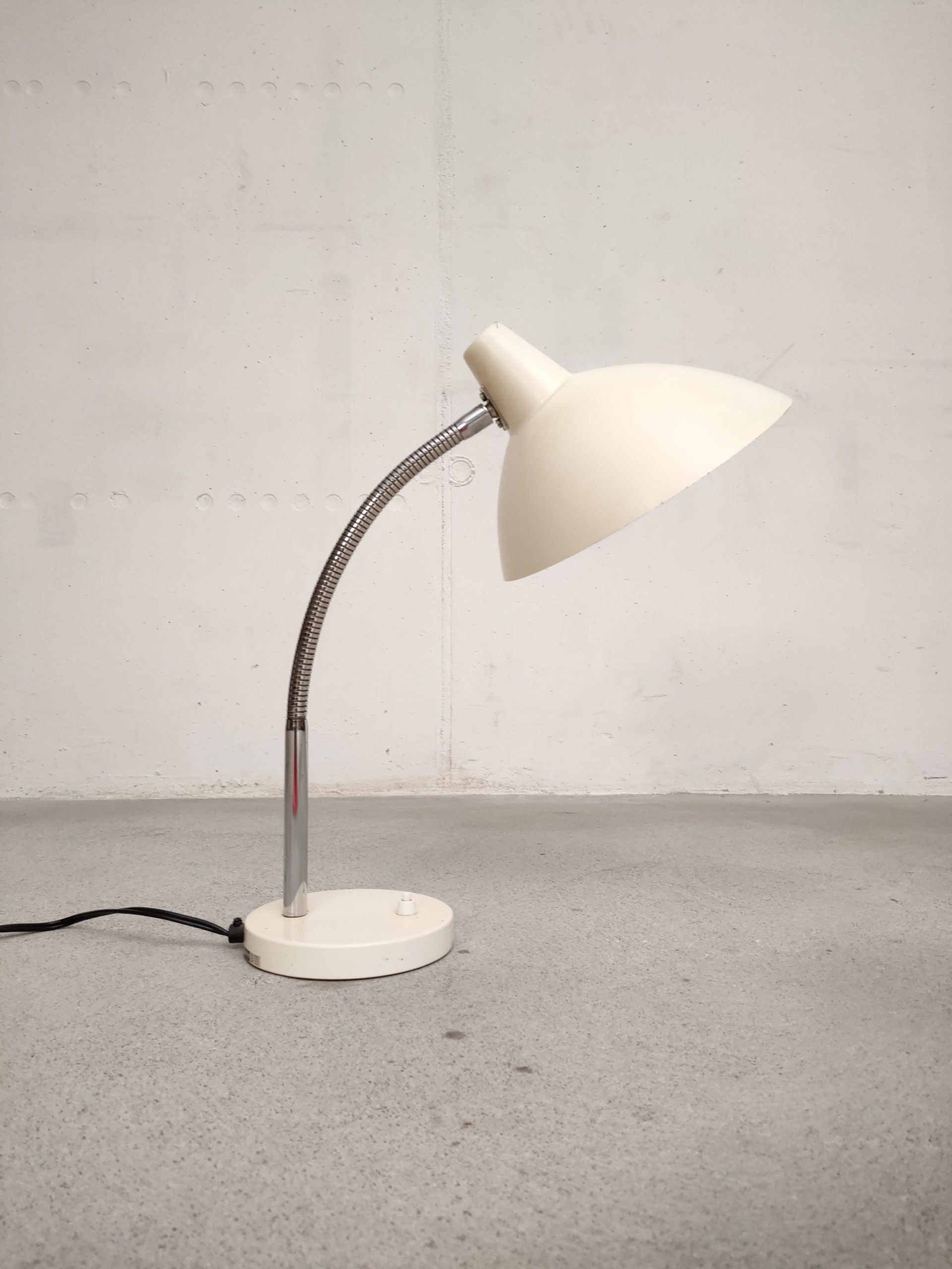 Produit venduLampe de table Regent avec socle et abat-jour en métal blanc et tige en flexible en bon état. Des légères traces d’usure sont présentes (voir photos). La lampe fonctionne avec des ampoules standard.