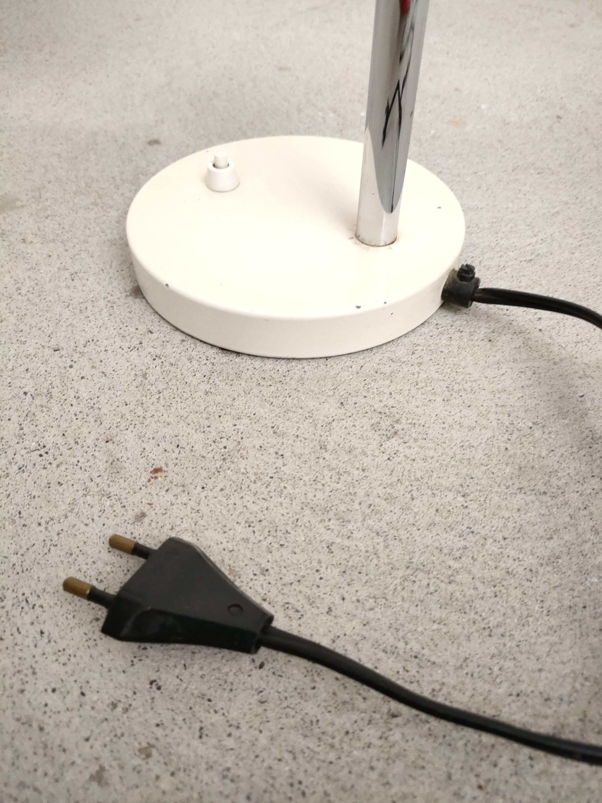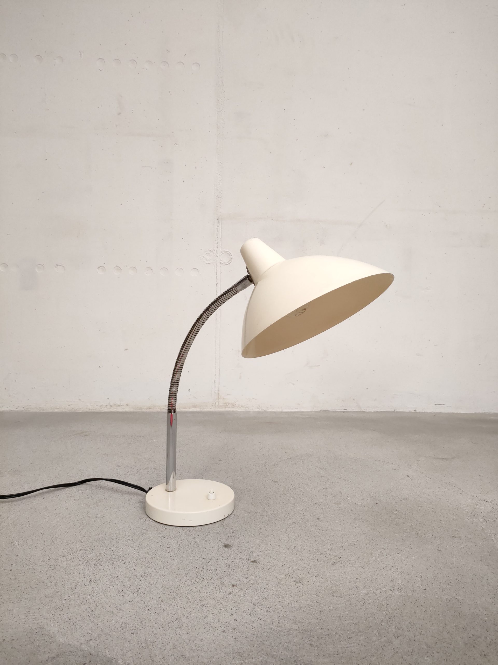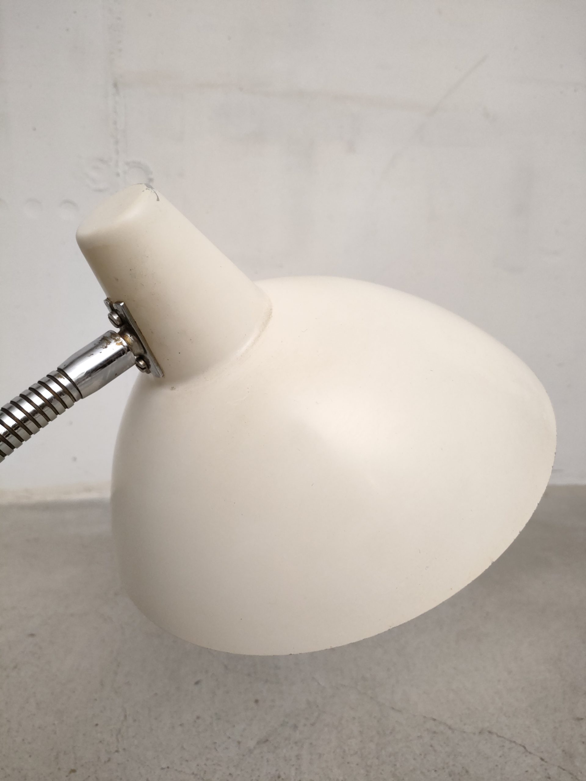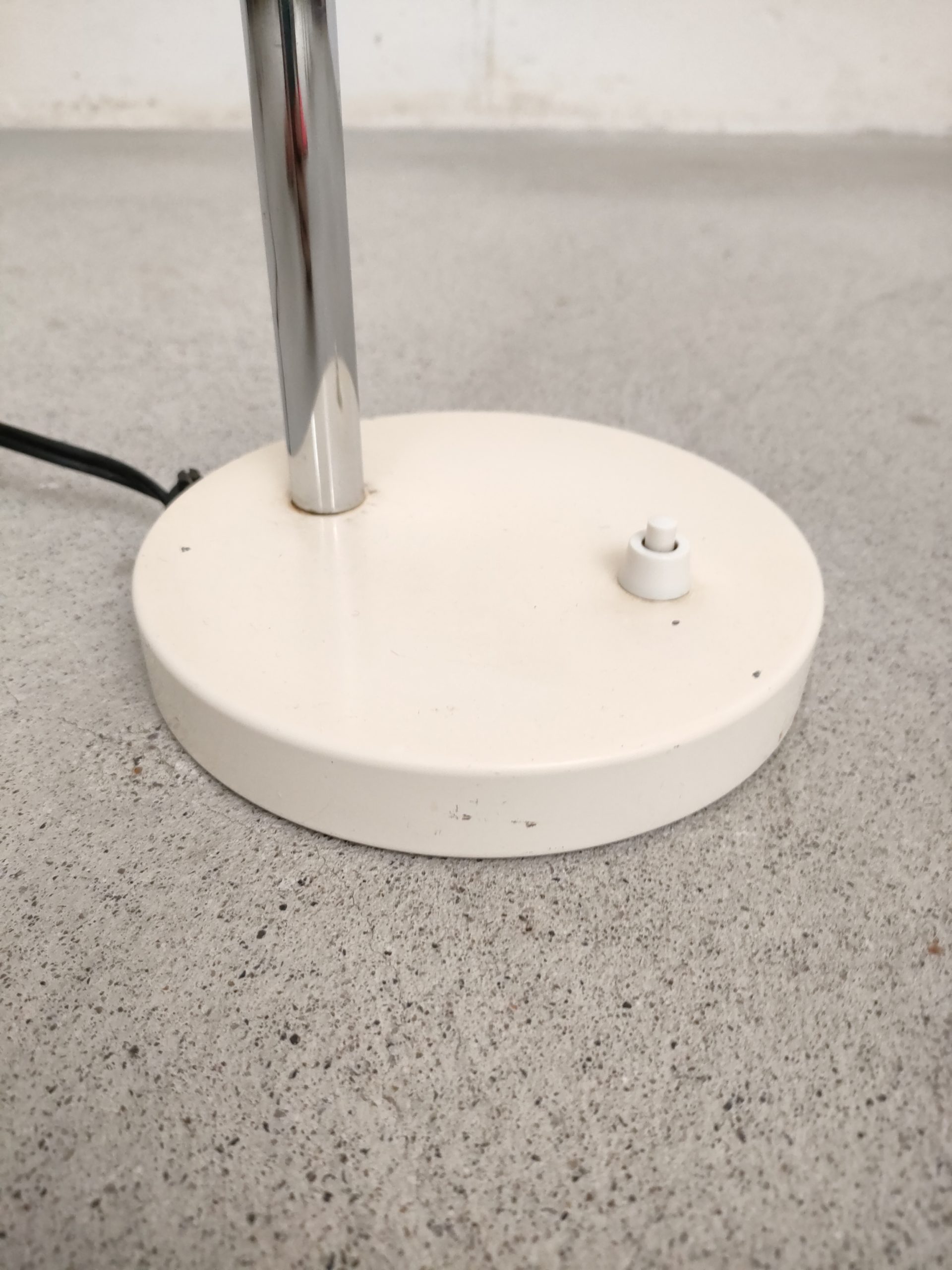 Produit venduLampe de table Regent avec socle et abat-jour en métal blanc et tige en flexible en bon état. Des légères traces d’usure sont présentes (voir photos). La lampe fonctionne avec des ampoules standard.