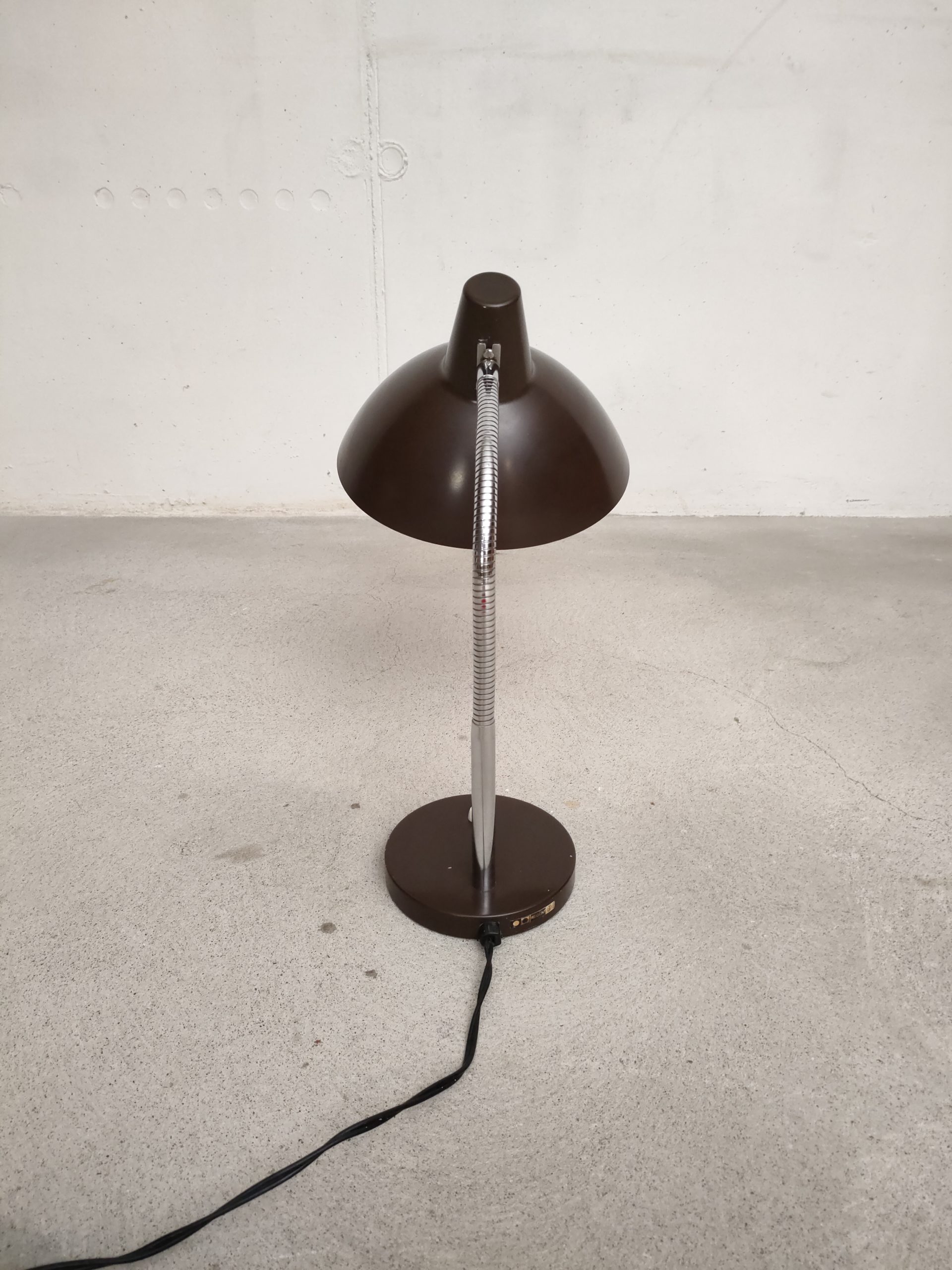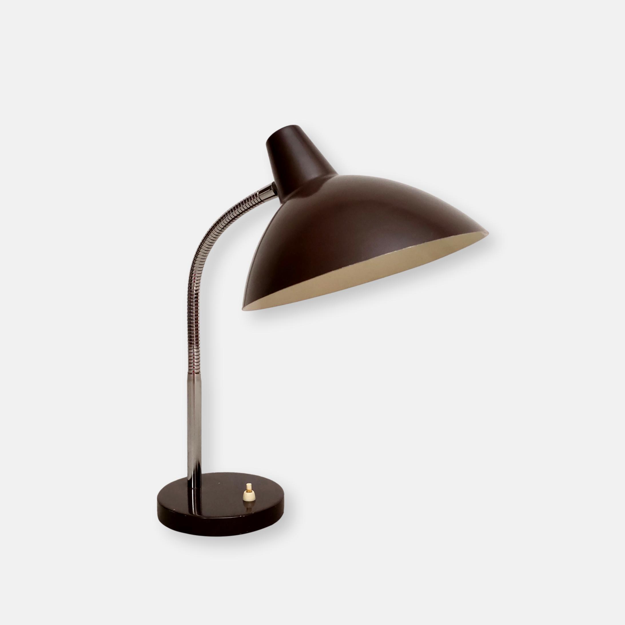 Produit venduLampe de table Regent avec socle et abat-jour en métal marron et tige en flexible en bon état. Des légères traces d’usure sont présentes (voir photos). La lampe fonctionne avec des ampoules standard.