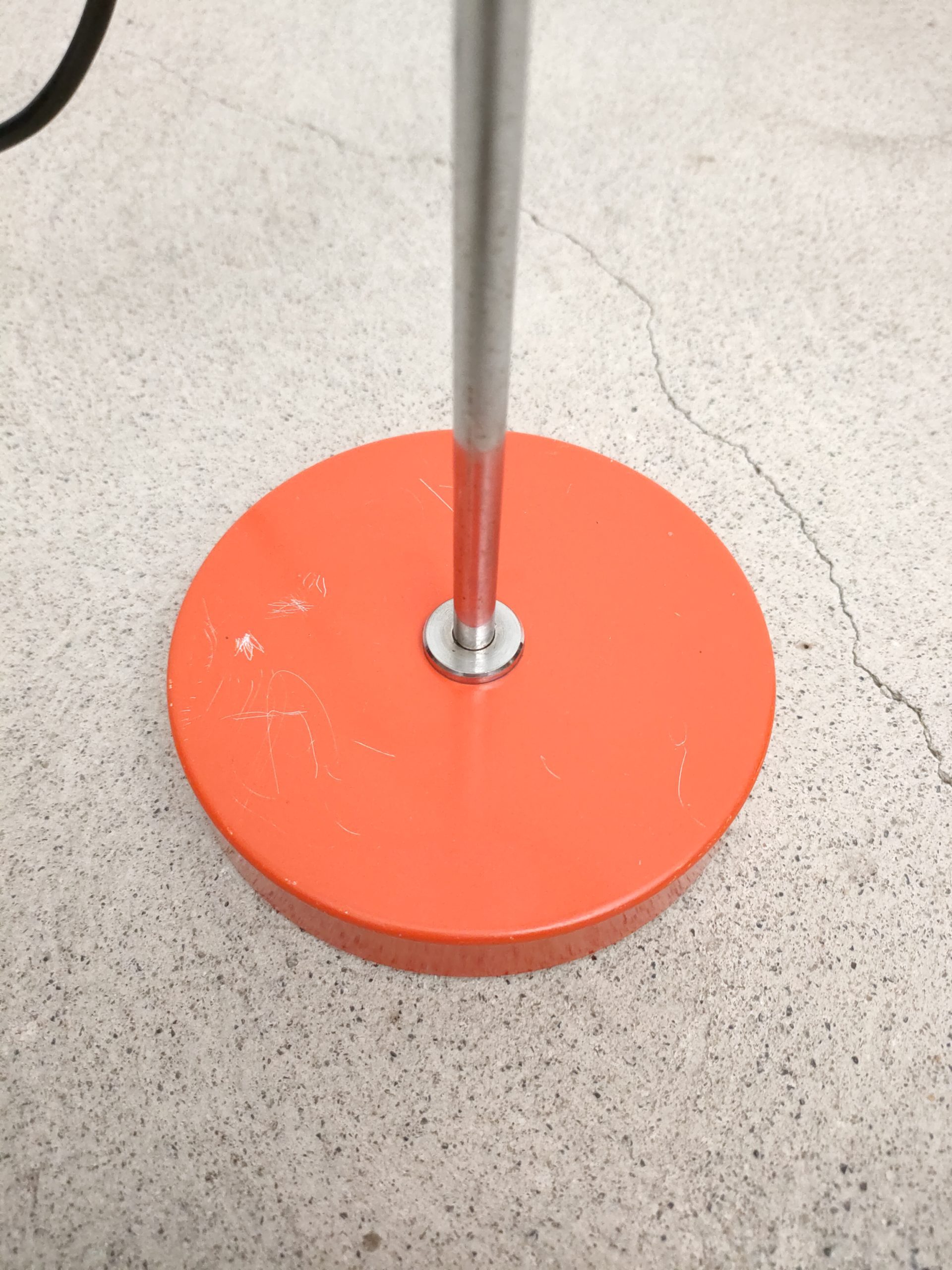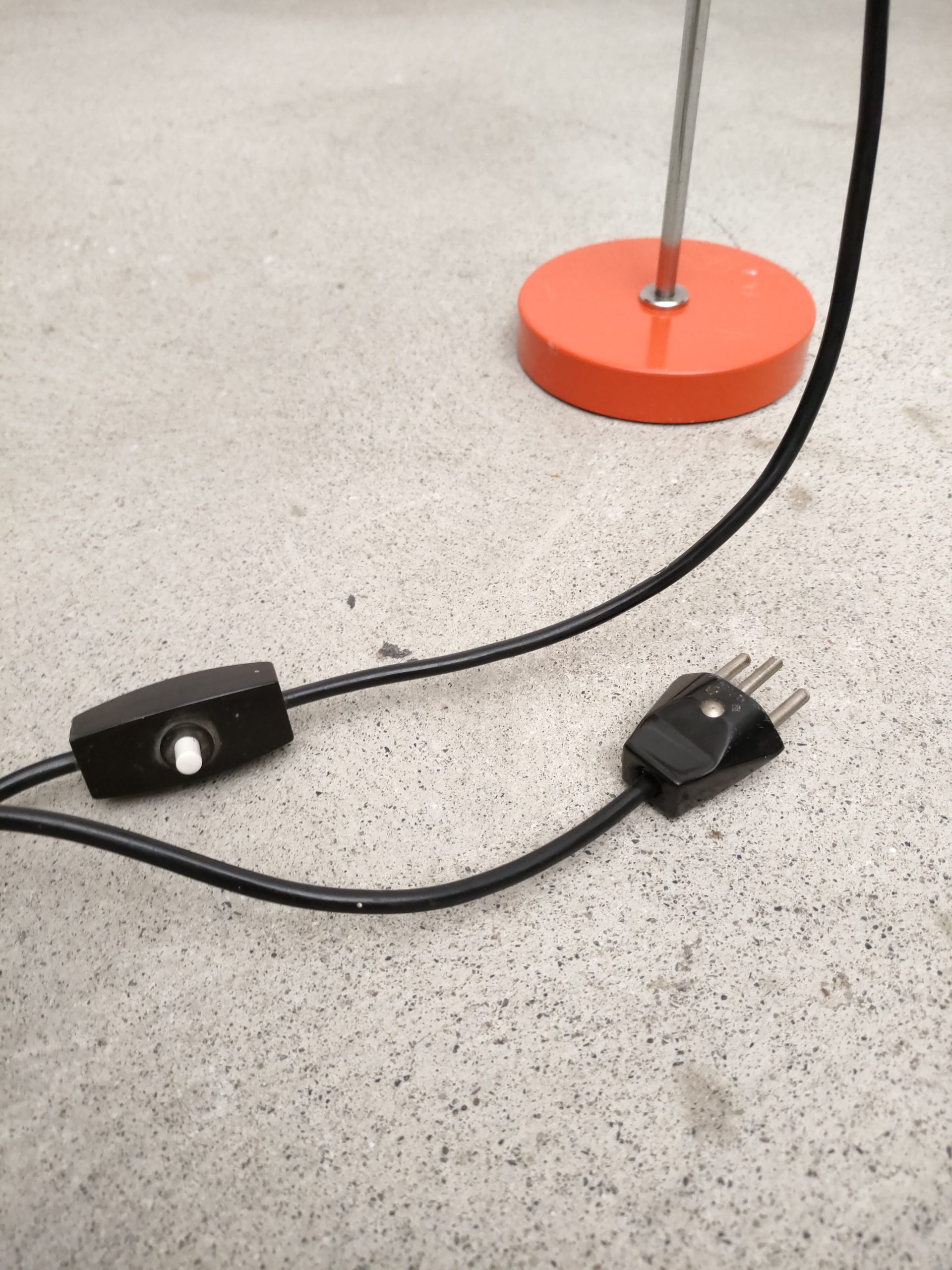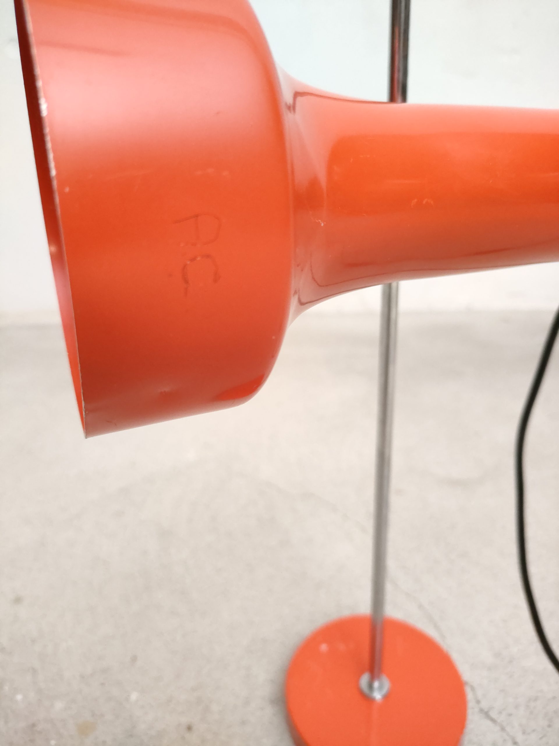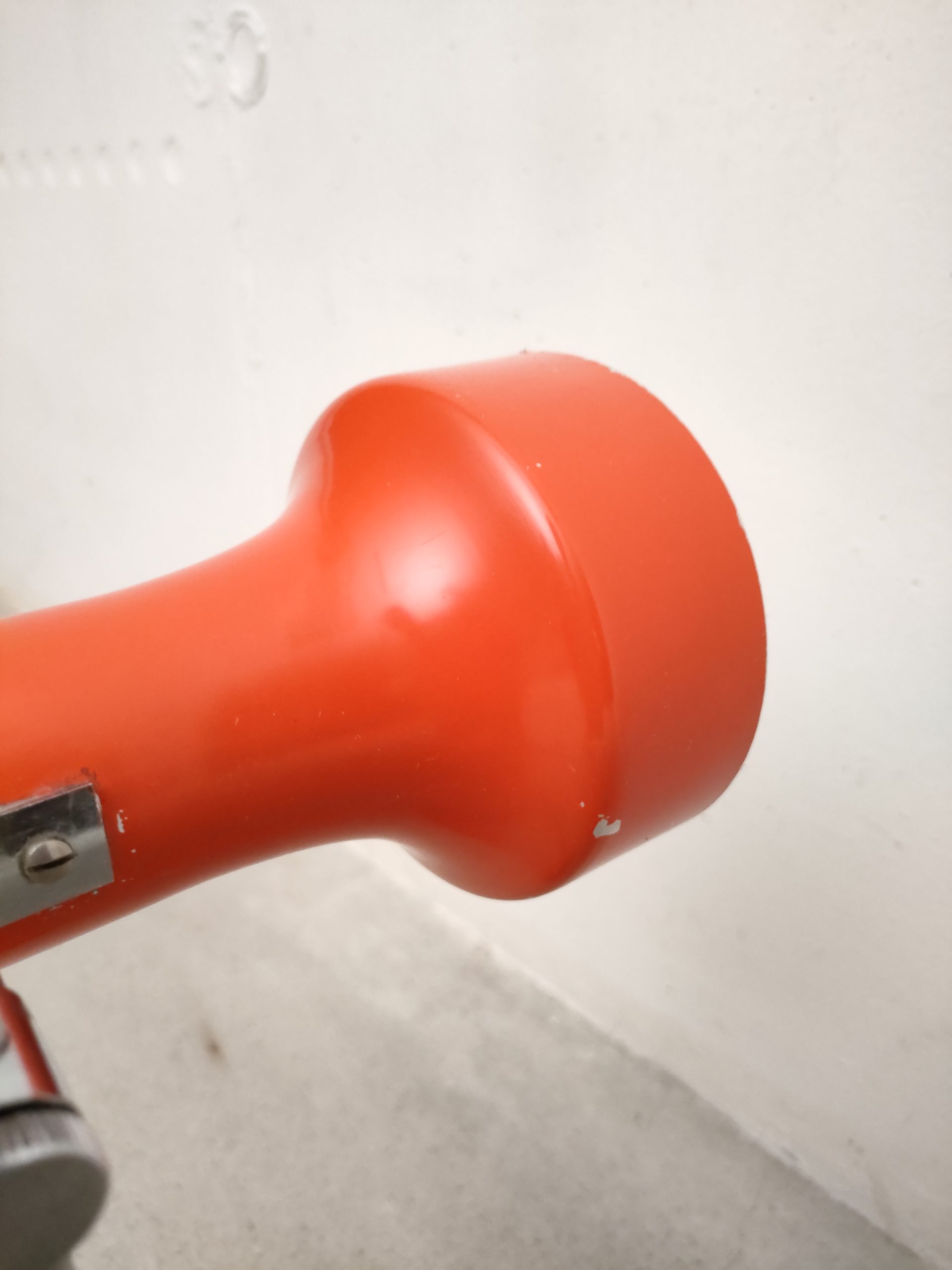 Produit venduLampe de table vintage avec socle et spot en métal de couleur rouge et tige en métal chromé. Le spot a une très belle forme et peut être orienté dans toutes les directions. Quelques traces sur le métal et des petits manques de peinture (voir photos). Stable et solide et parfaitement fonctionnelle.