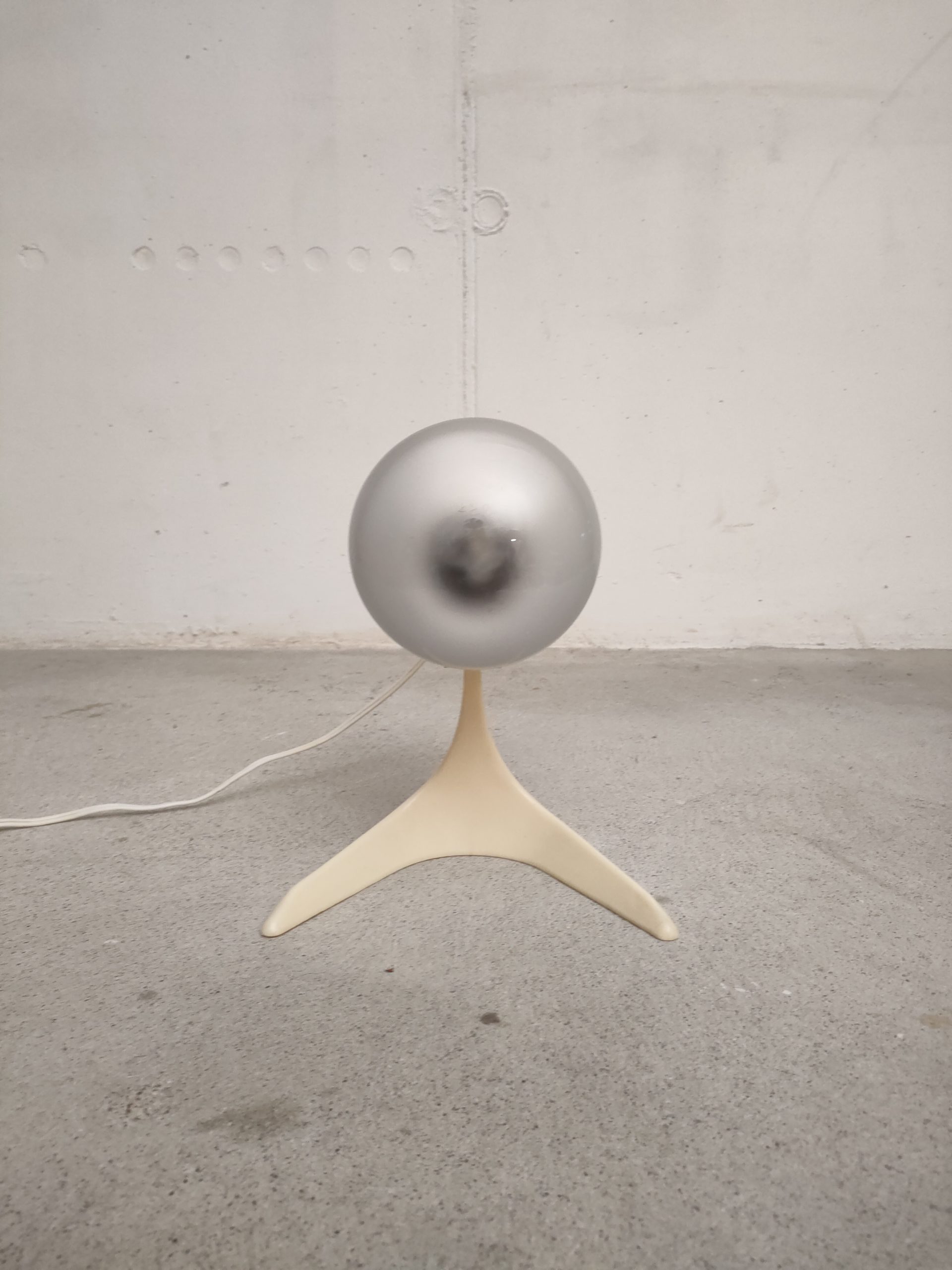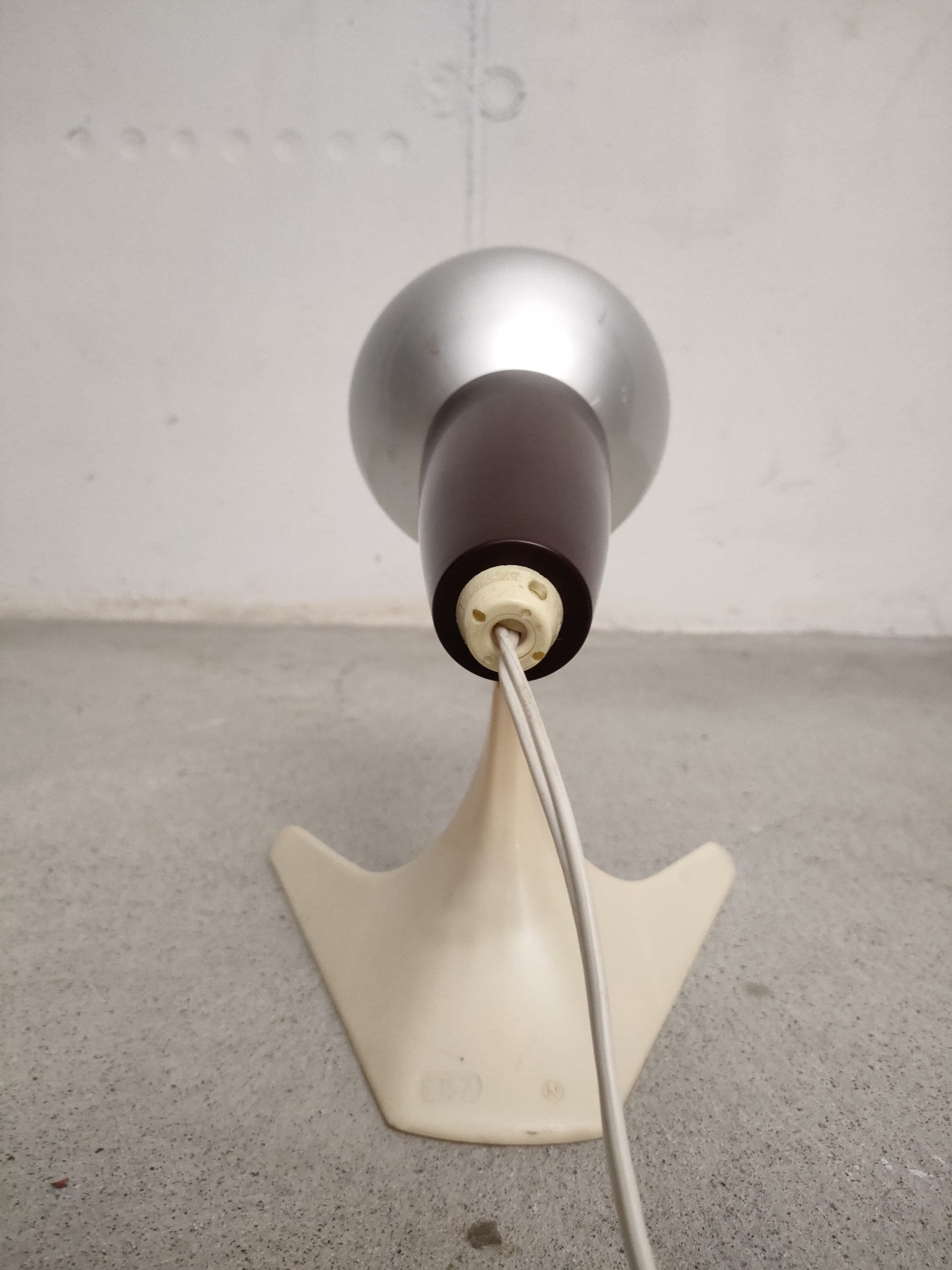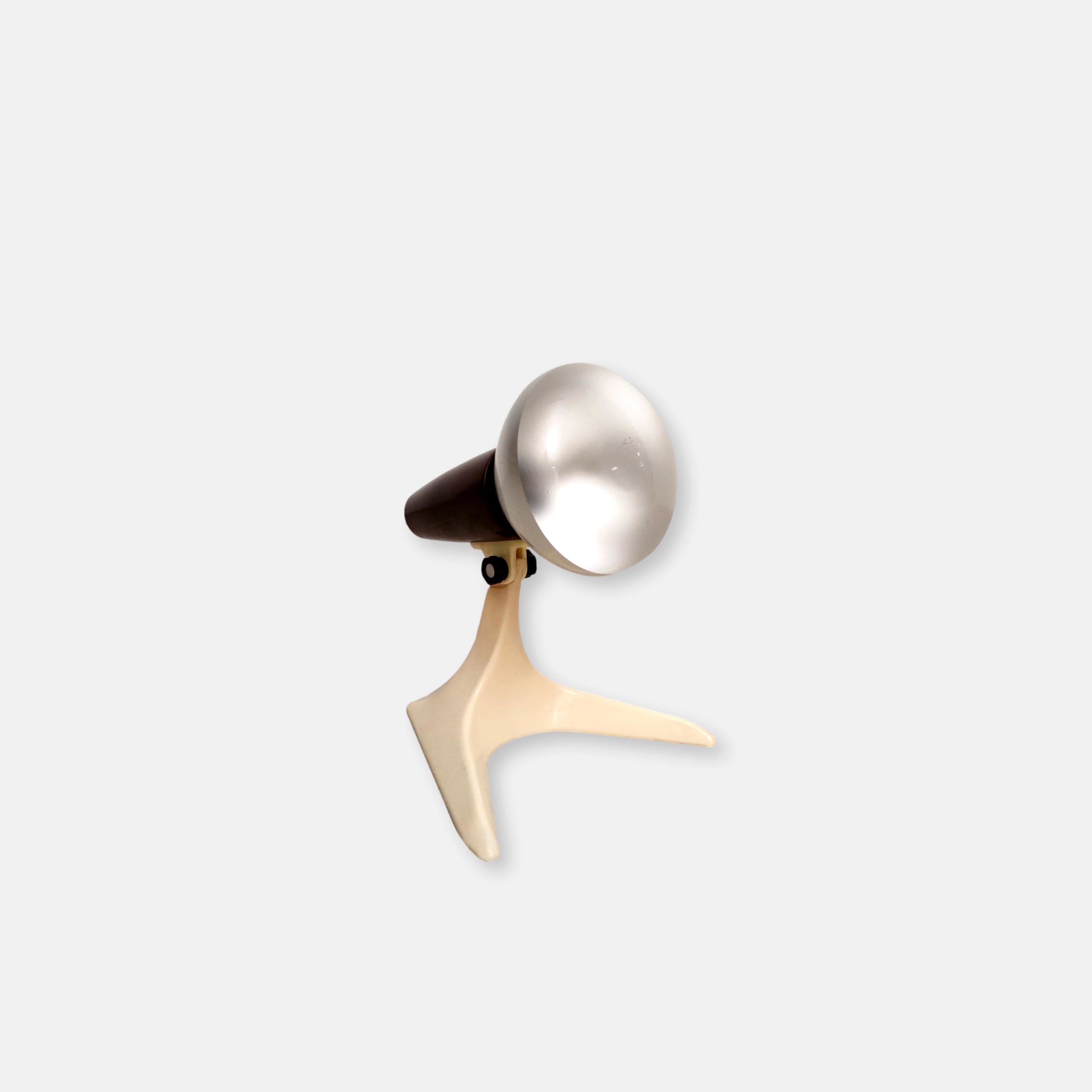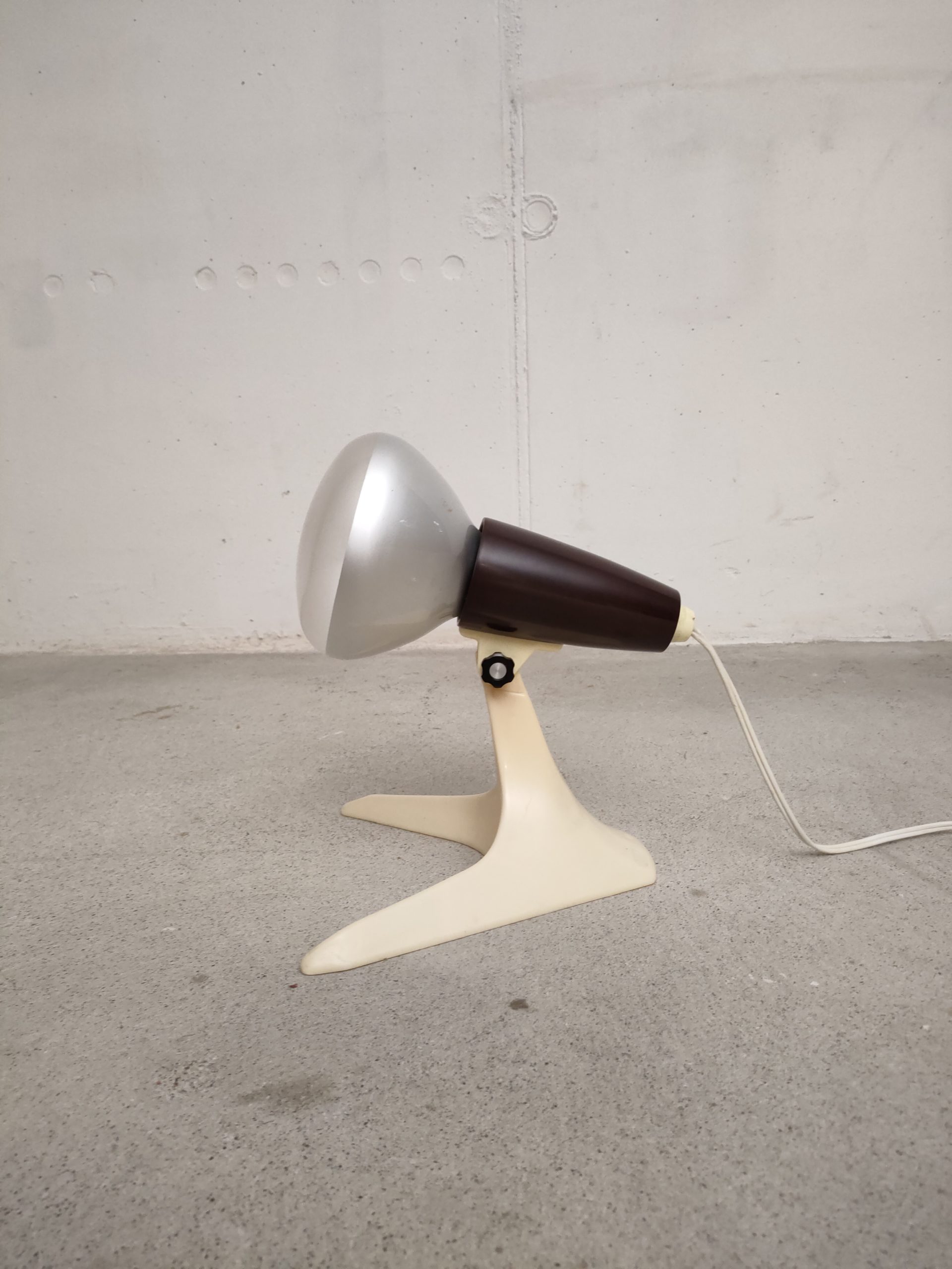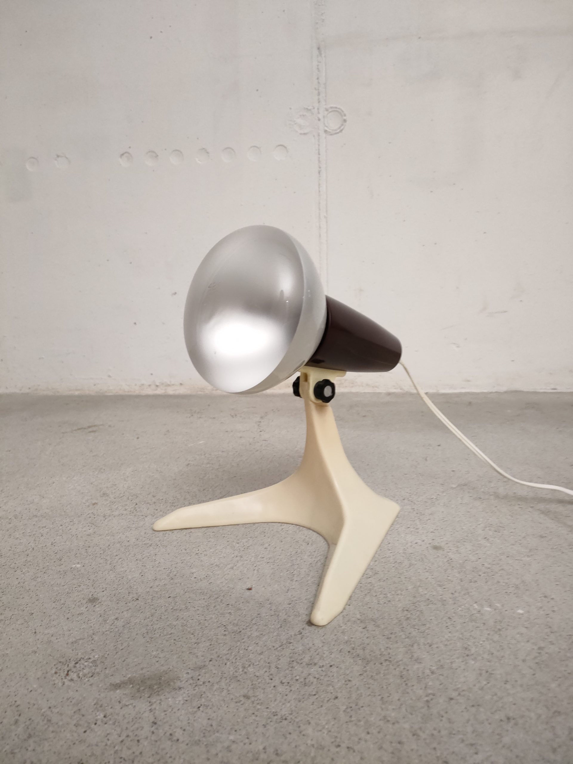 Produit venduLampe de table vintage avec piètement en plastique avec petit mécanisme permettant d’orienter légèrement la direction de l’ampoule. Quelques traces d’usure mais la lampe est parfaitement fonctionnelle.