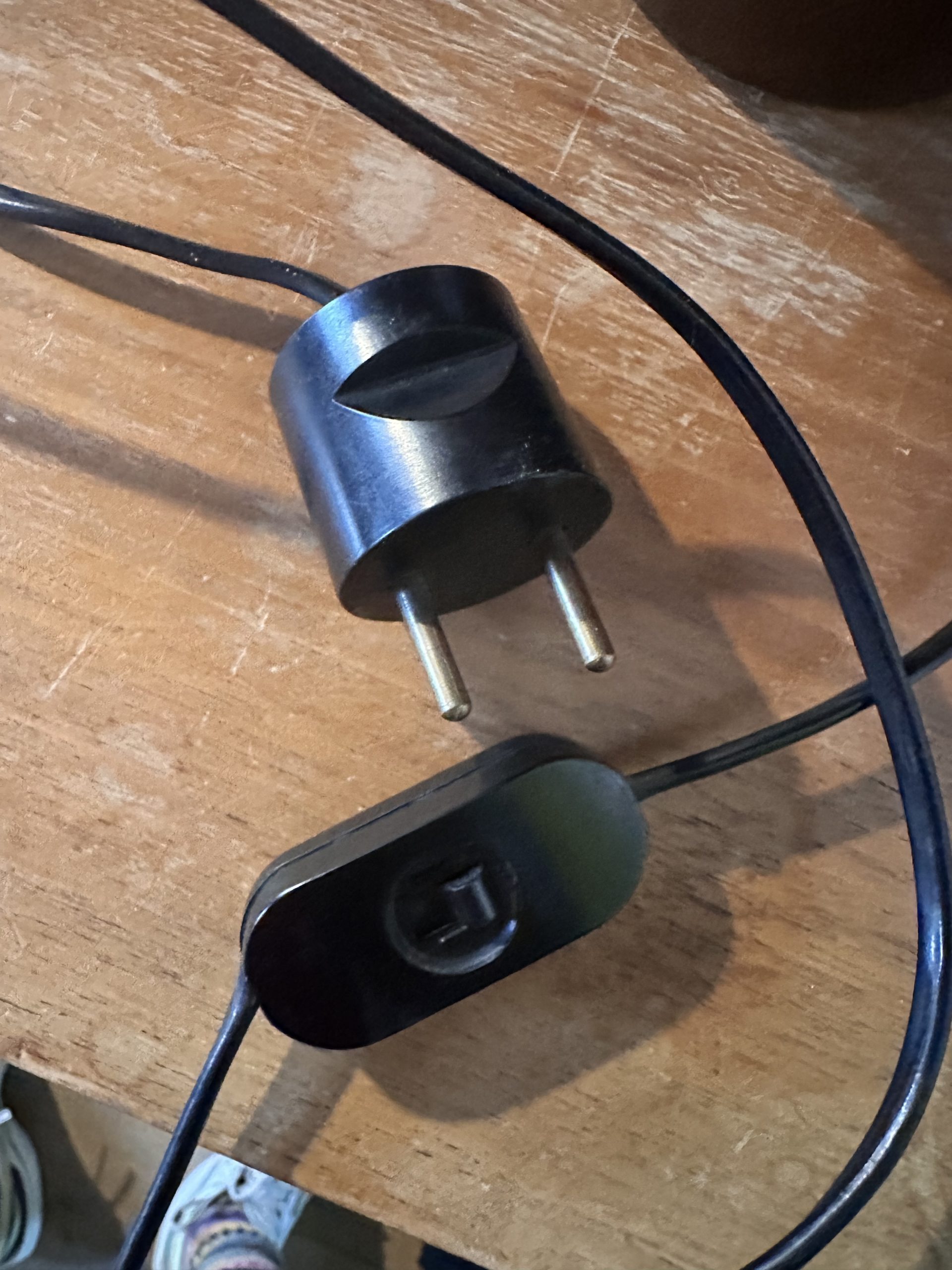 L’interrupteur est sur le fil et la prise est ronde. La lampe est en bon état, on peut noter des signes d’usage mais pas de choc. Il faut aussi noter qu’elle est dotée d’une crochet à l’arrière pour l’installer au mur.