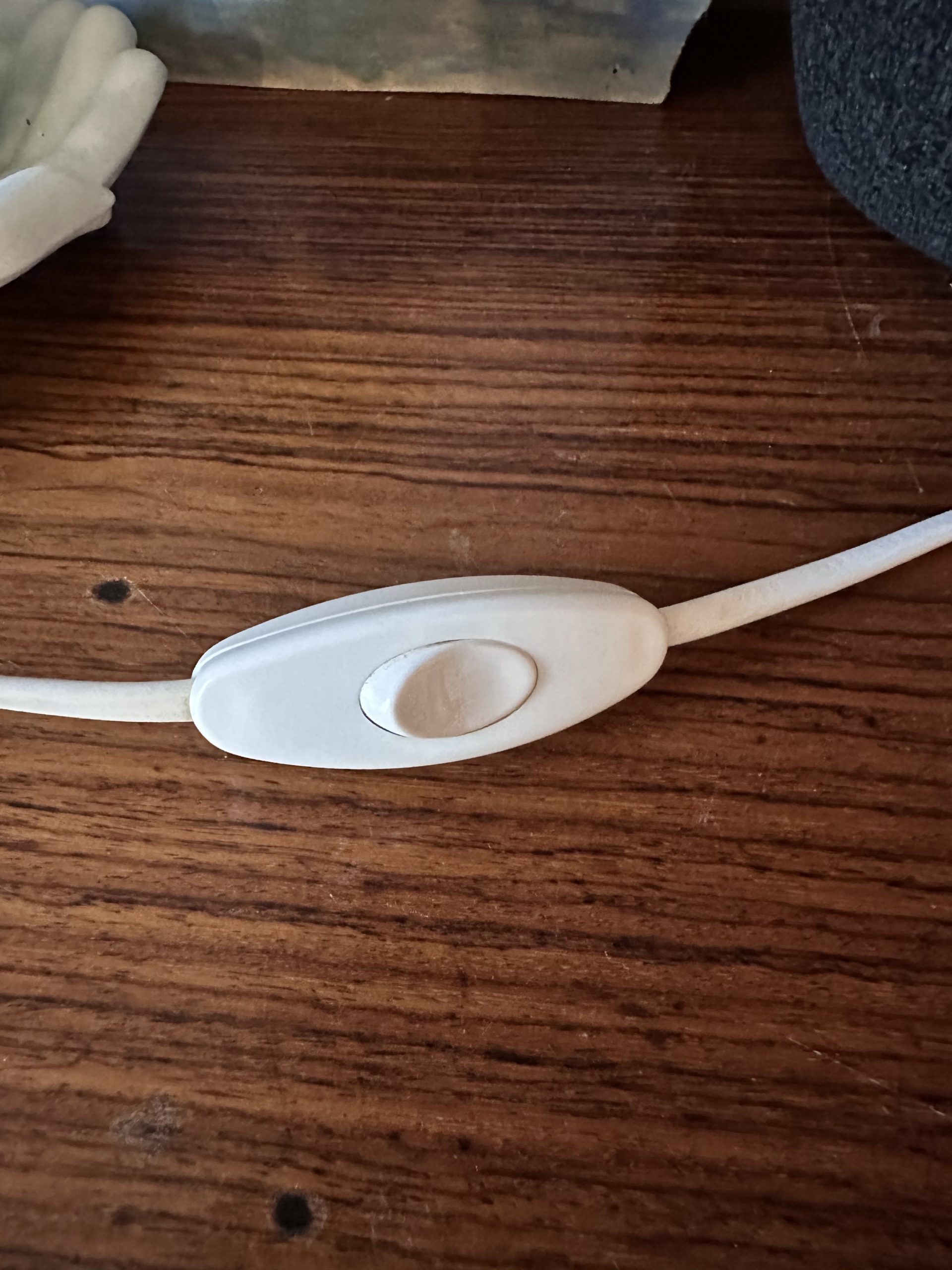 Étiquette d’origine sous la base. Interrupteur sur le fil.