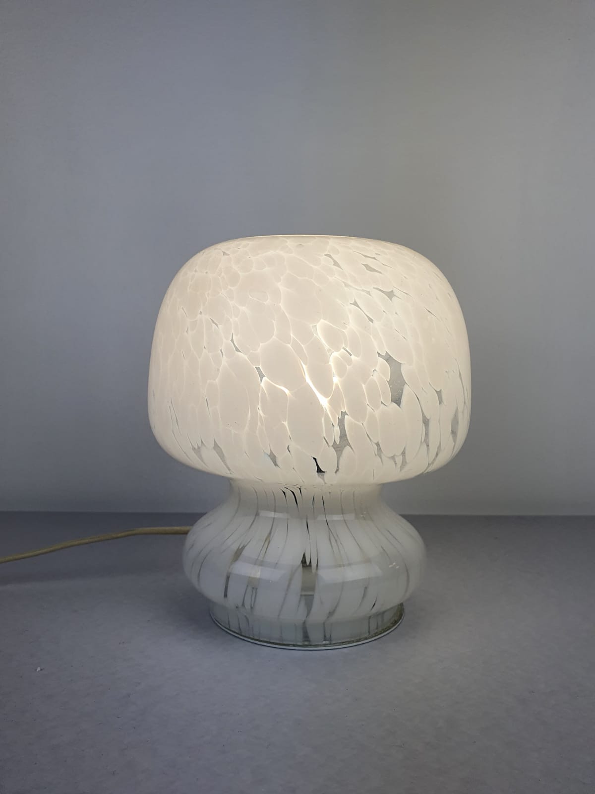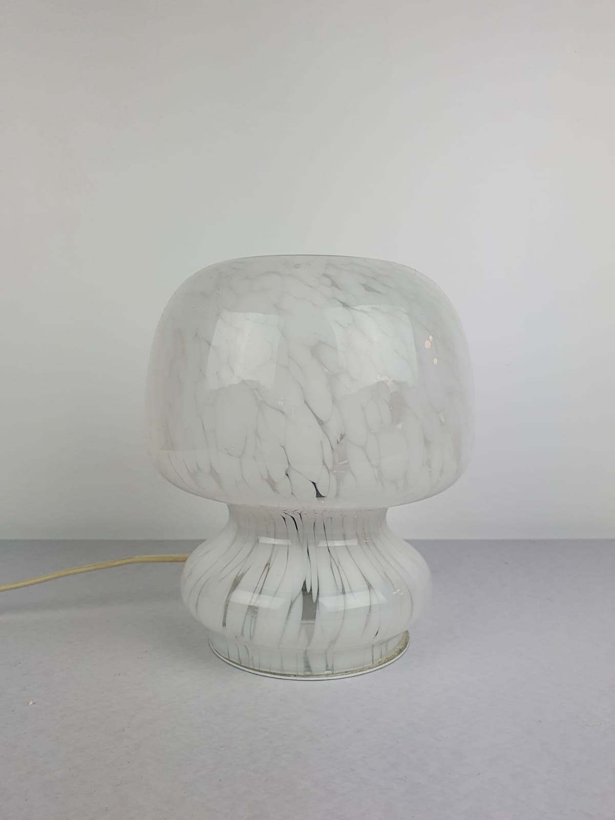 Lampe d’appoint en verre de Murano, blanc et nuageux.