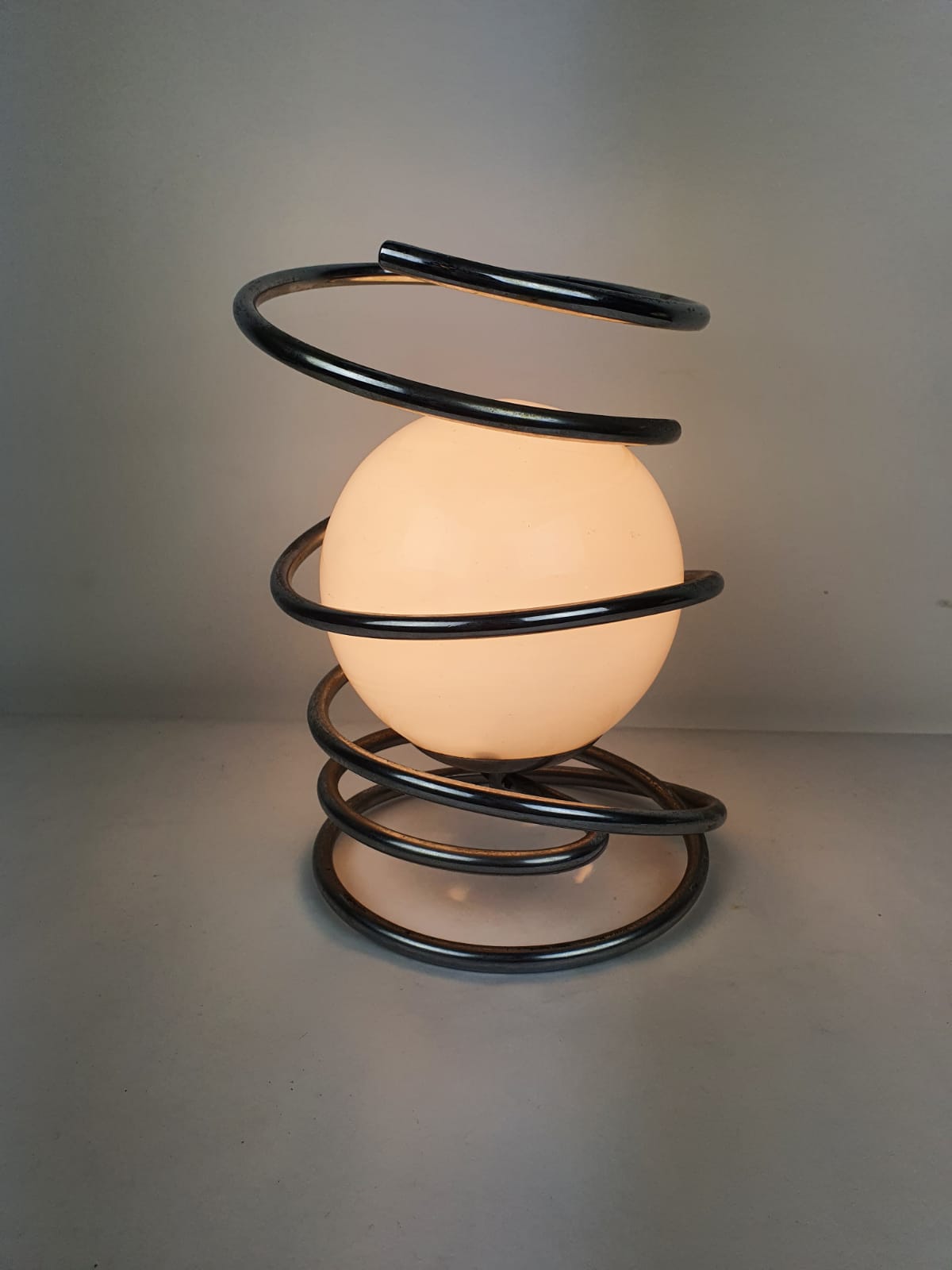 Produit venduLampe italienne des années 70 avec ressort en chrome.