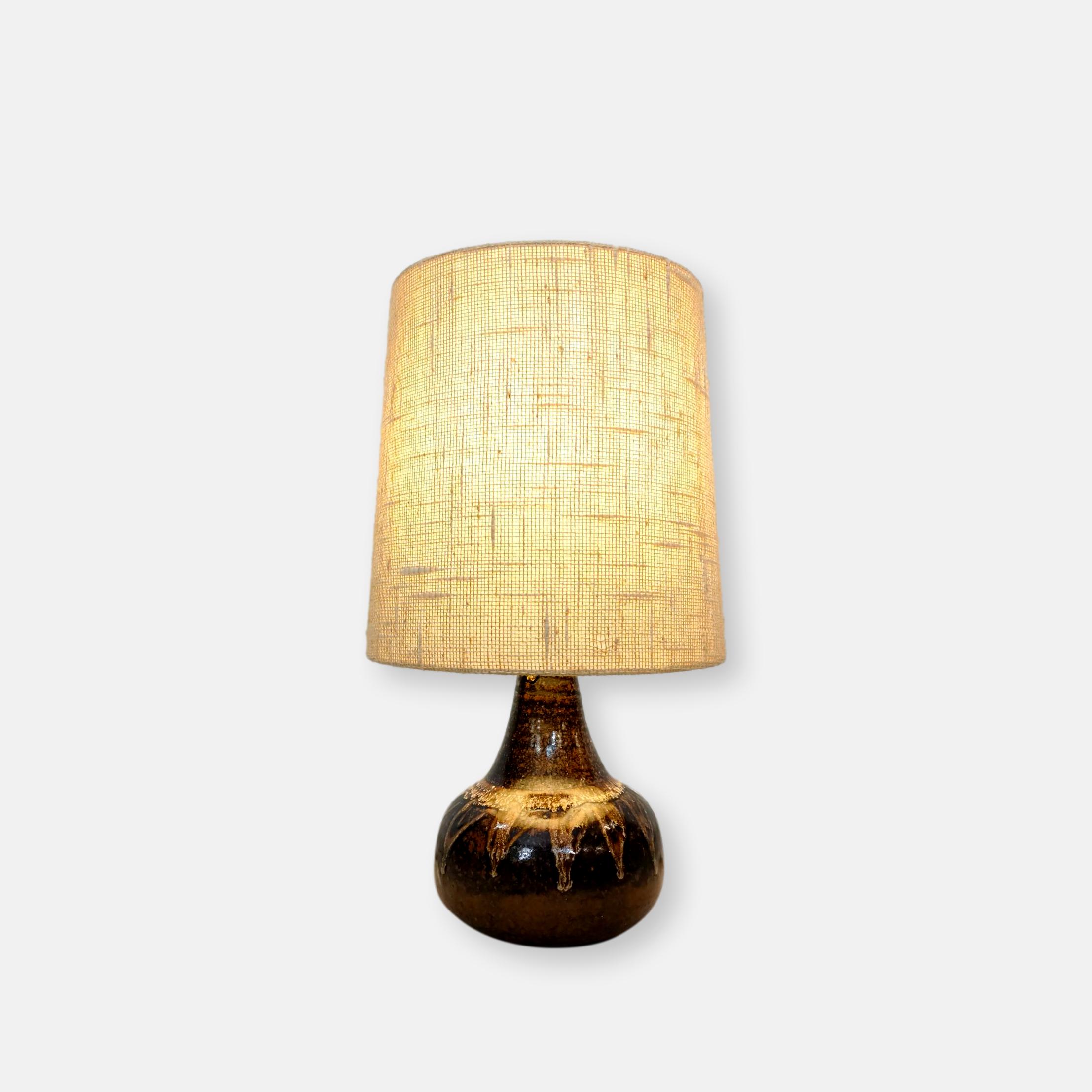 Produit venduLampe de table vintage avec base en céramique par Rheinfelden Keramik et abat-jour en tissu. La lampe est parfaitement fonctionnelle et permet de créer une belle lumière tamisée. Elle fonctionne avec des ampoules standard E27.