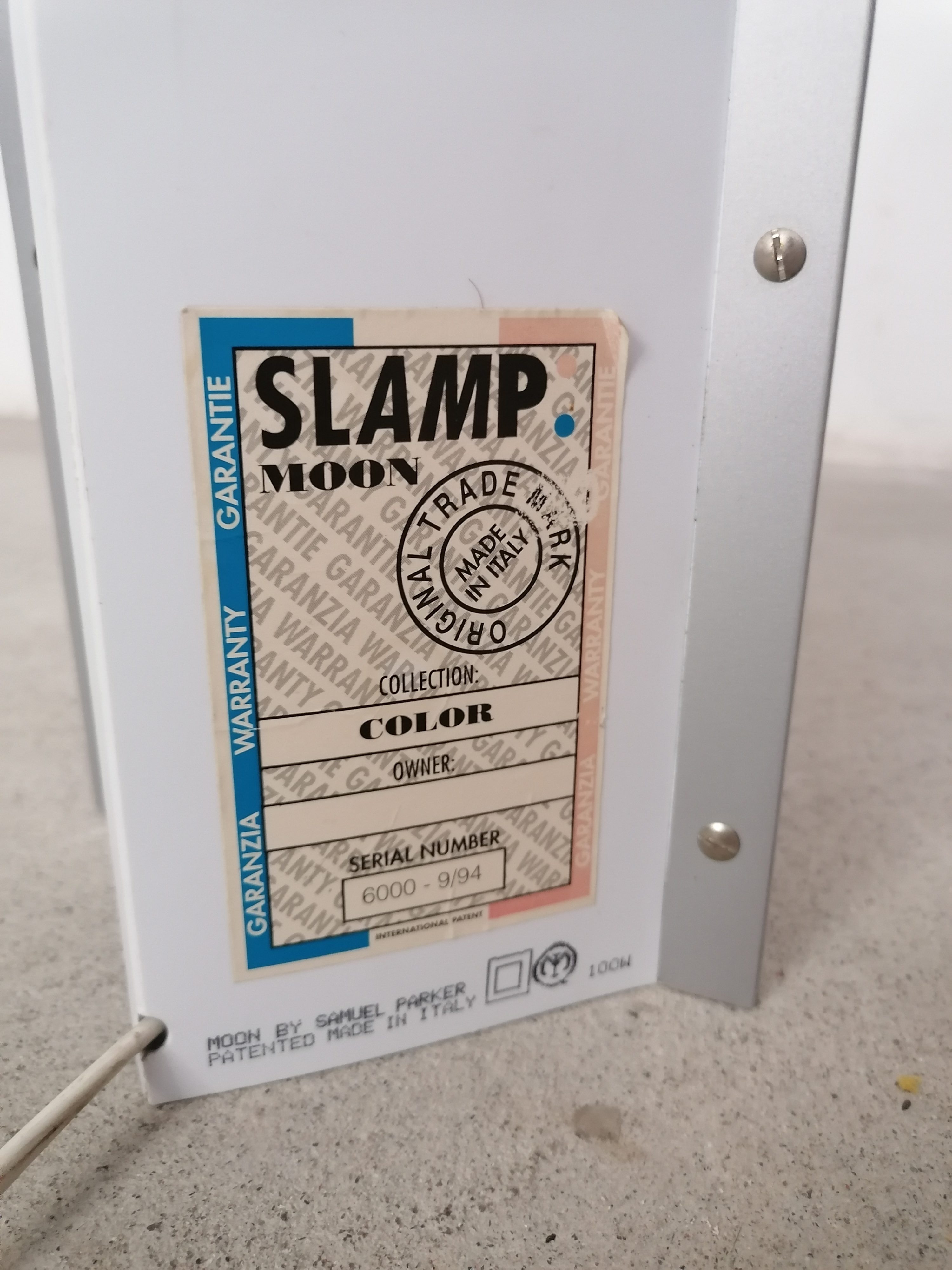 Produit venduLampe de table dessinée par Samuel Parker dans les années 80. Modèle Moon produite par l’entreprise Slamp. Made in Italy.