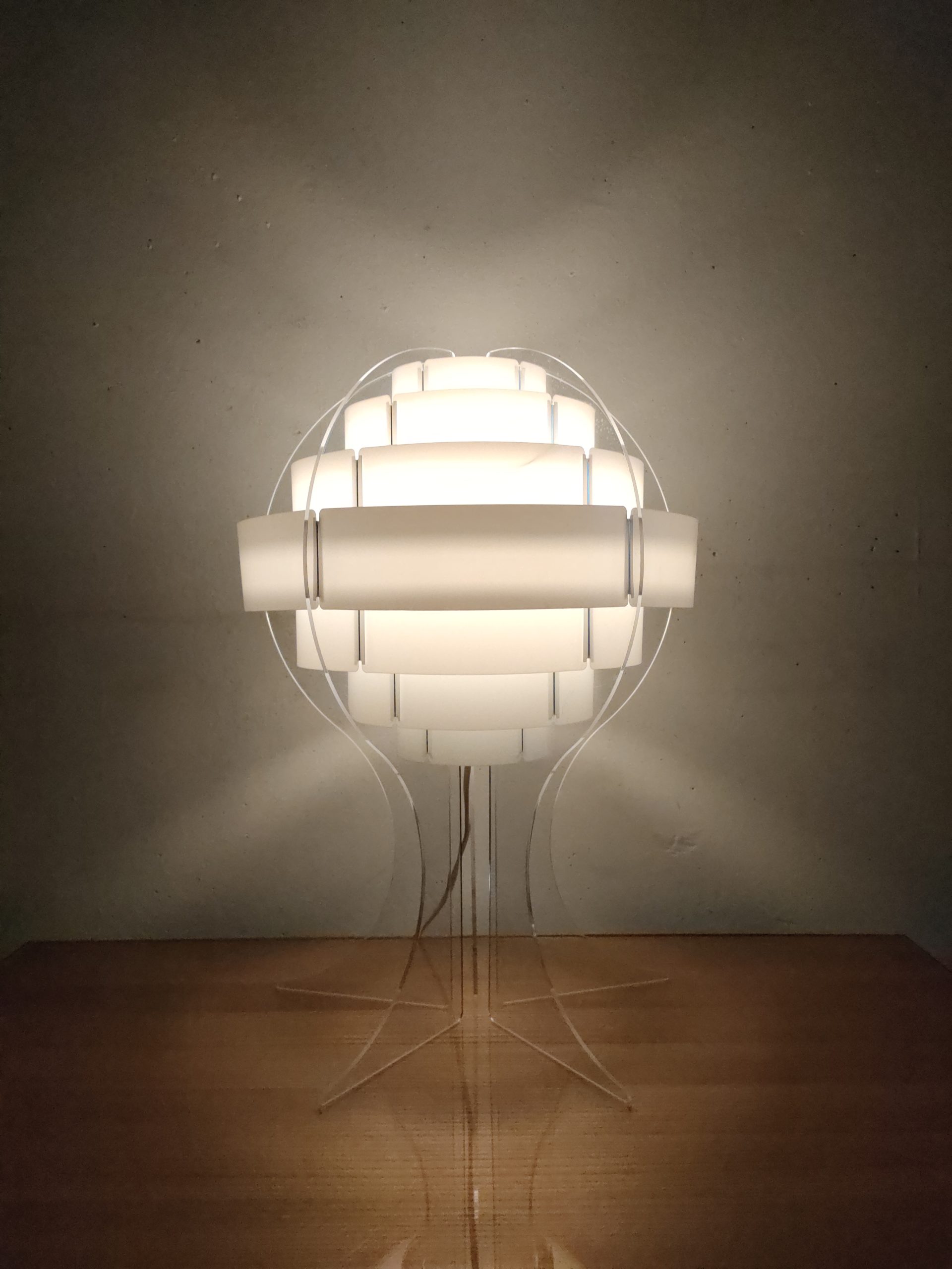 Produit venduLampe de table Stripes déssinée par Flemming Brylle et Preben Jacobsen en 1965. Il s’agit ici d’une réédition IKEA des années 2000 (la lampe n’est plus produite actuellement). Elle fonctionne avec une ampoule standard E27.