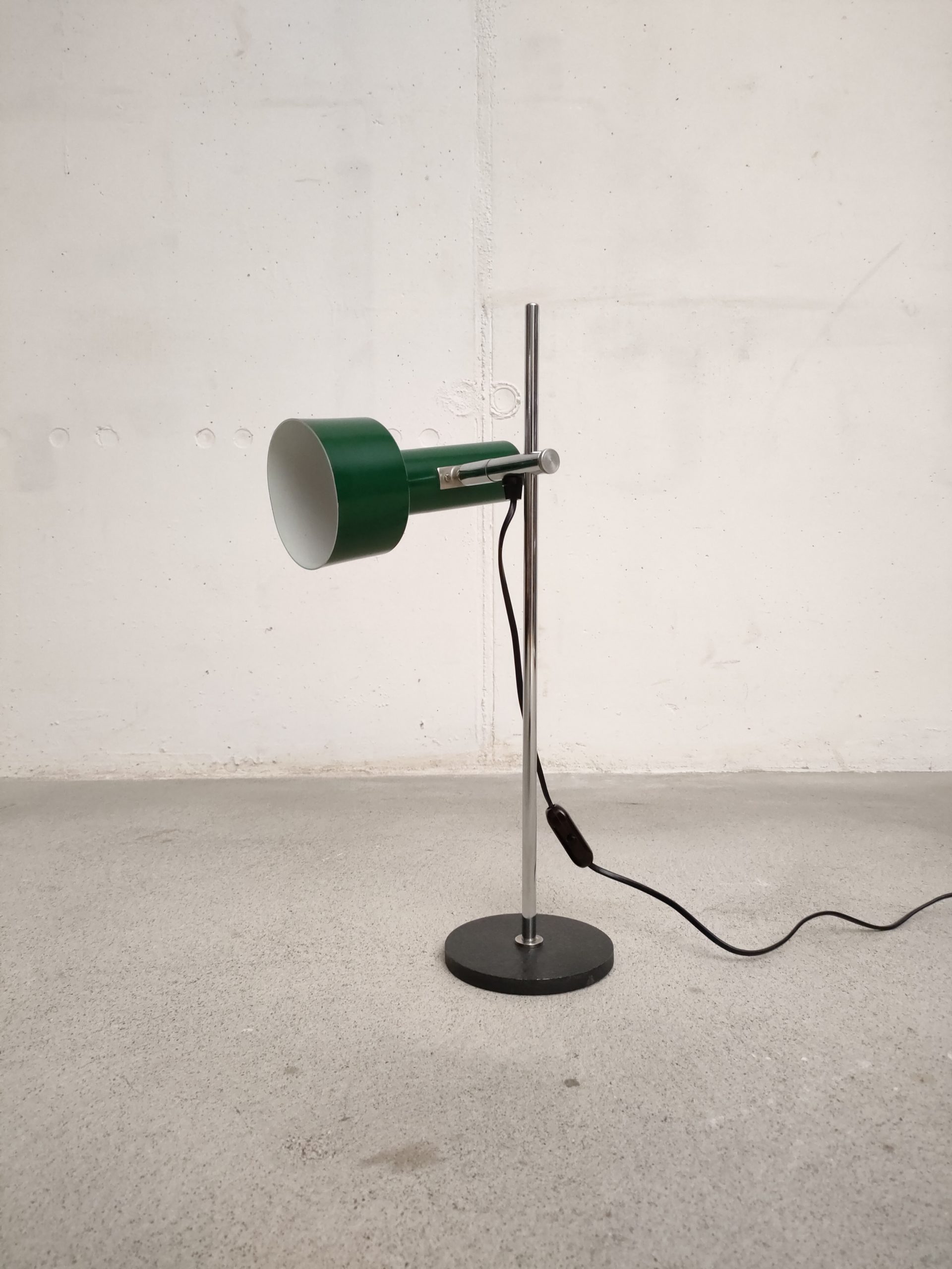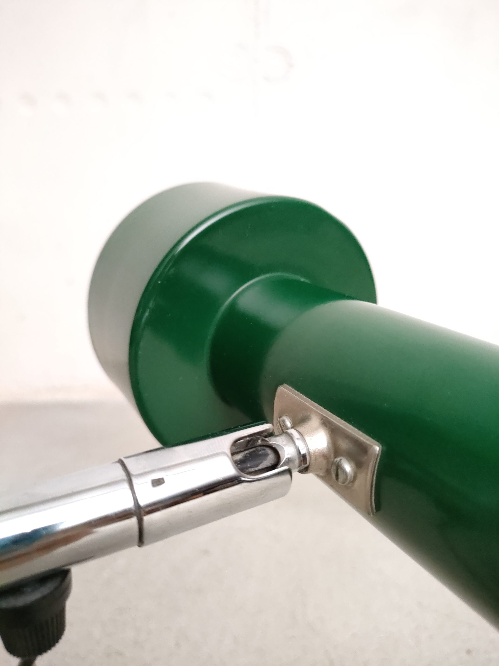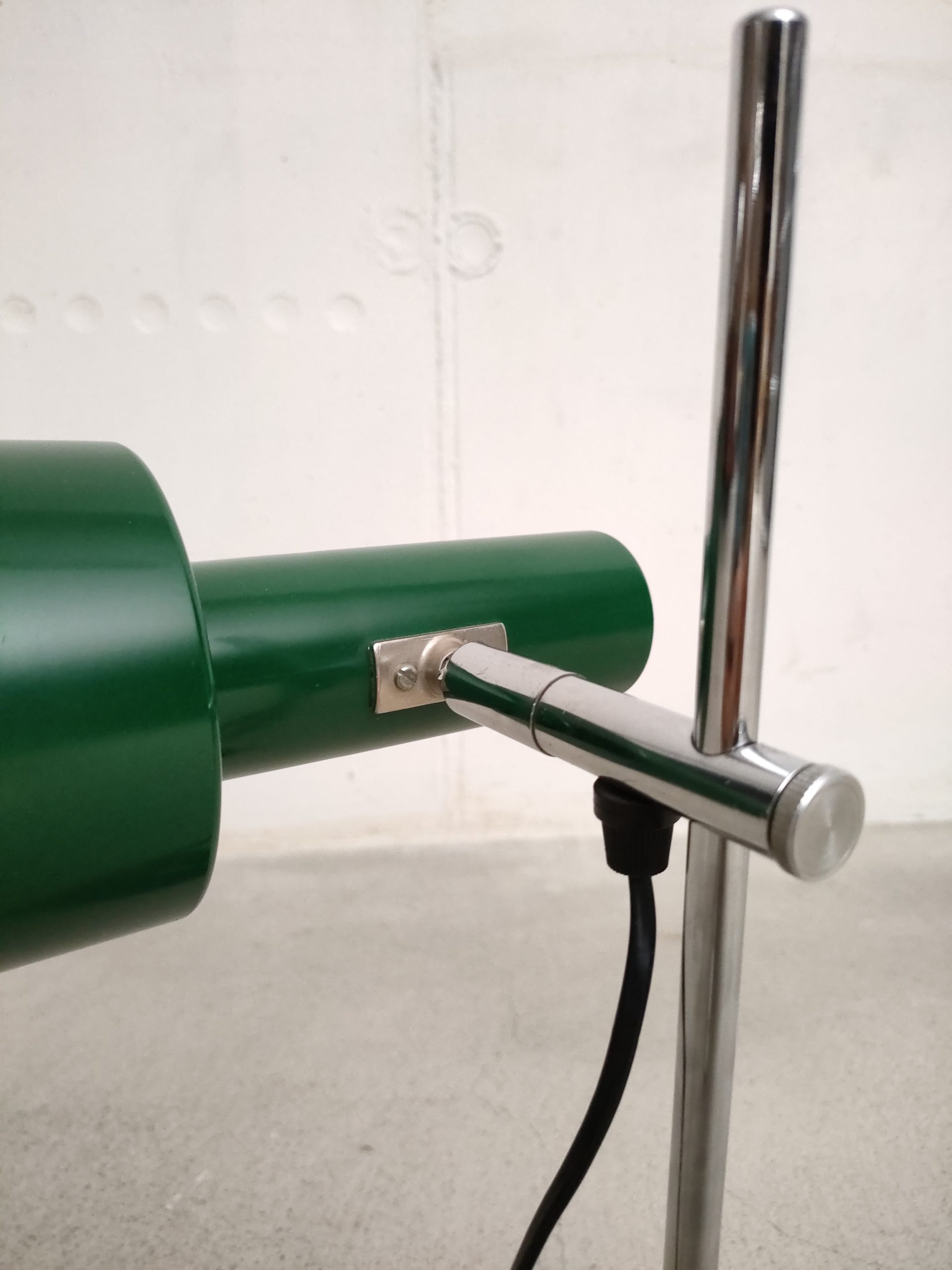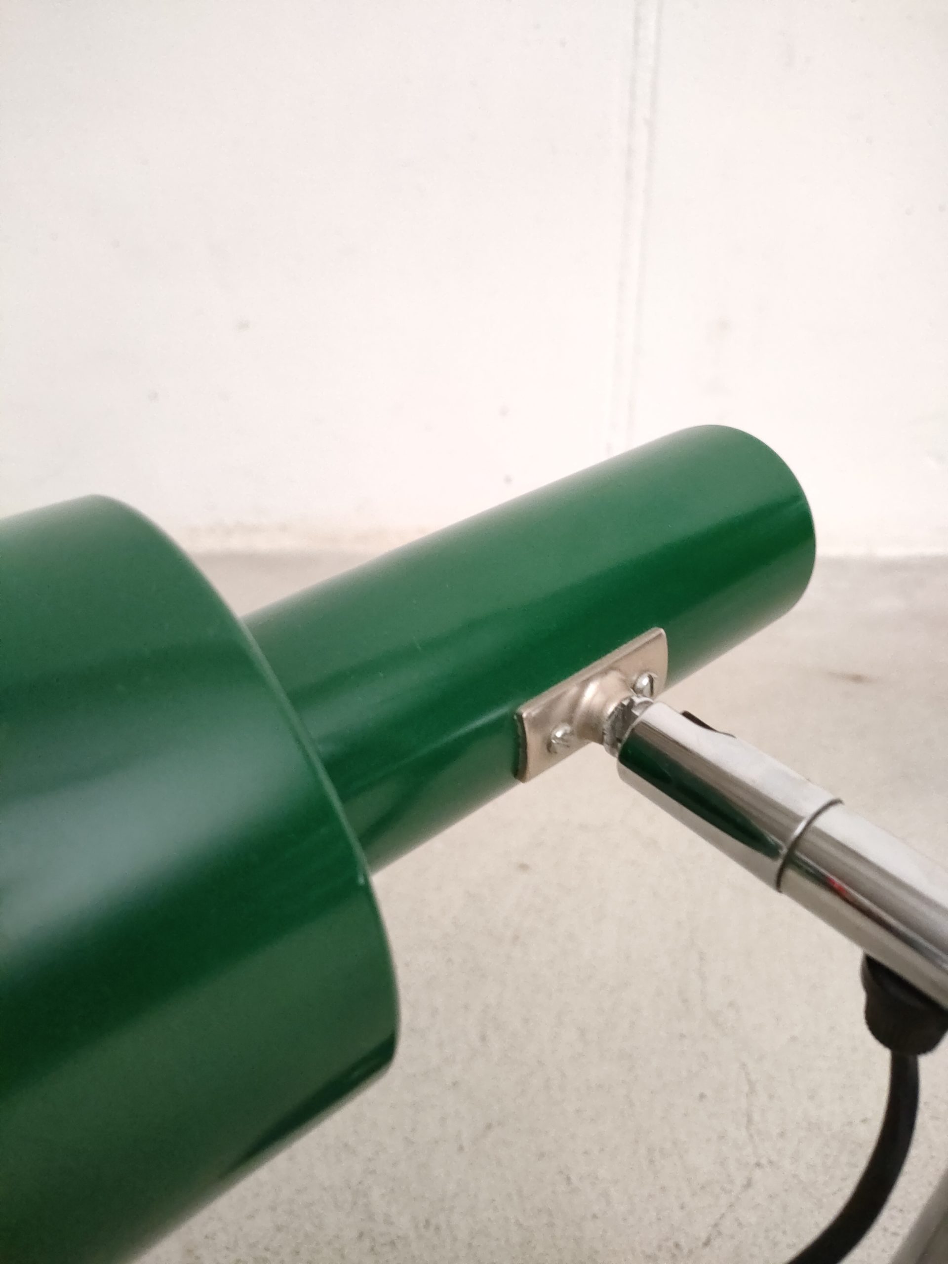 Produit venduLampe en métal dotée d’un sport vert, d’une tige chromée et d’une base noire.