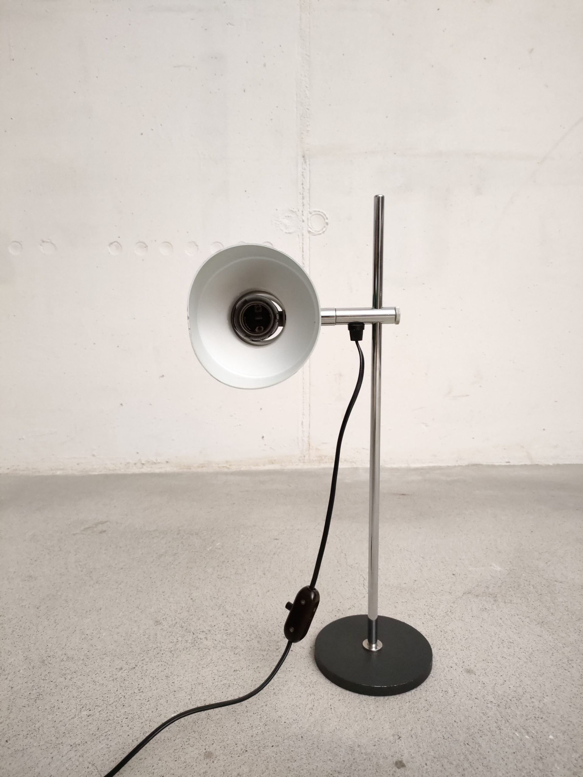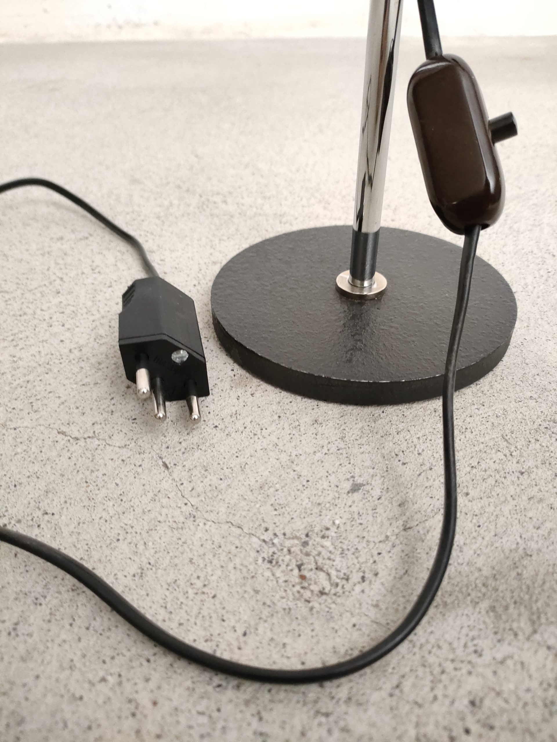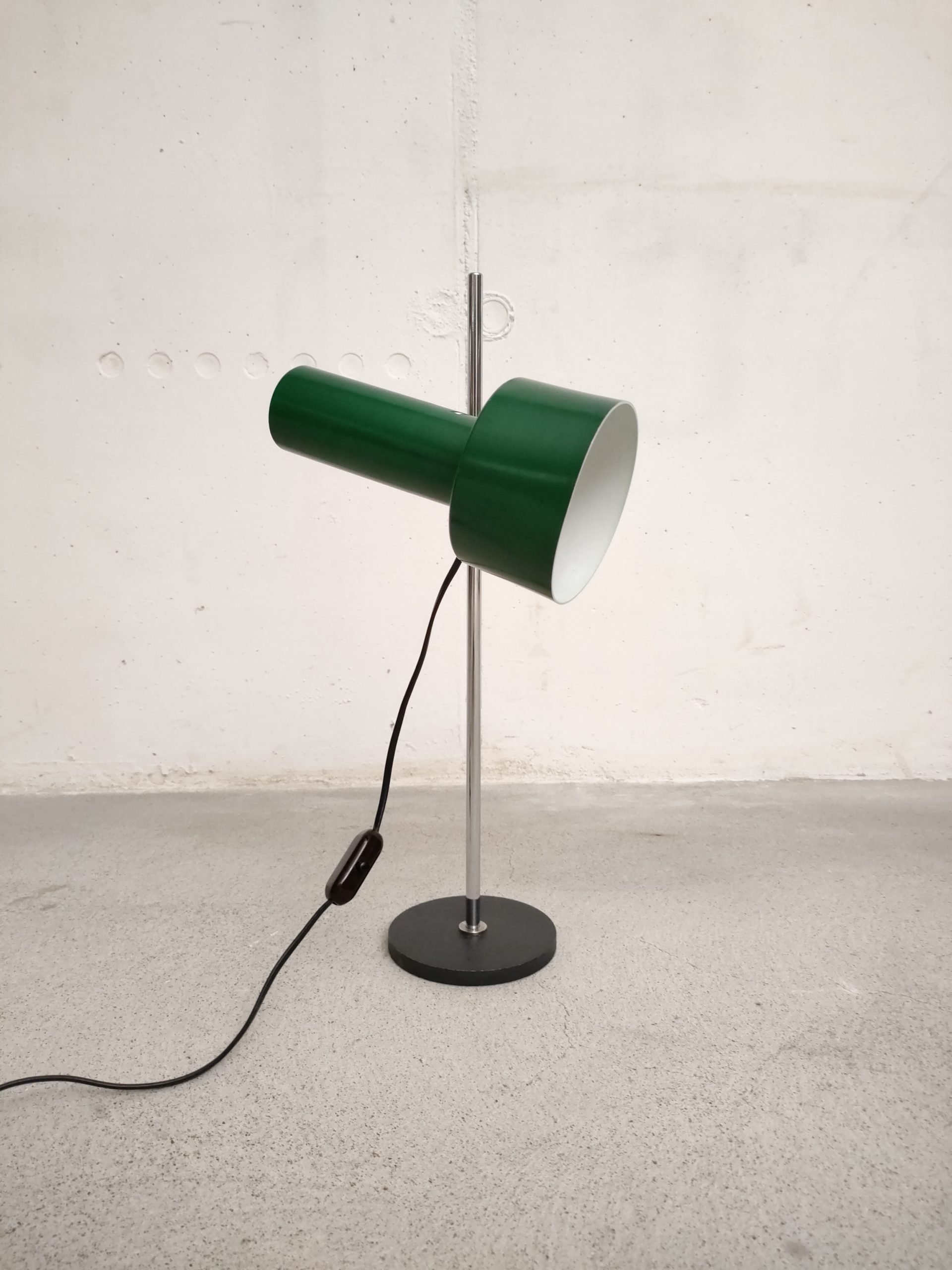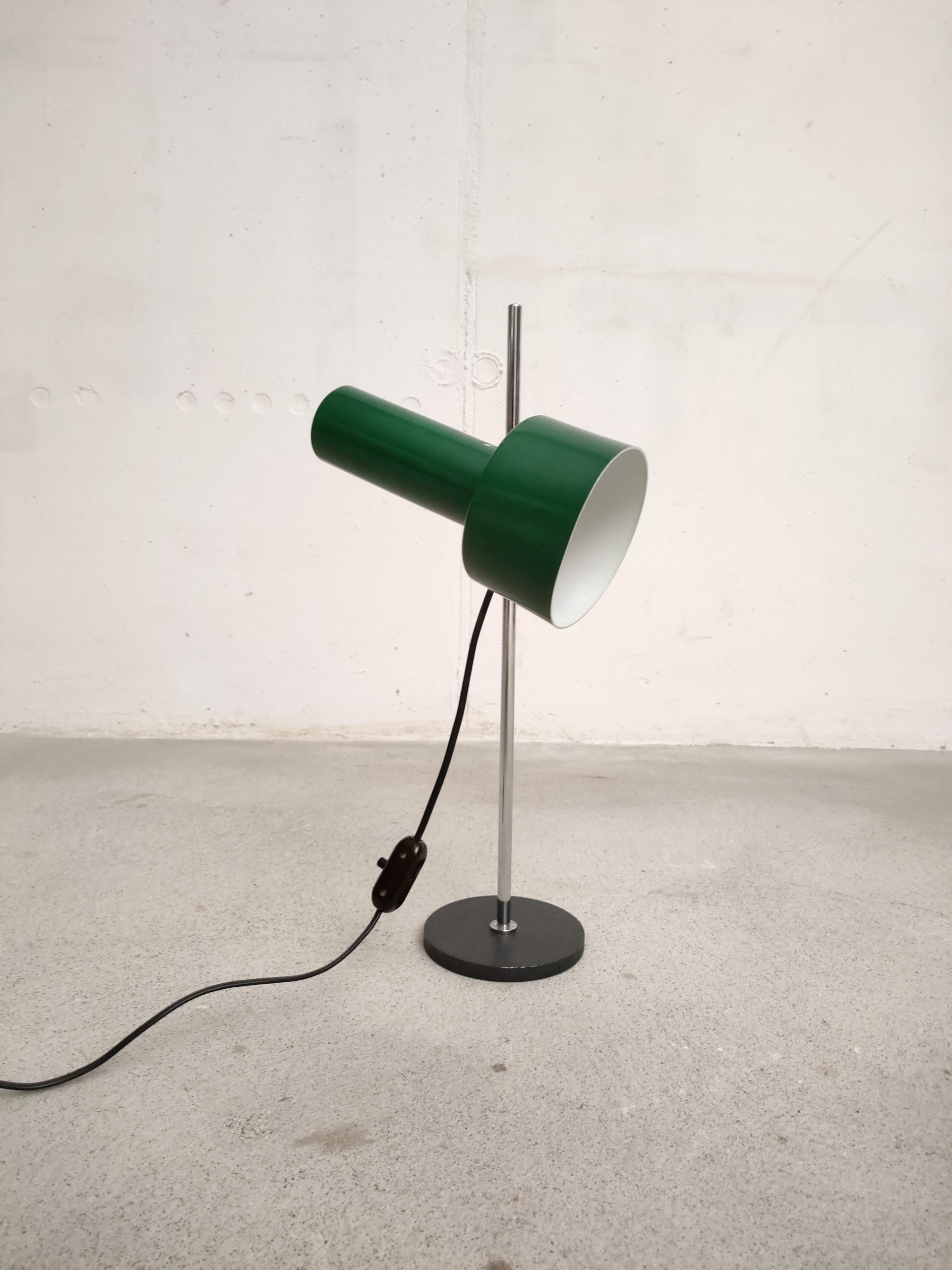 Produit venduLampe en métal dotée d’un sport vert, d’une tige chromée et d’une base noire.