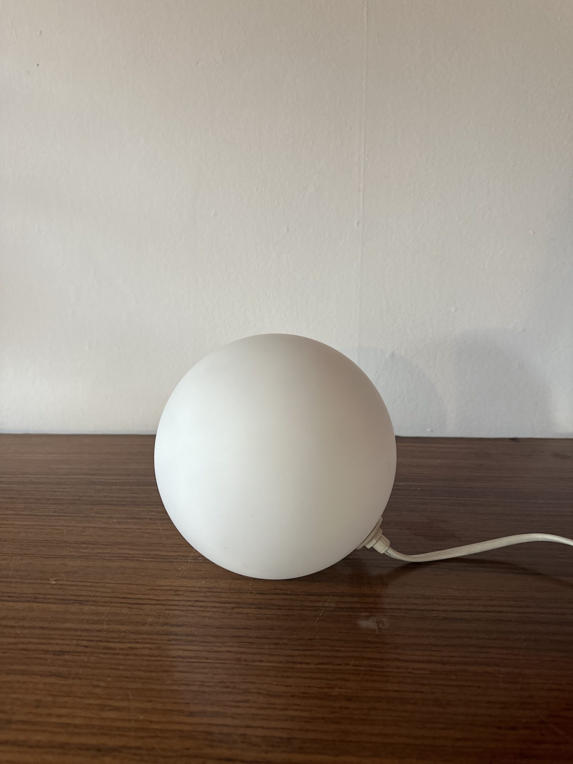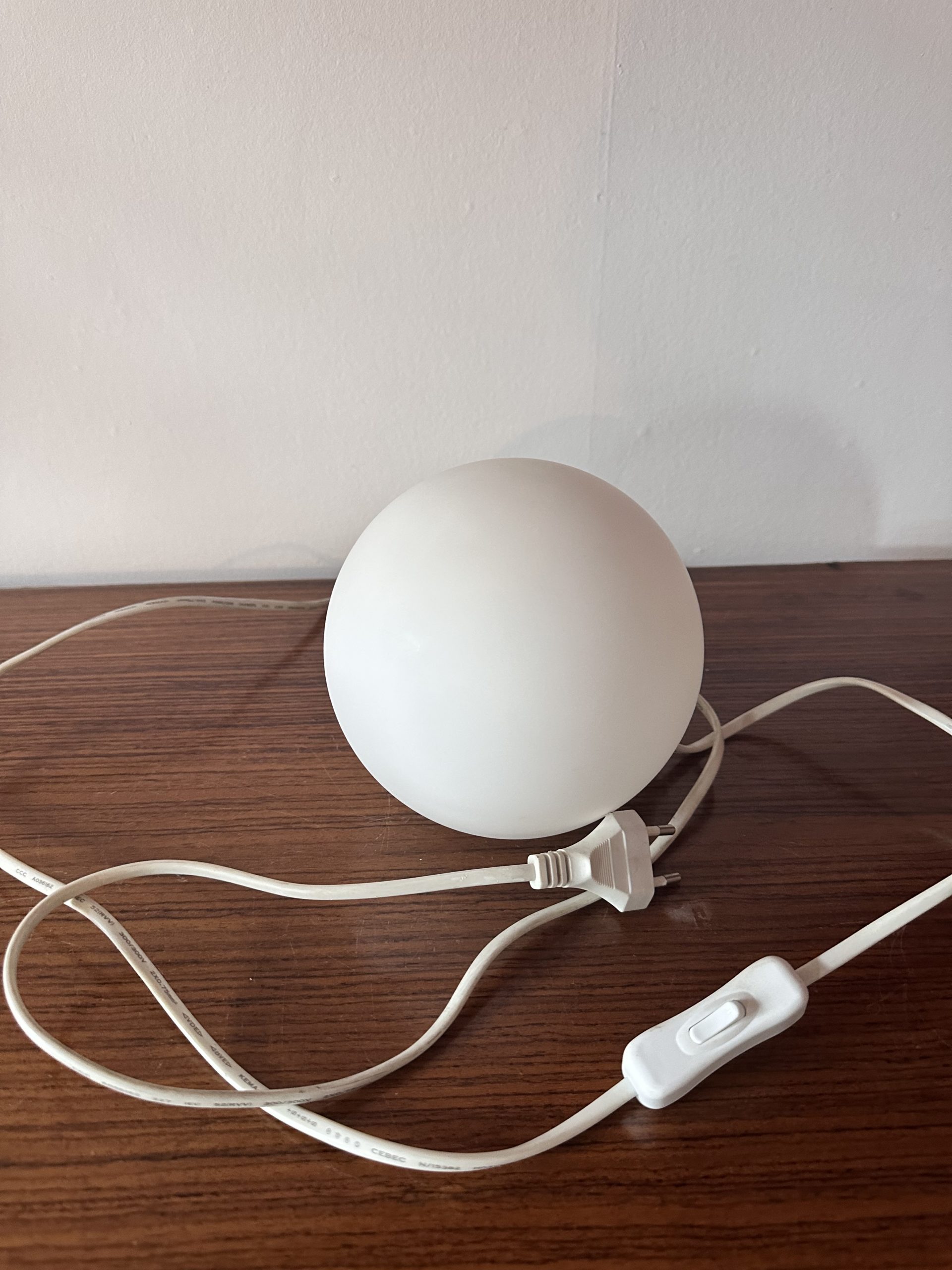 Produit venduIl s’agit d’une petite lampe boule en opaline blanche vintage à poser pour une lumière d’ambiance. Le modèle est intitulé Mathias, elle fonctionne avec une ampoule E14 et l’interrupteur sur le fil. Elle est en bon état.