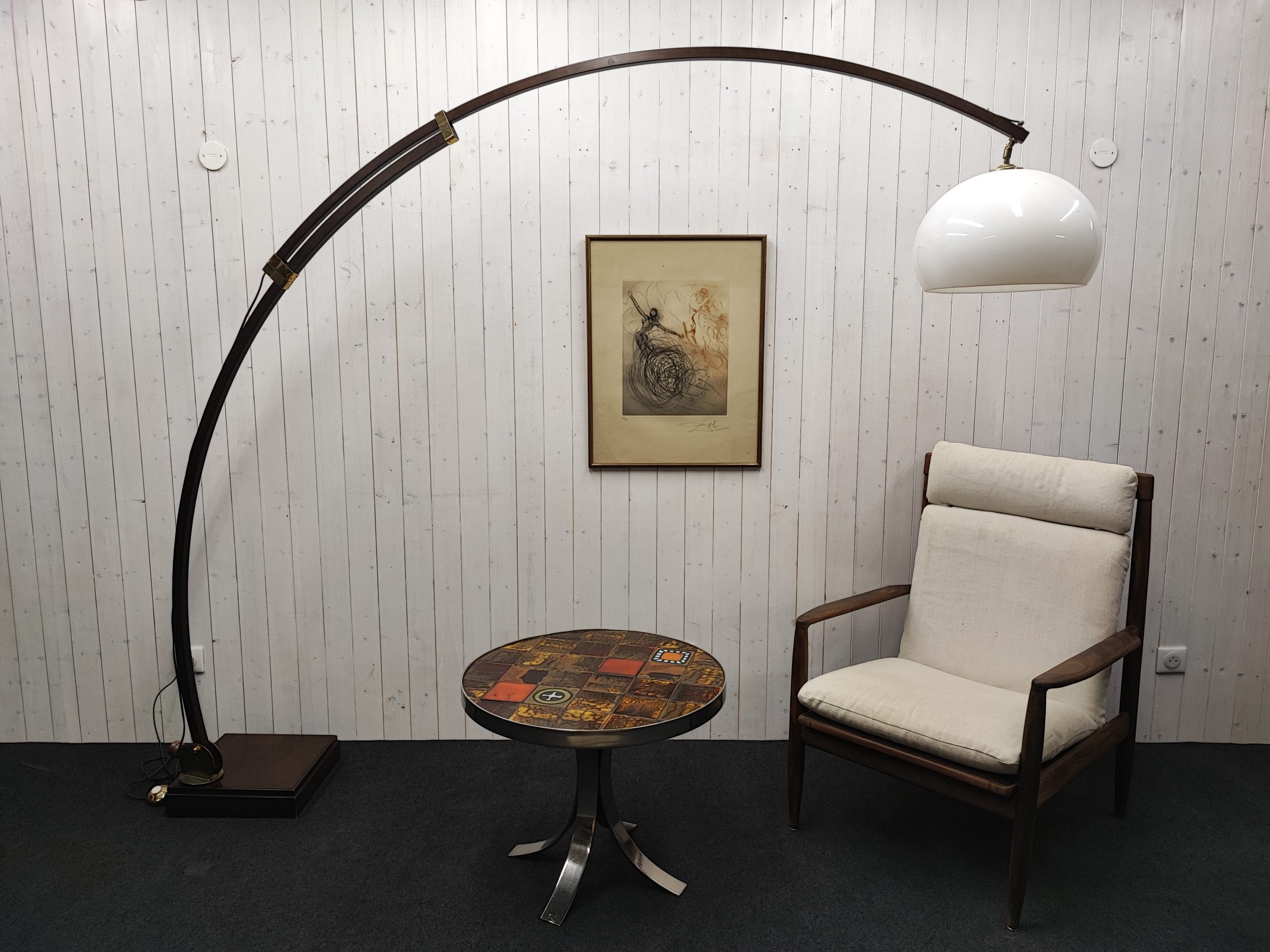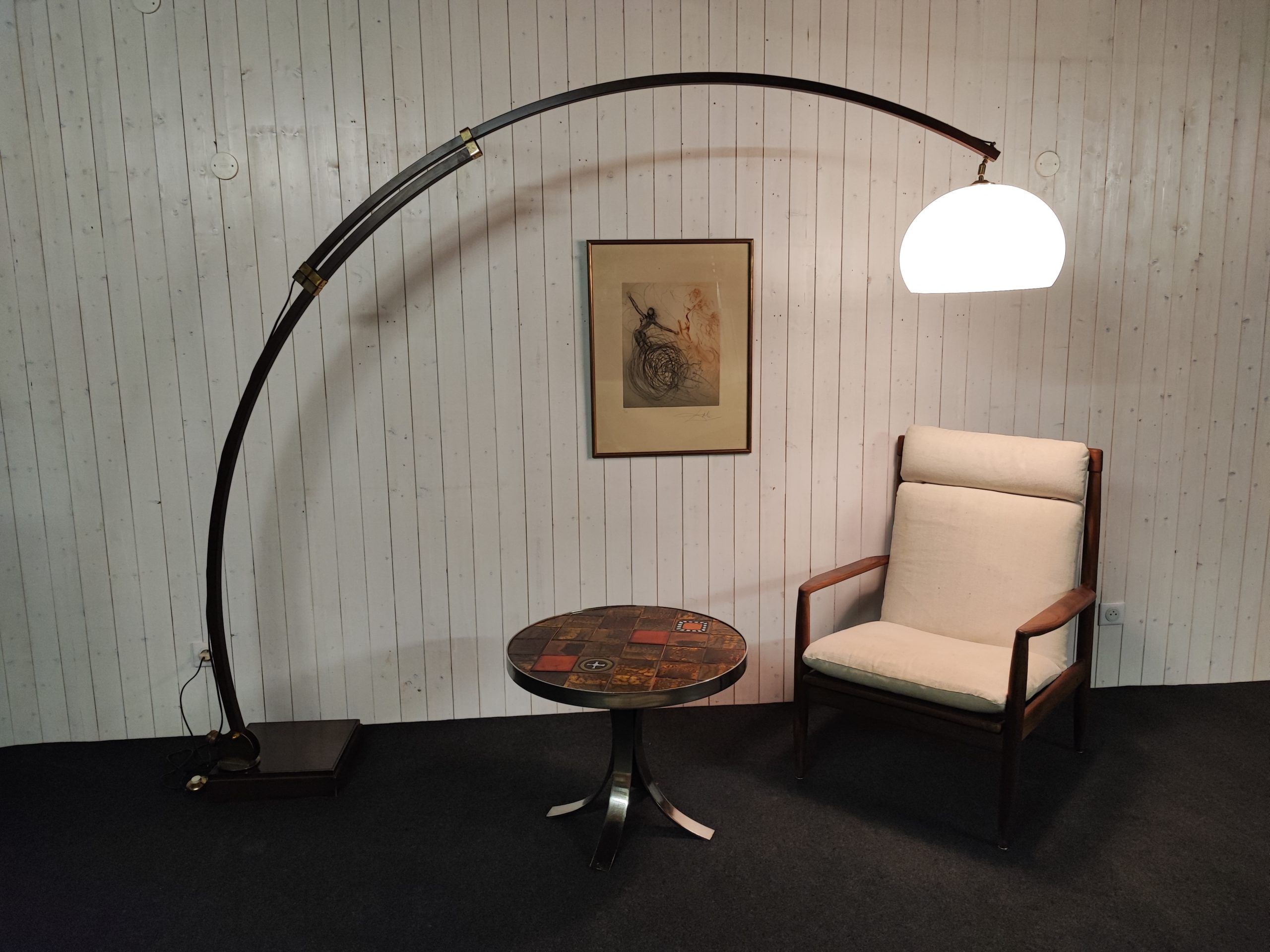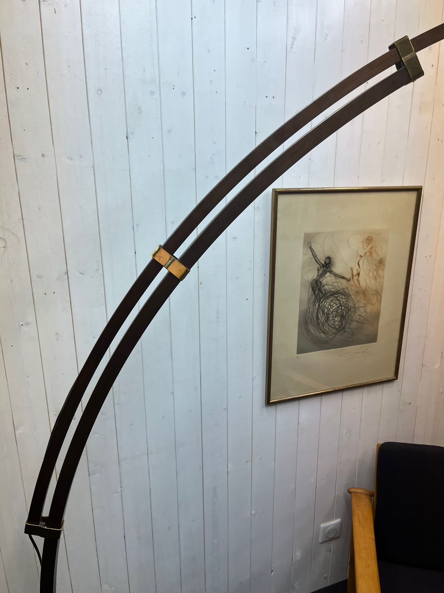 Produit venduRares et magnifique lampadaire arc des années 60. Entièrement en bois et laiton et surtout en parfait état. Très joli arc une fois le lampadaire déplié.